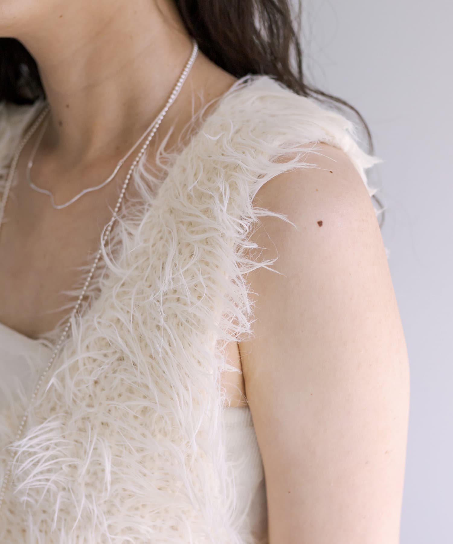 骨ストだと、シャギーのようなボリューム感の出るお洋服は事故っちゃう確率高いけど、胸元も程よく開いてるししっかりノースリーブなので、安心して着られました!