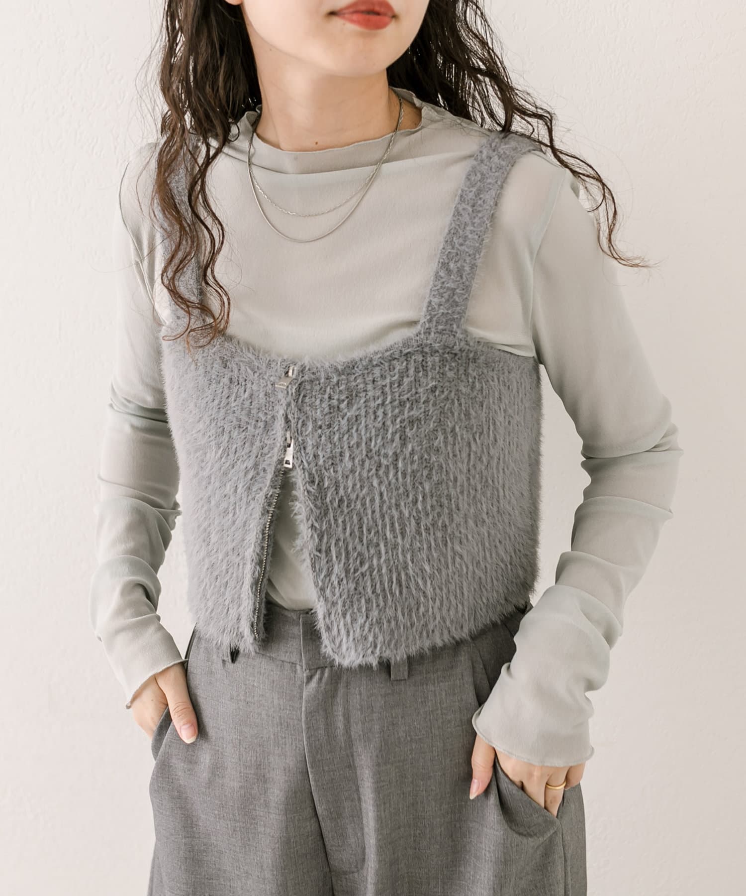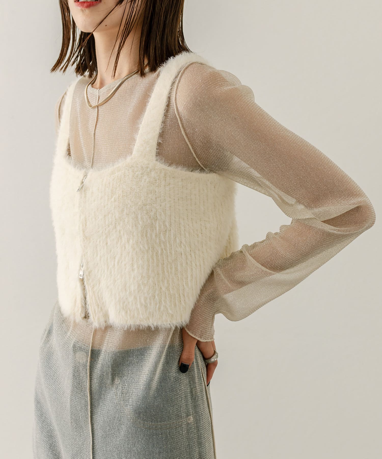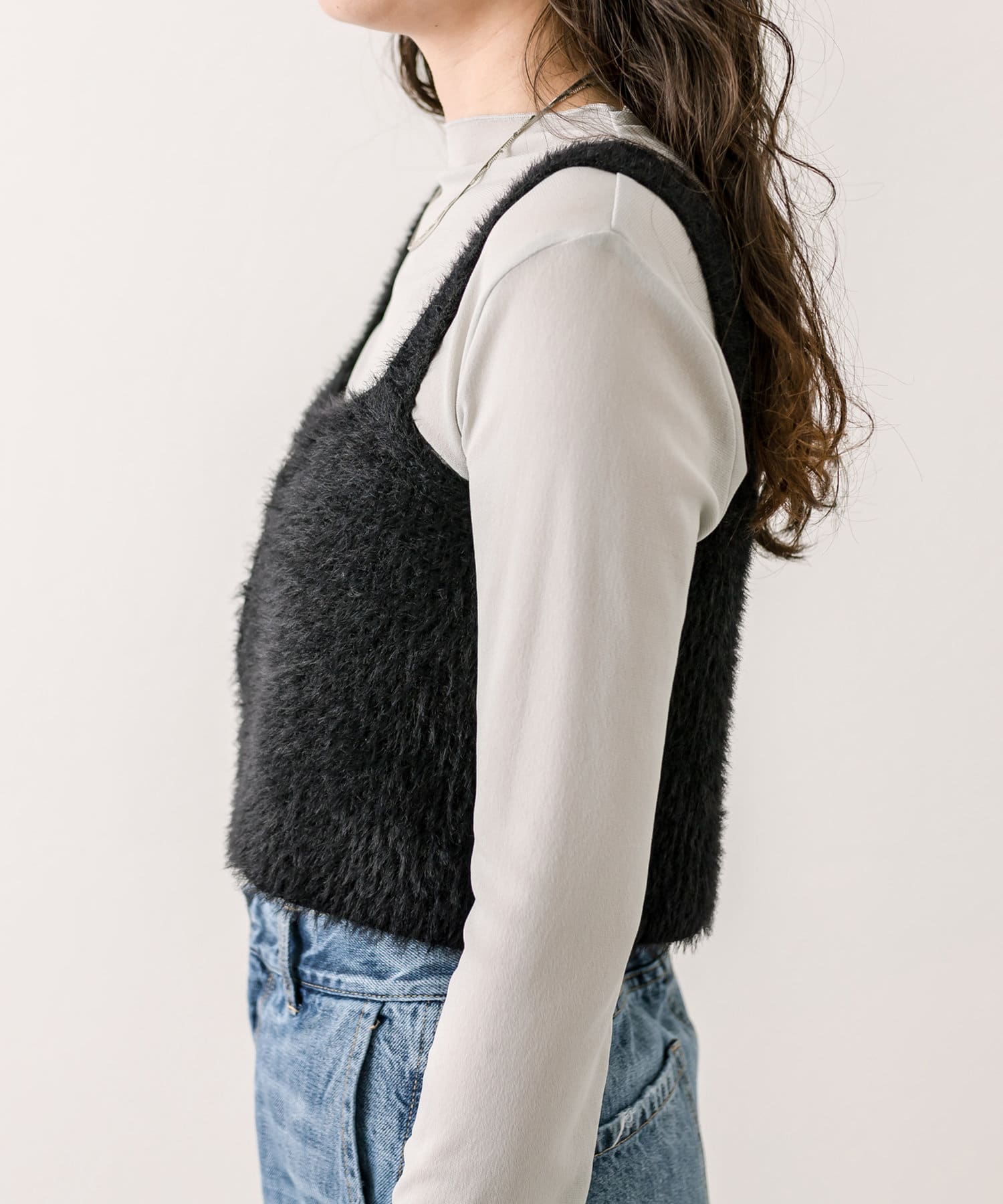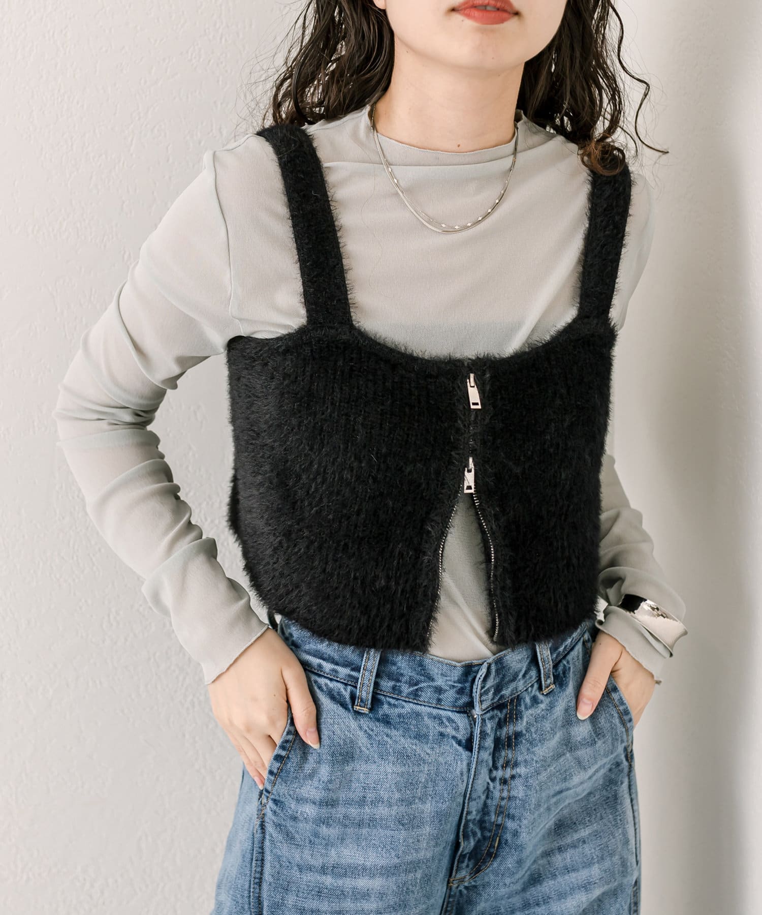 秋冬に映えるシャギー素材で着回ししやすいビスチェが登場。