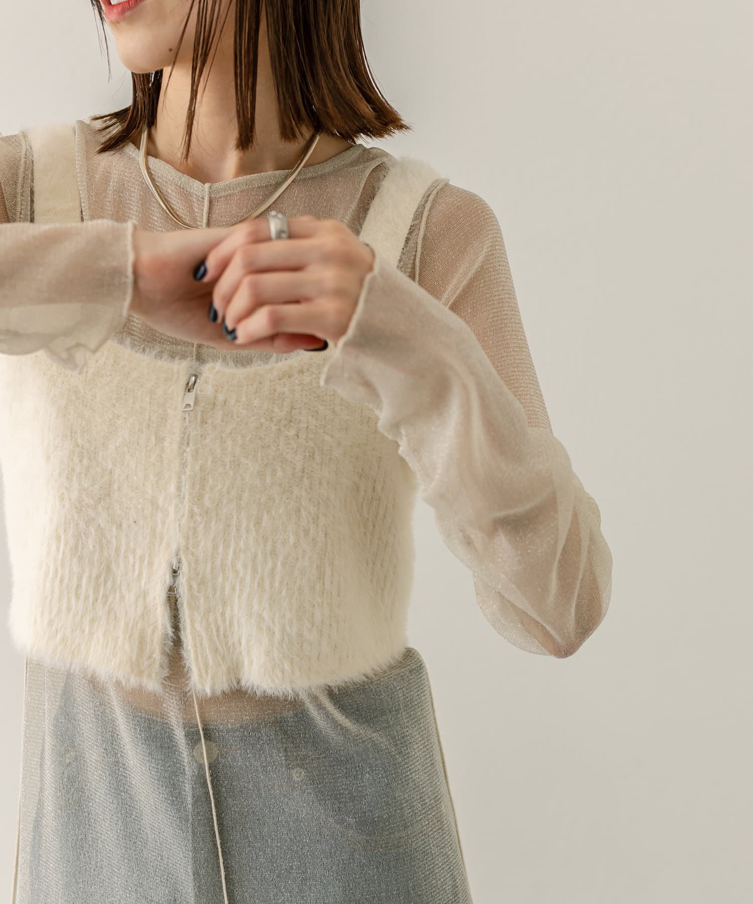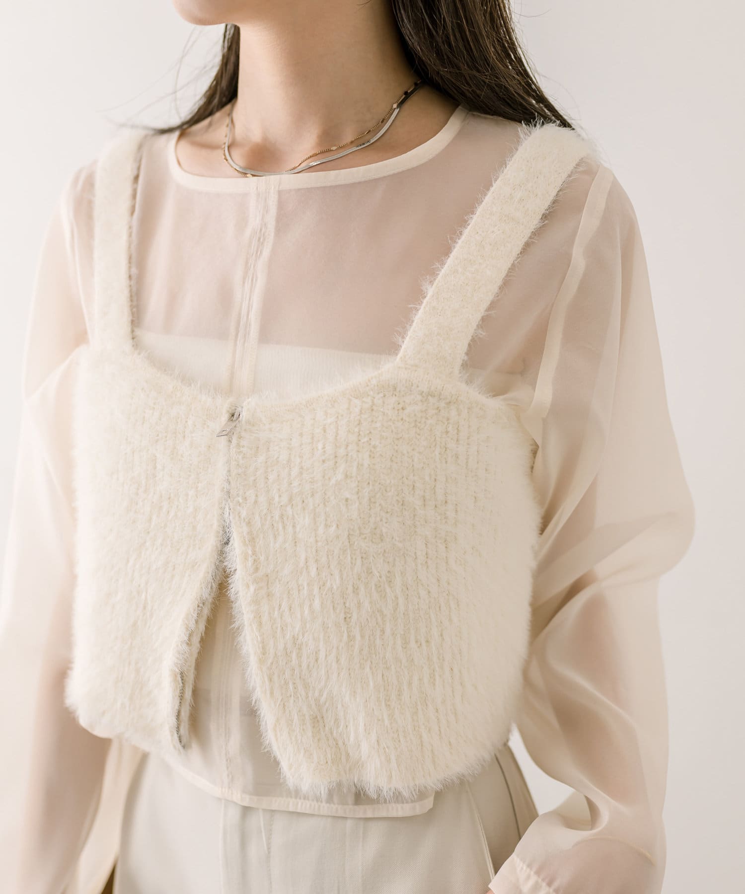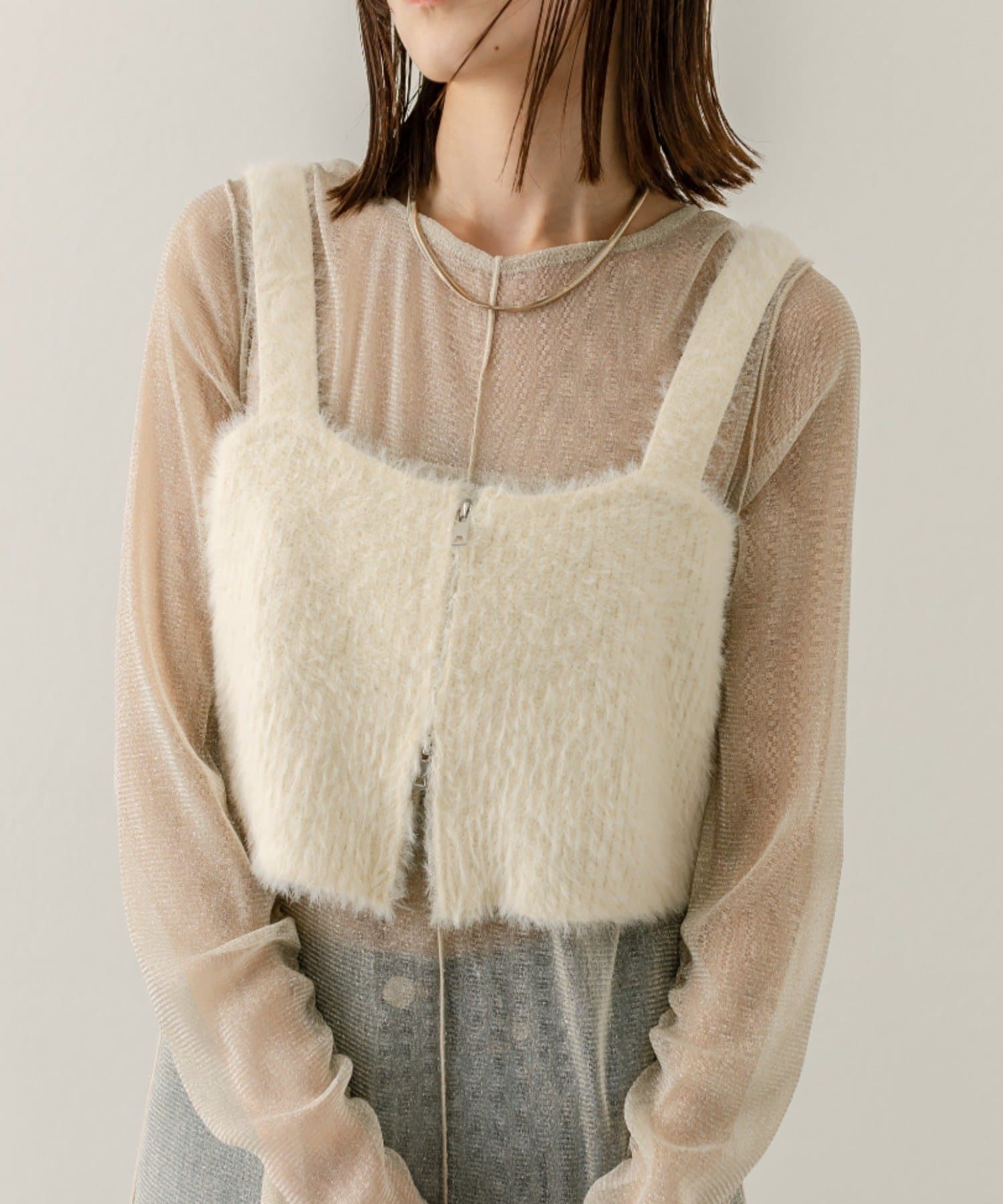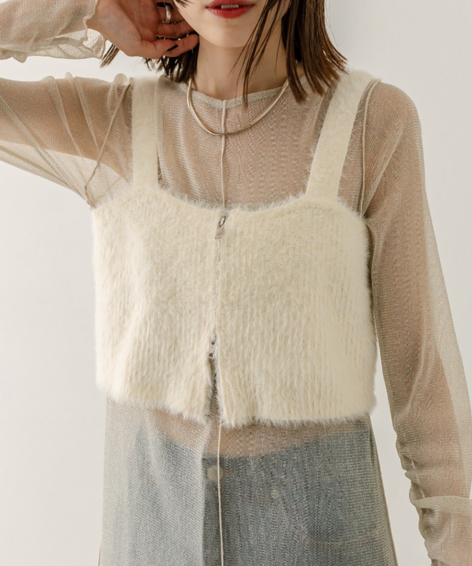 秋冬に映えるシャギー素材で着回ししやすいビスチェが登場。