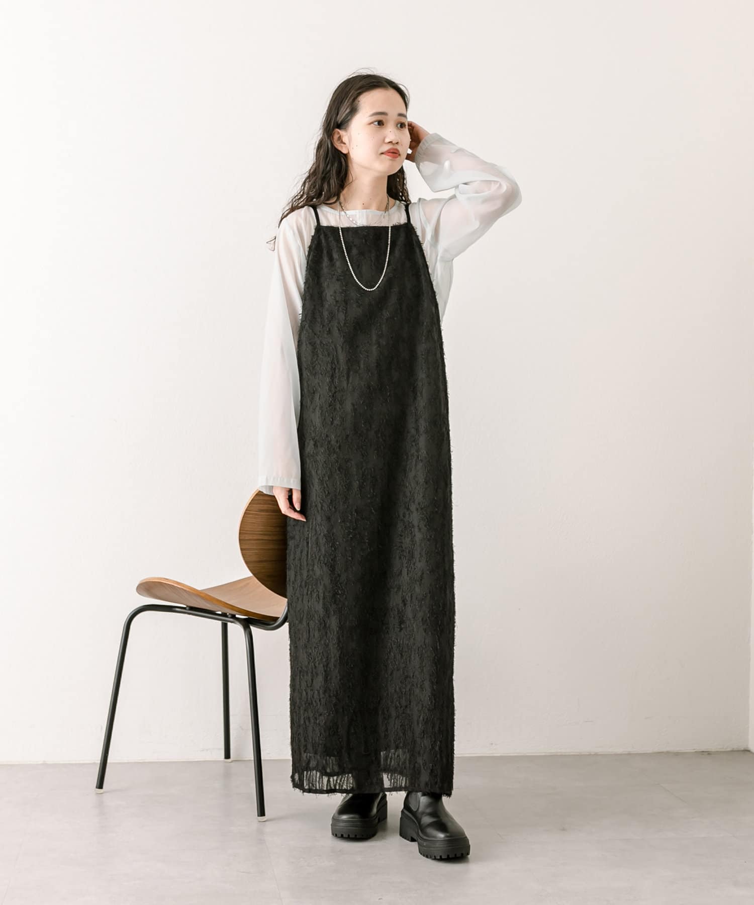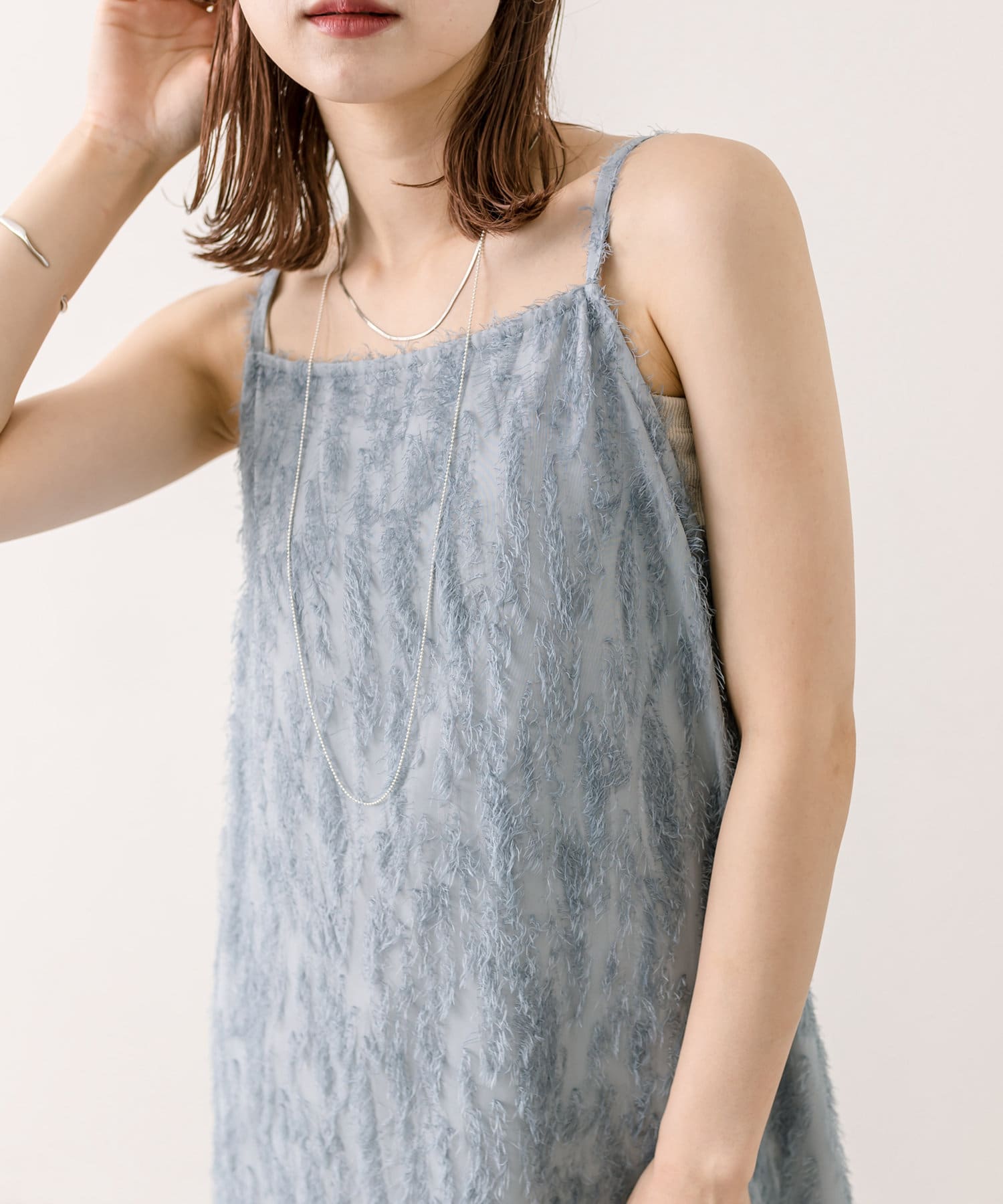 ・表面感のあるジャガード素材がキャミワンピースになって登場。