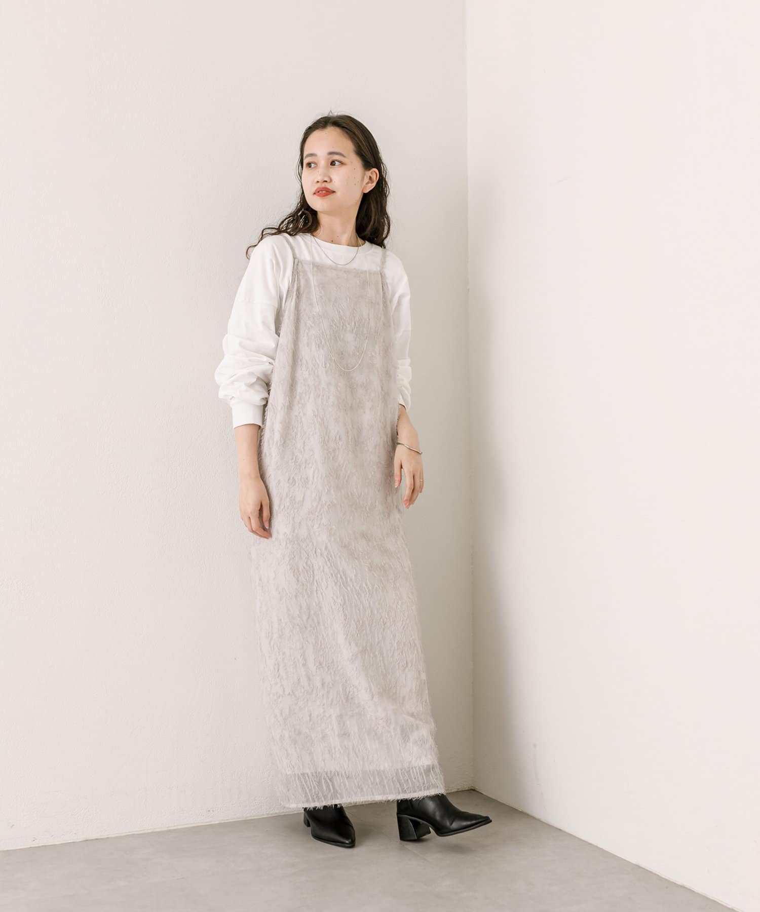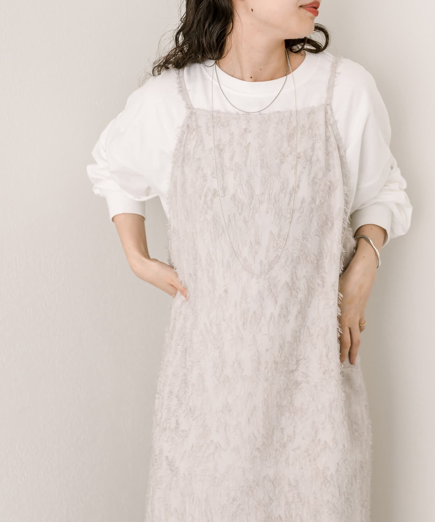 購入場所:店舗キャミワンピは何枚持ってても使えます。シャギーが絶妙でスタイルに邪魔をしないのでどのような合わせでも着こなすことができます。