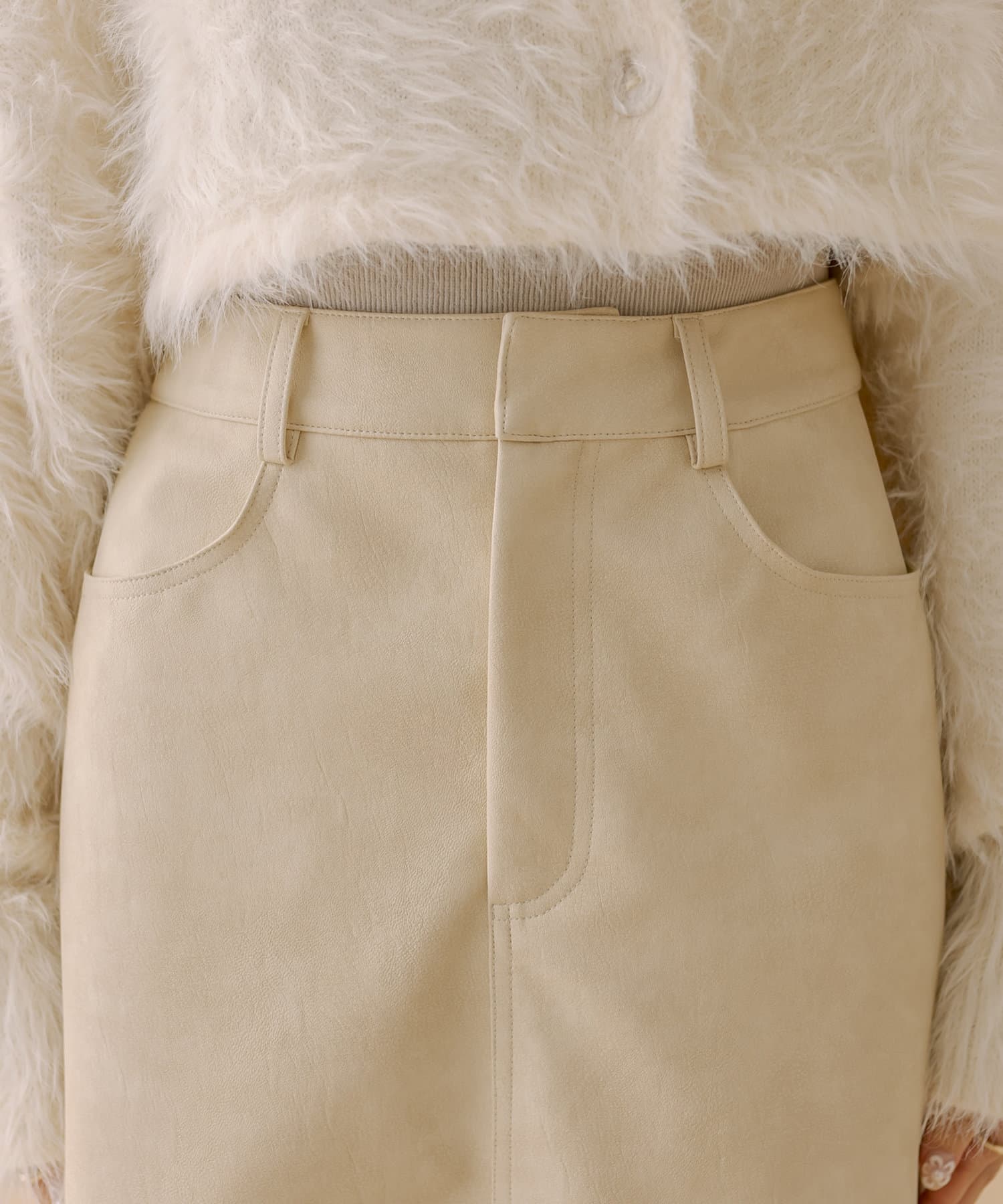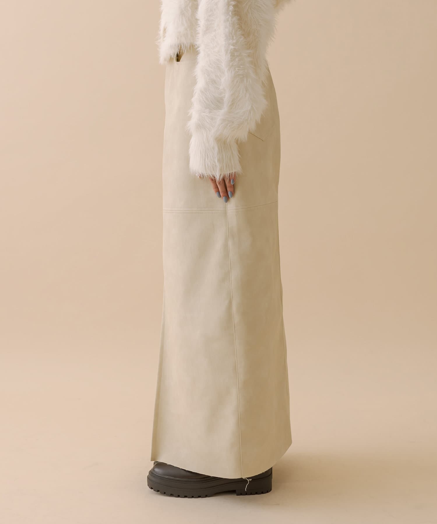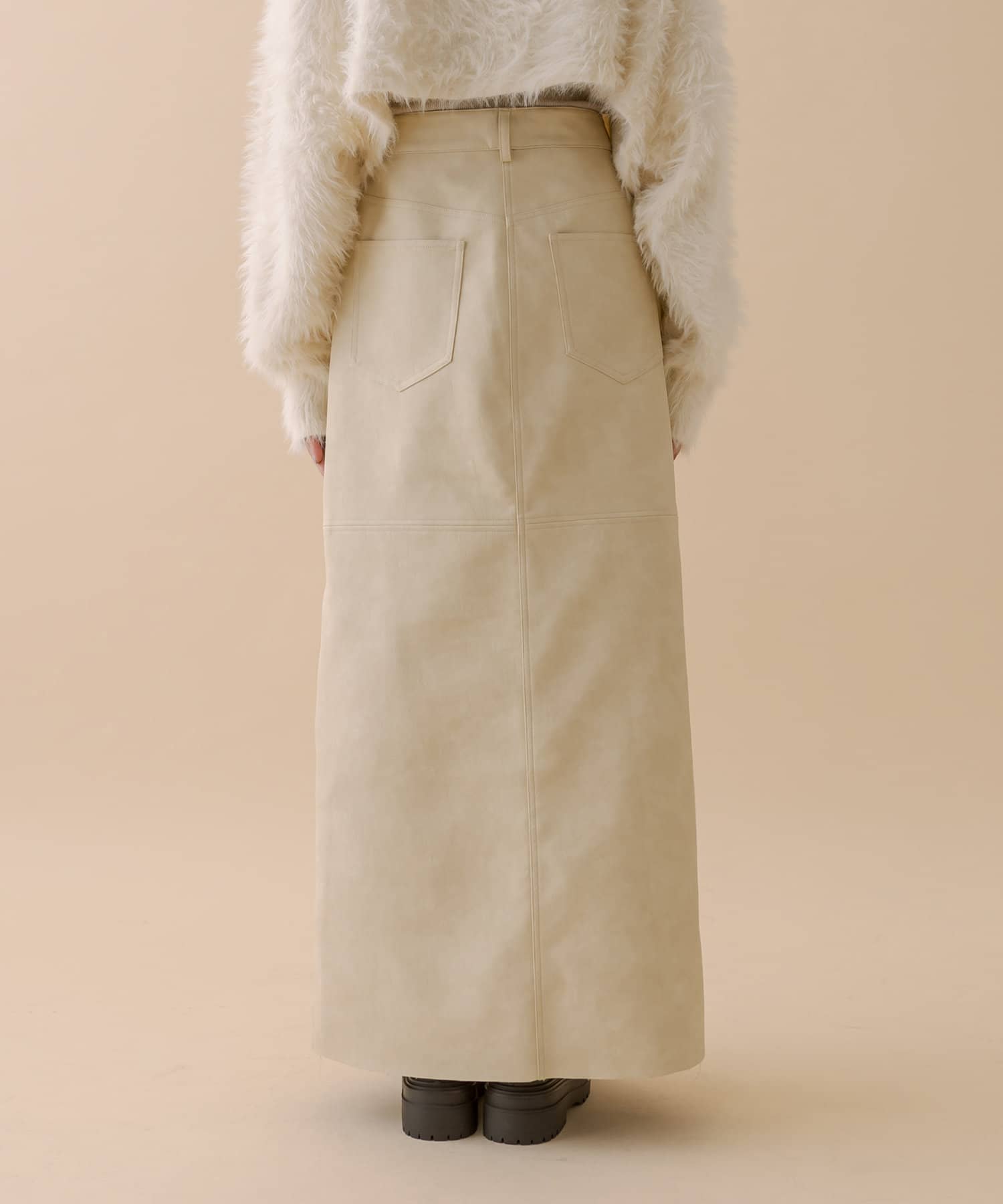 ・ややマットな質感漂うレザースカートが登場。