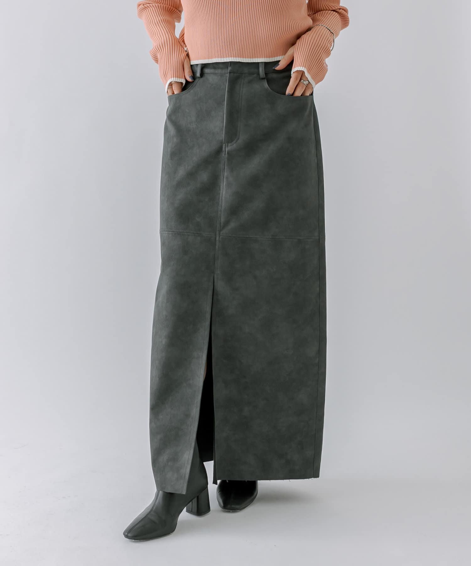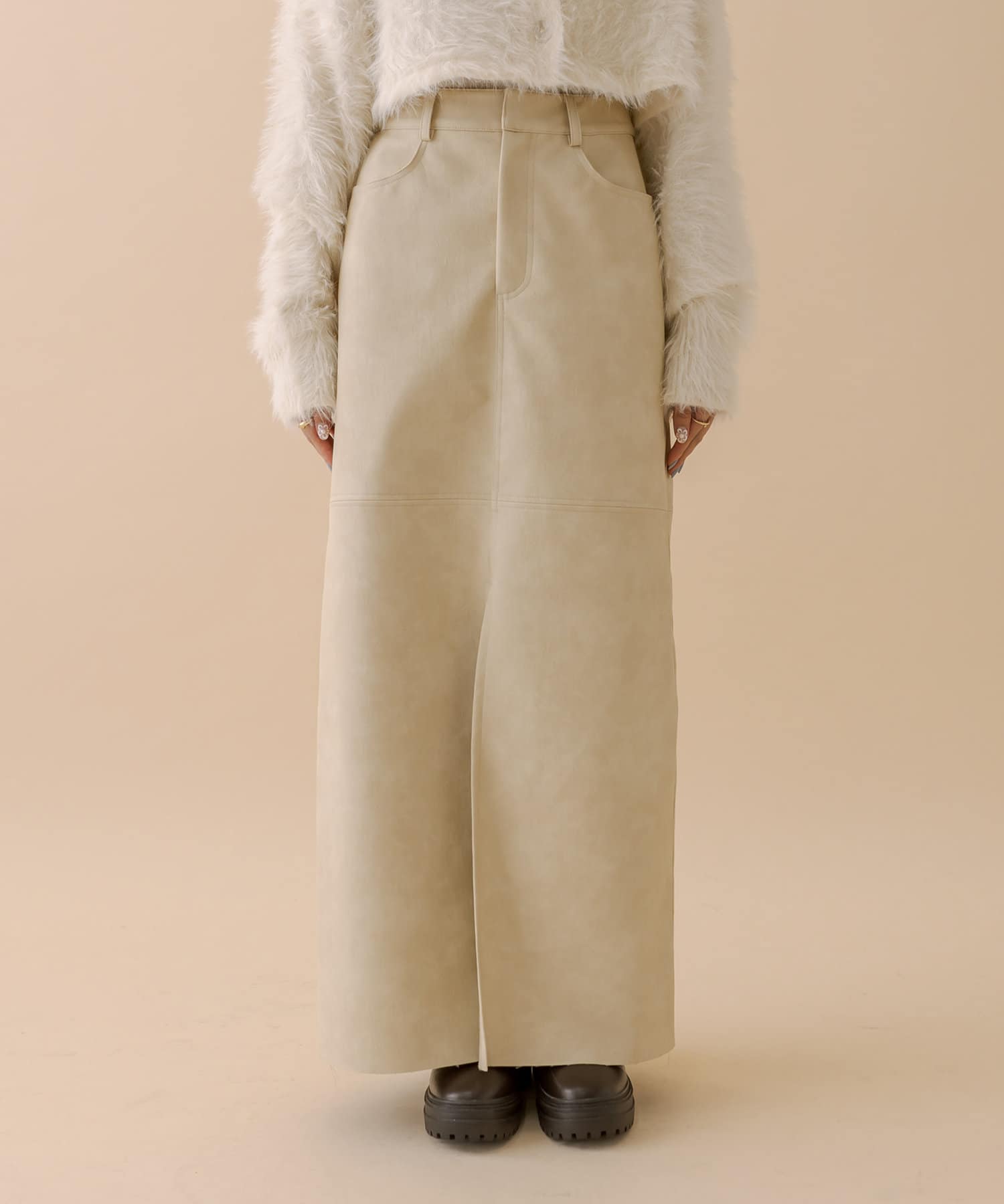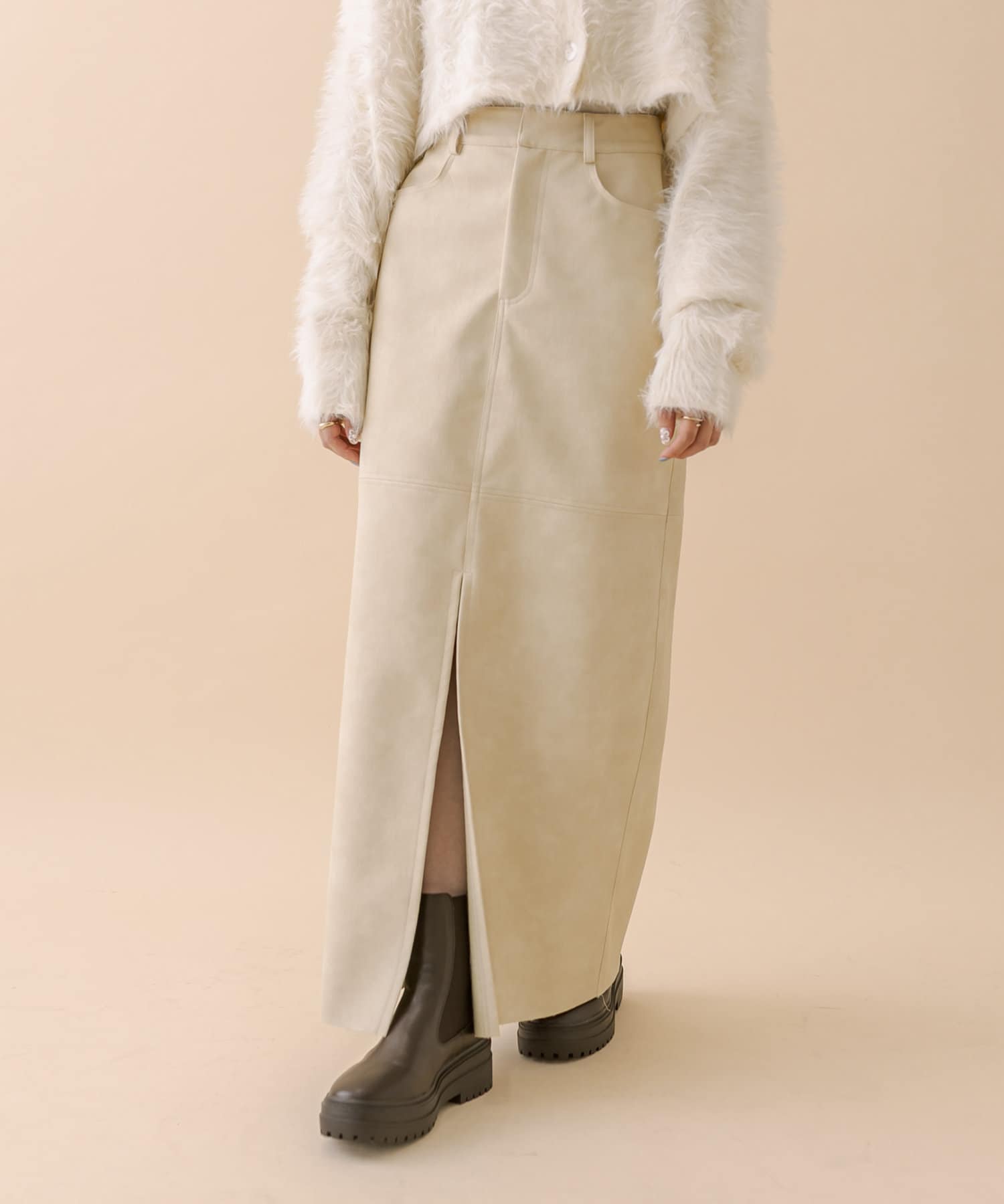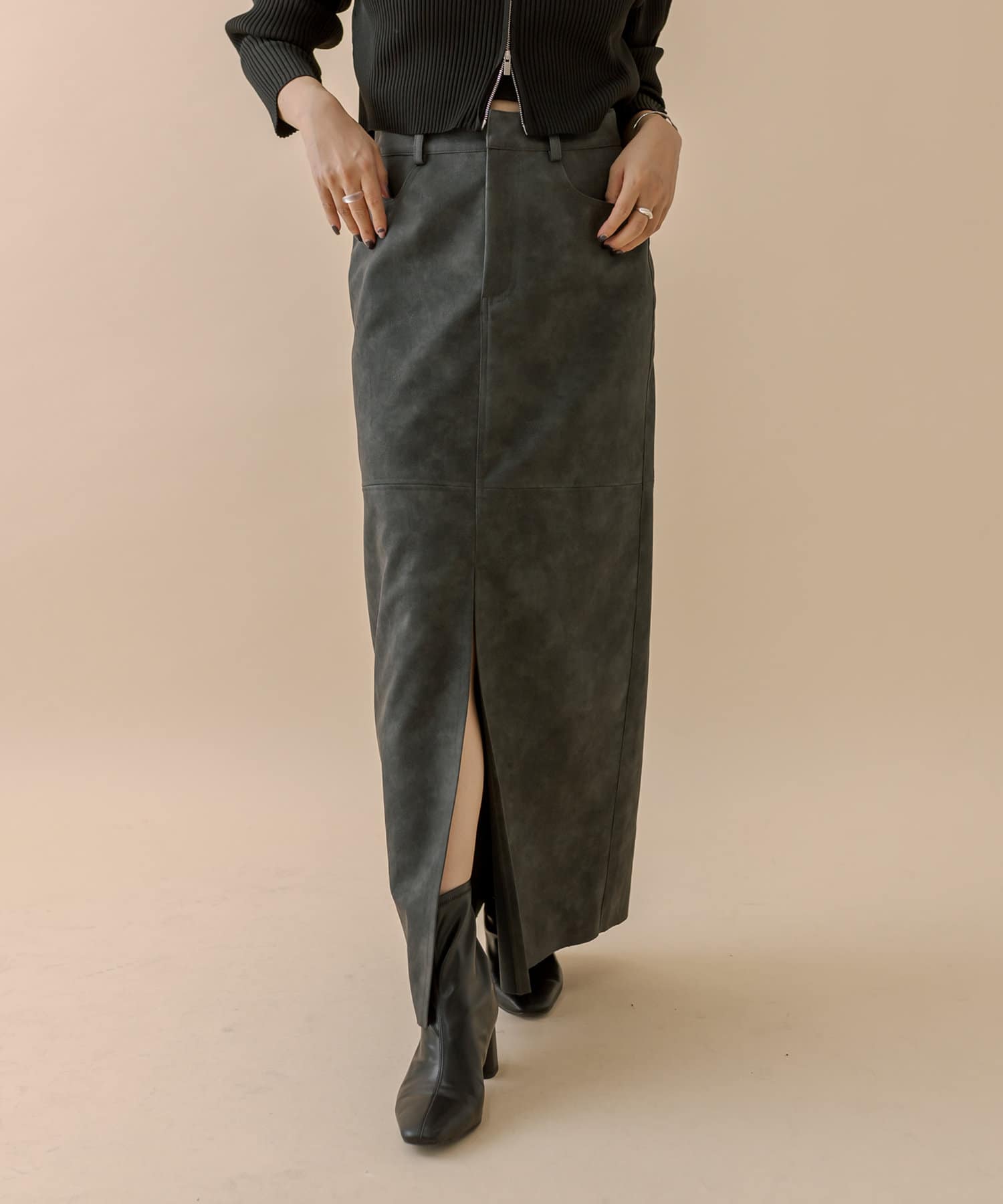 [mline]フェイクレザースリットスカート