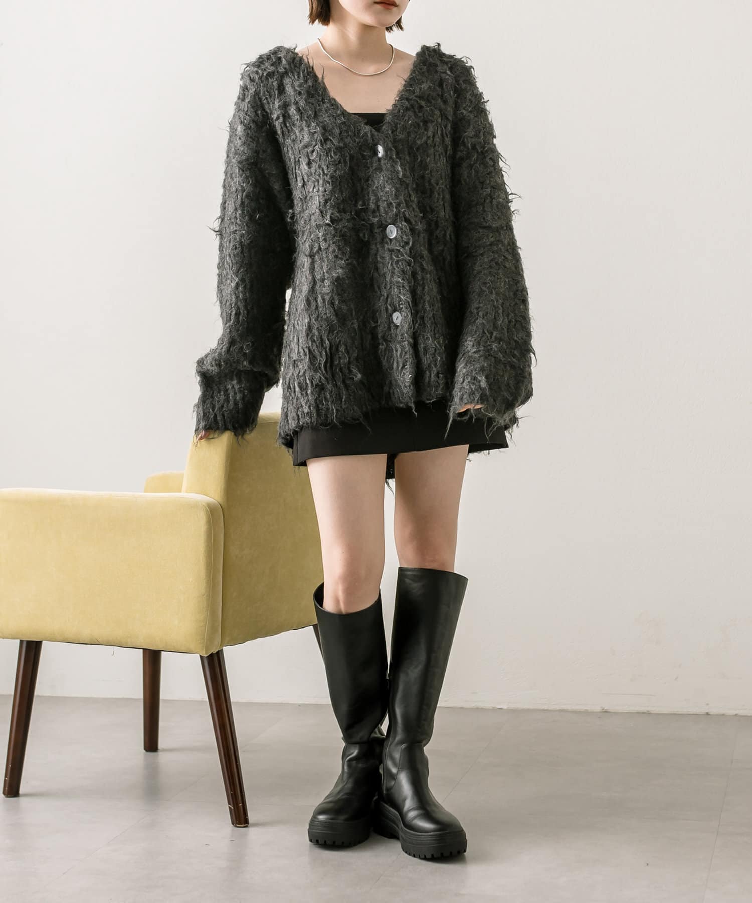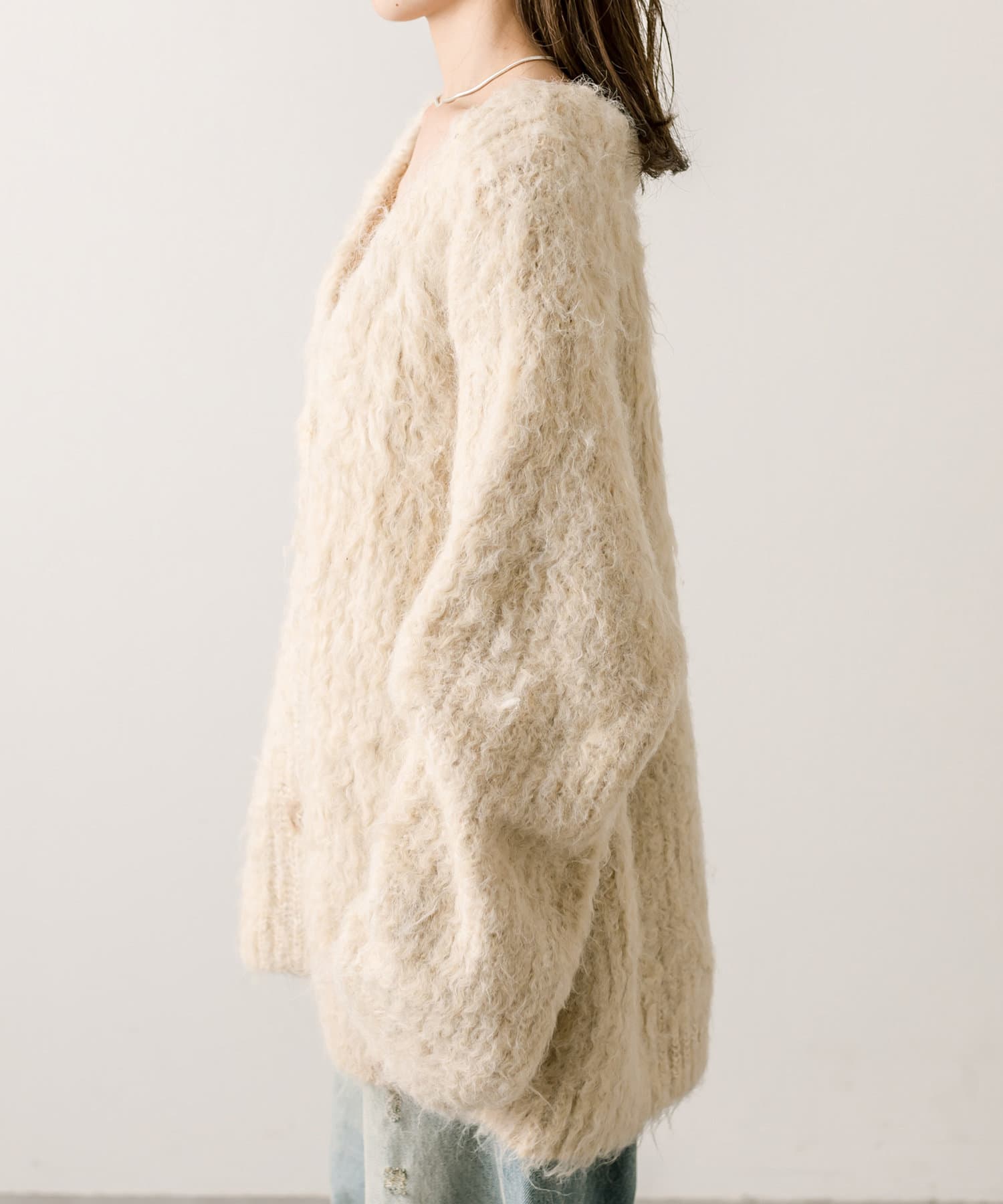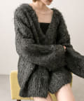 ウール混シャギーカーディガン
