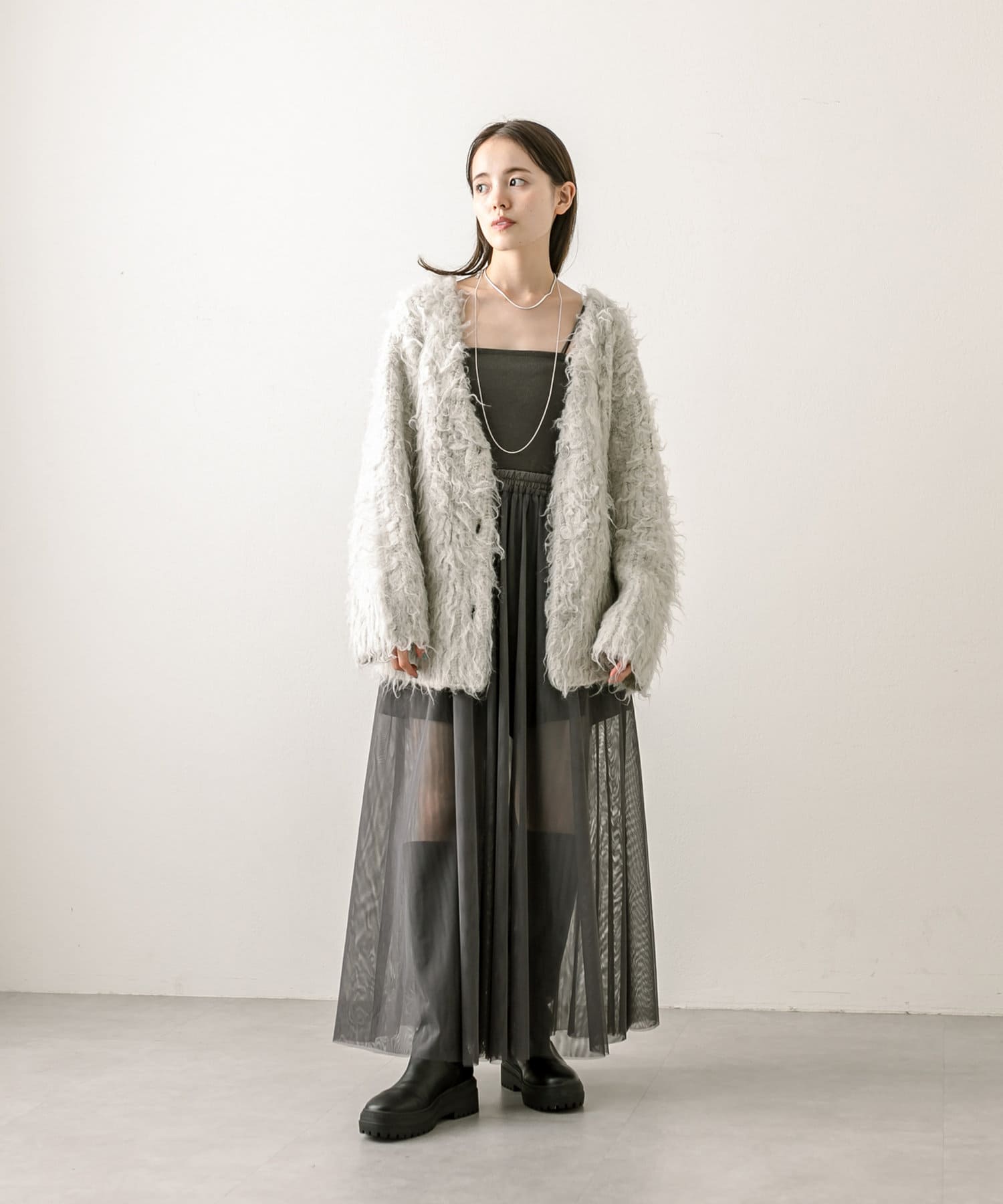 ・ボリューム感のある毛並みが1枚で華やかに決まるロングカーディガン!