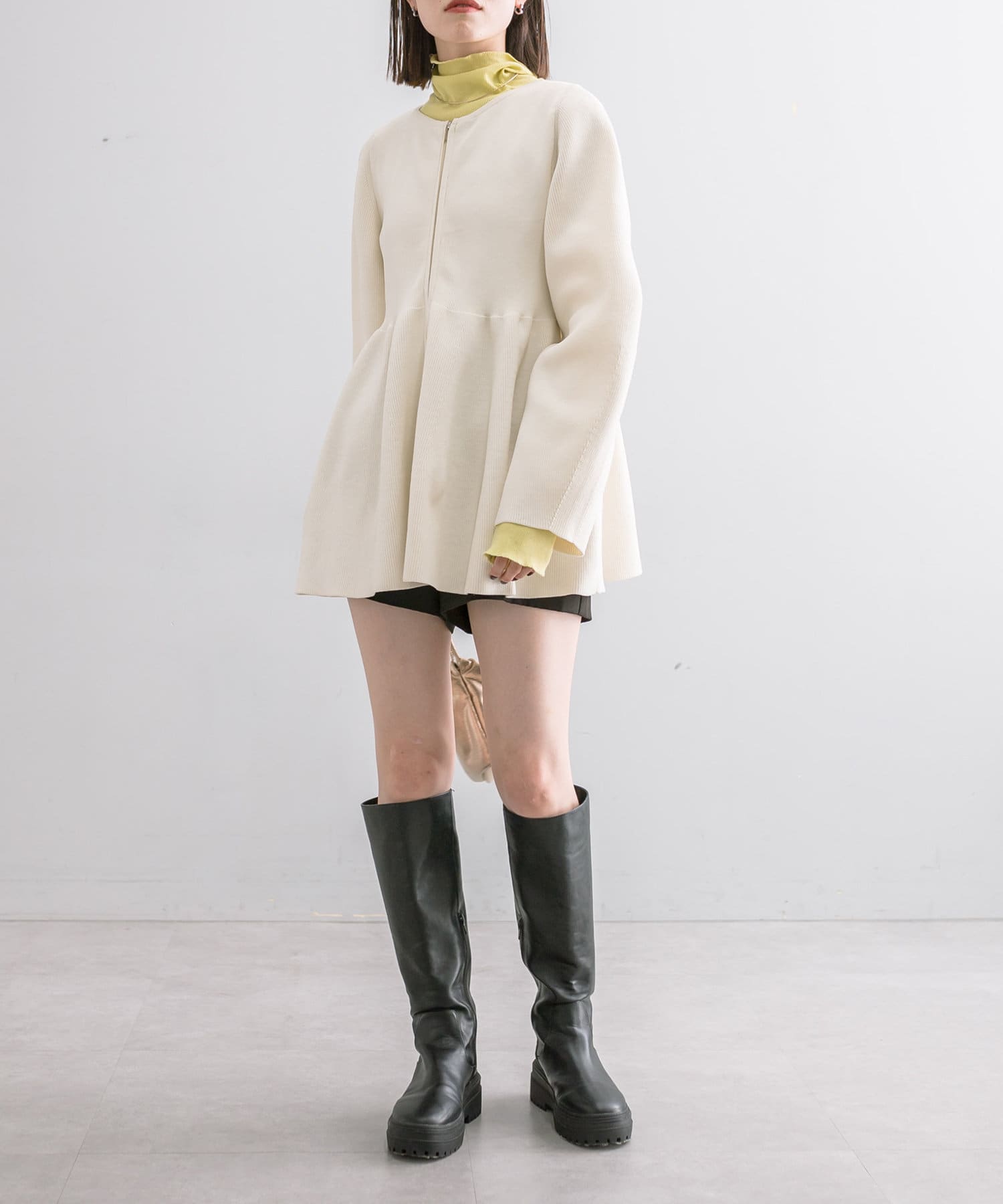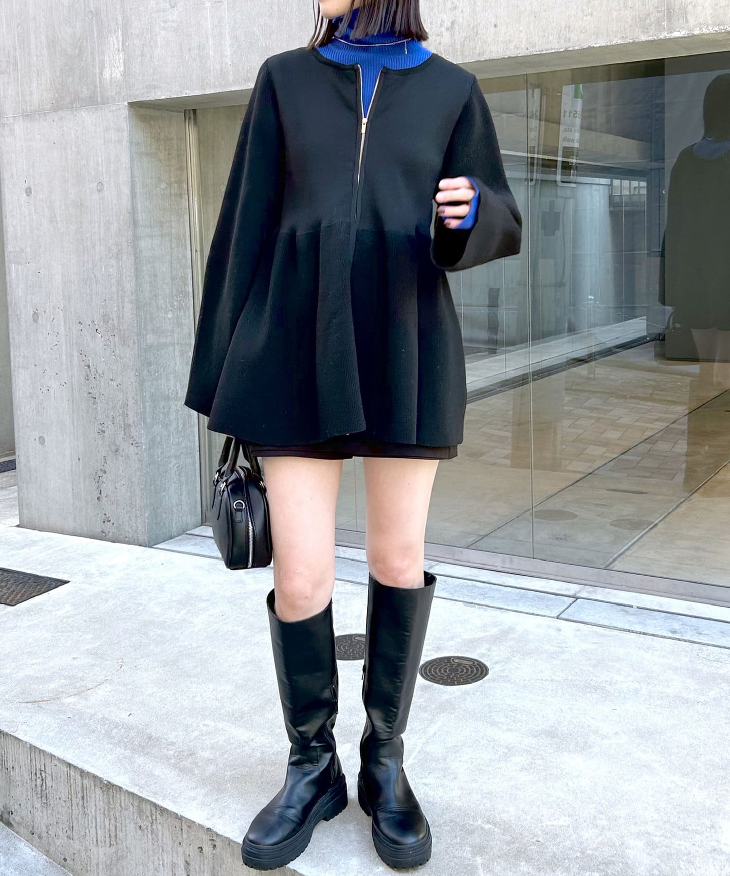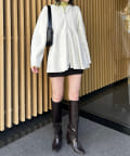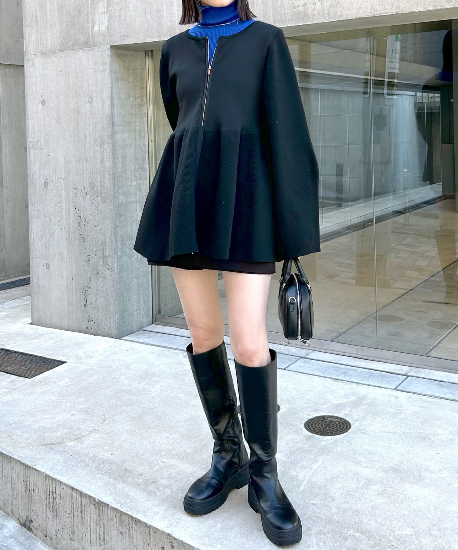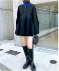ロングブーツ合わせで肌見せするとすっきりした印象で着ていただけるのでおすすめです。