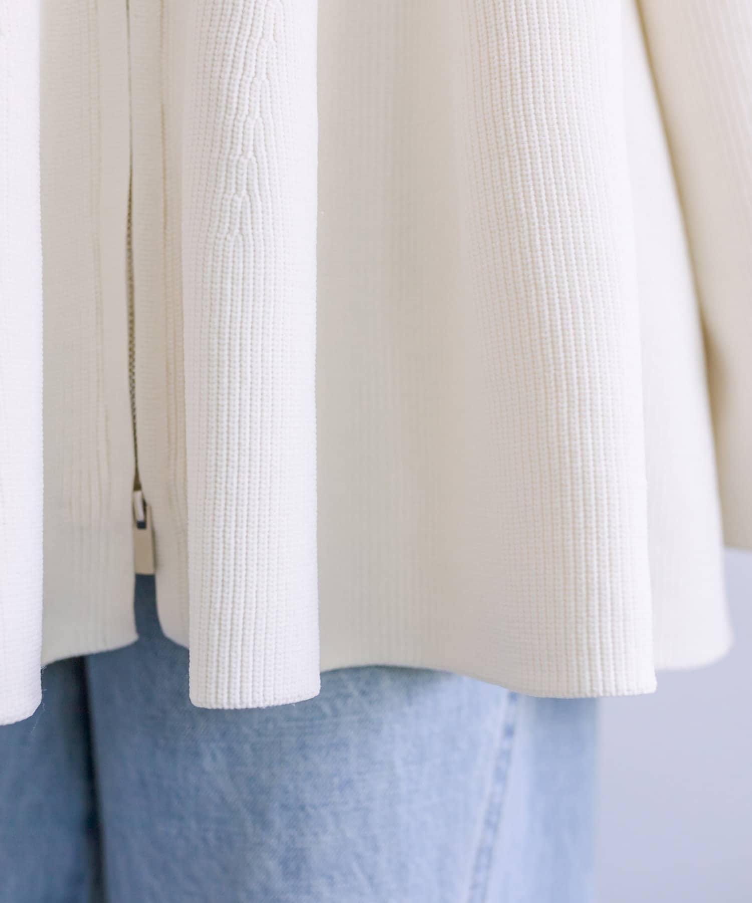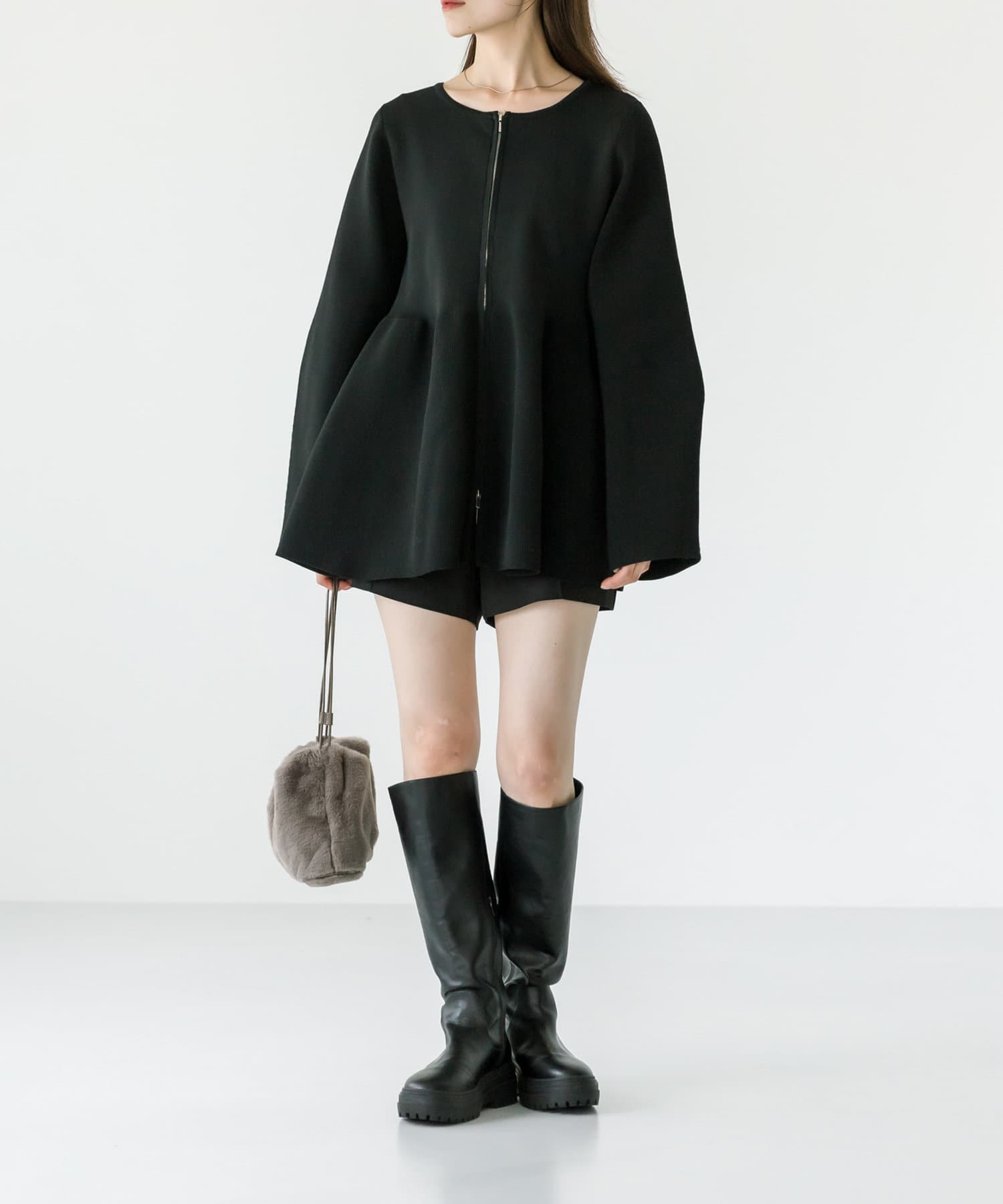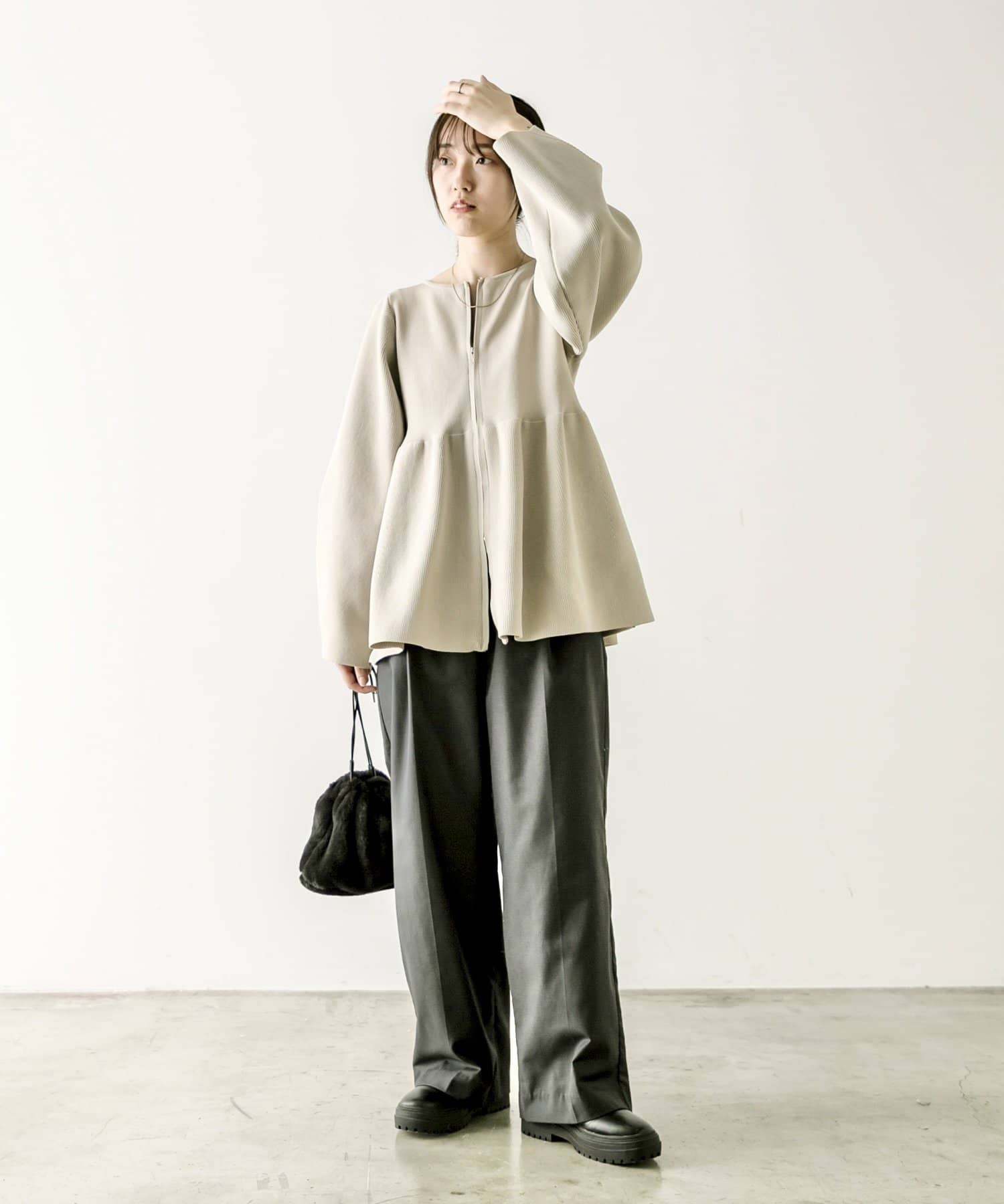 購入場所:店舗まず何よりも腰からあるひだのシルエットがカジュアルの中にも甘さを足してくれてかわいすぎます!これから少し肌寒くなってきてから冬にかけて使いやすそうで、トレンドのダブルジップを抑えているあたりもさすがです!