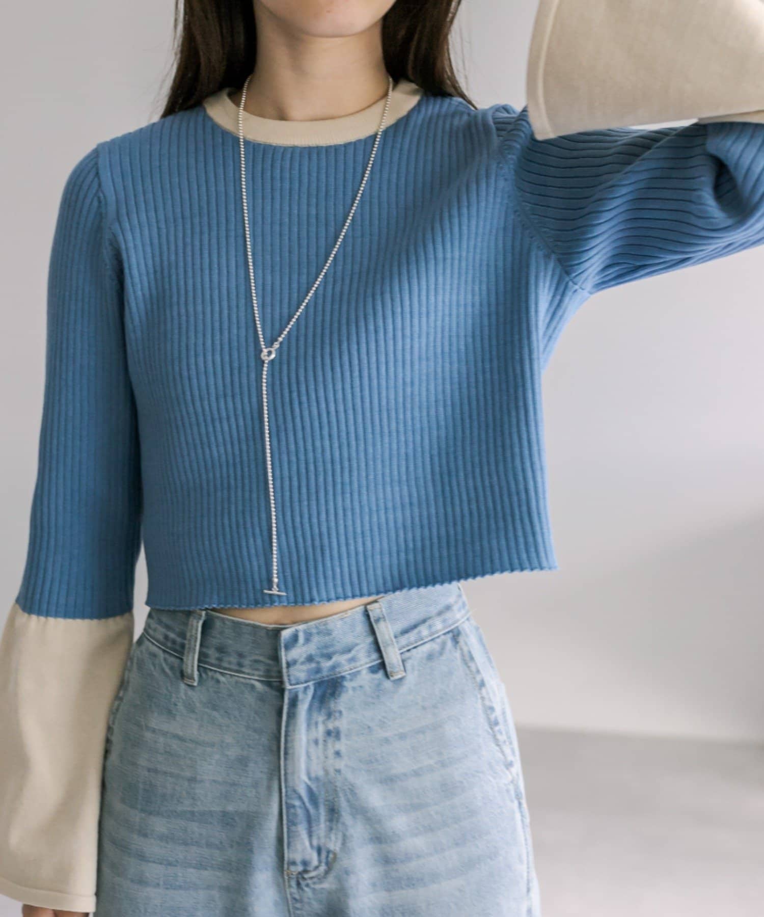 配色がお洒落見えしてくれるニットが3色展開で登場。