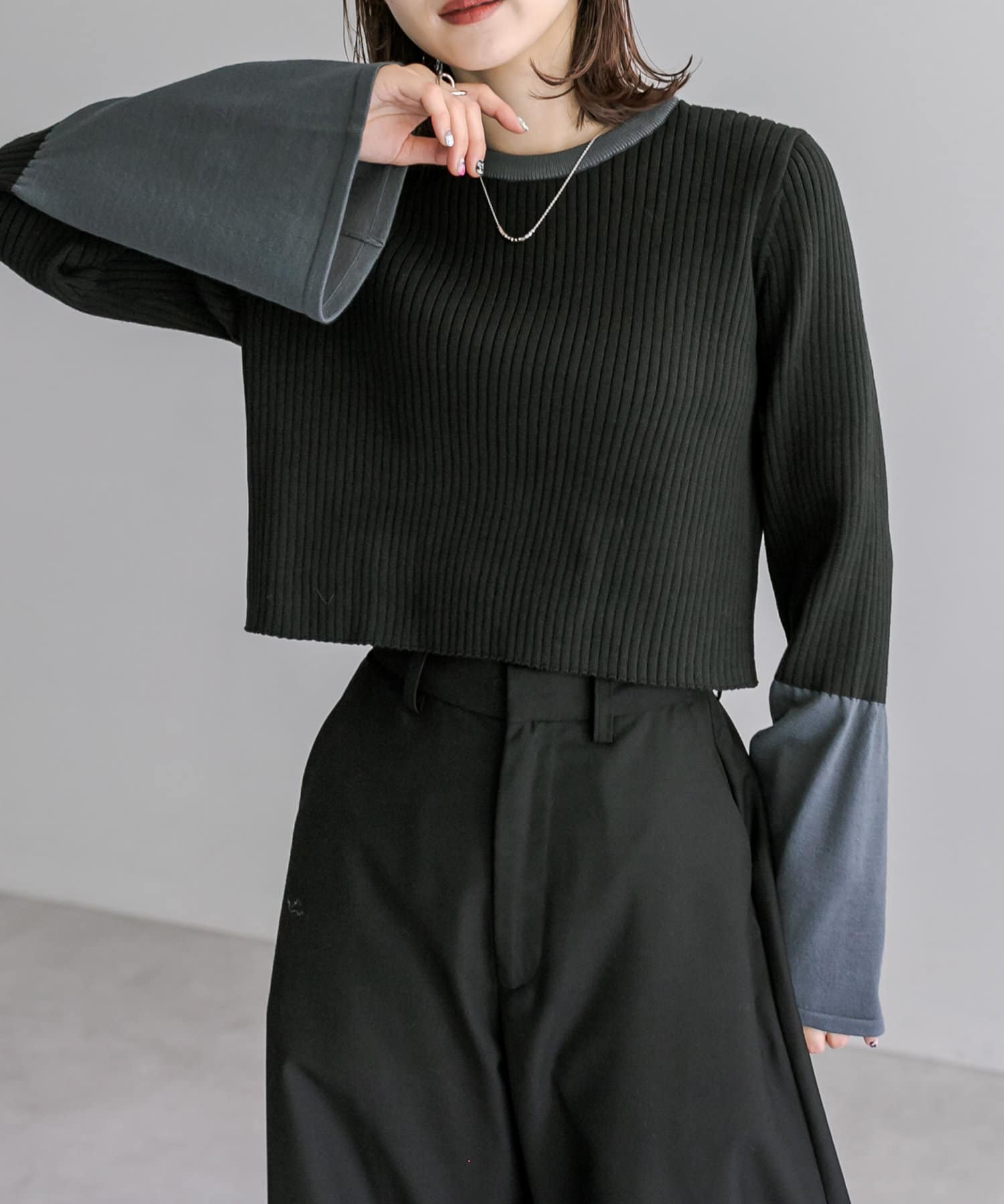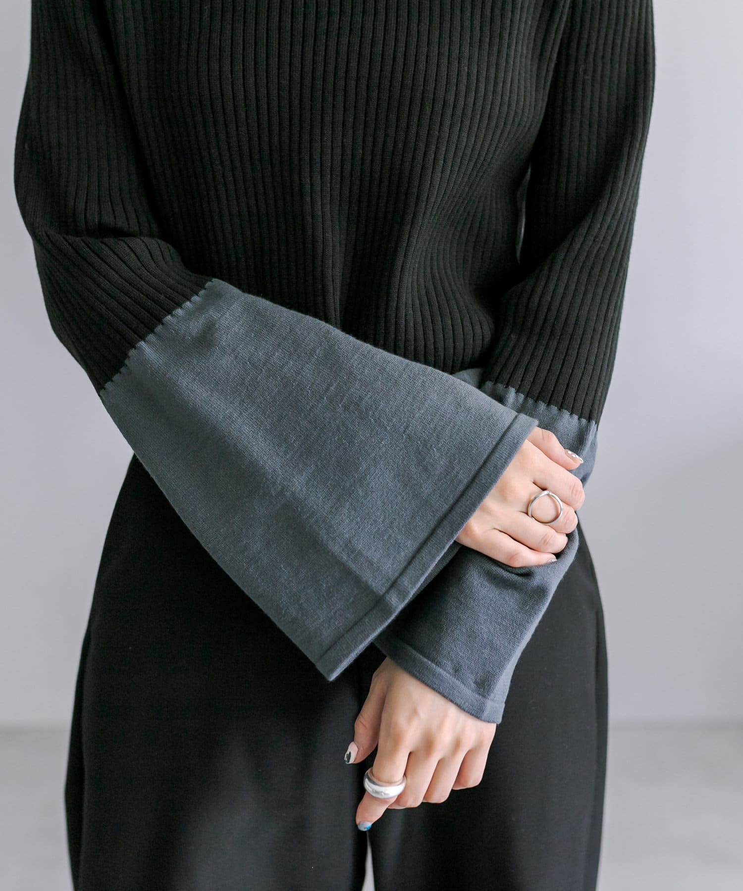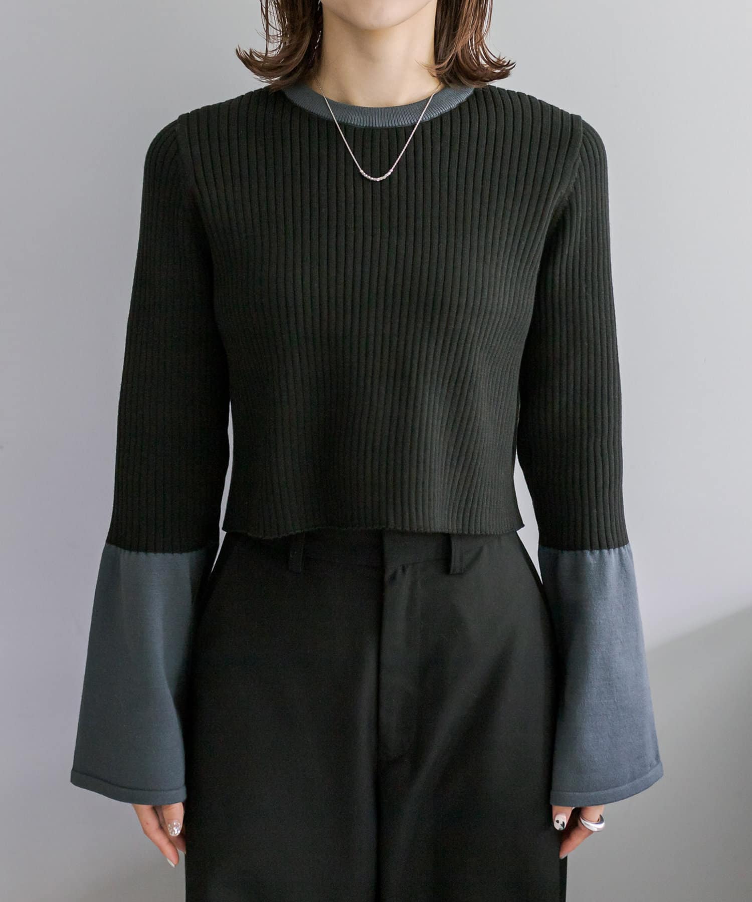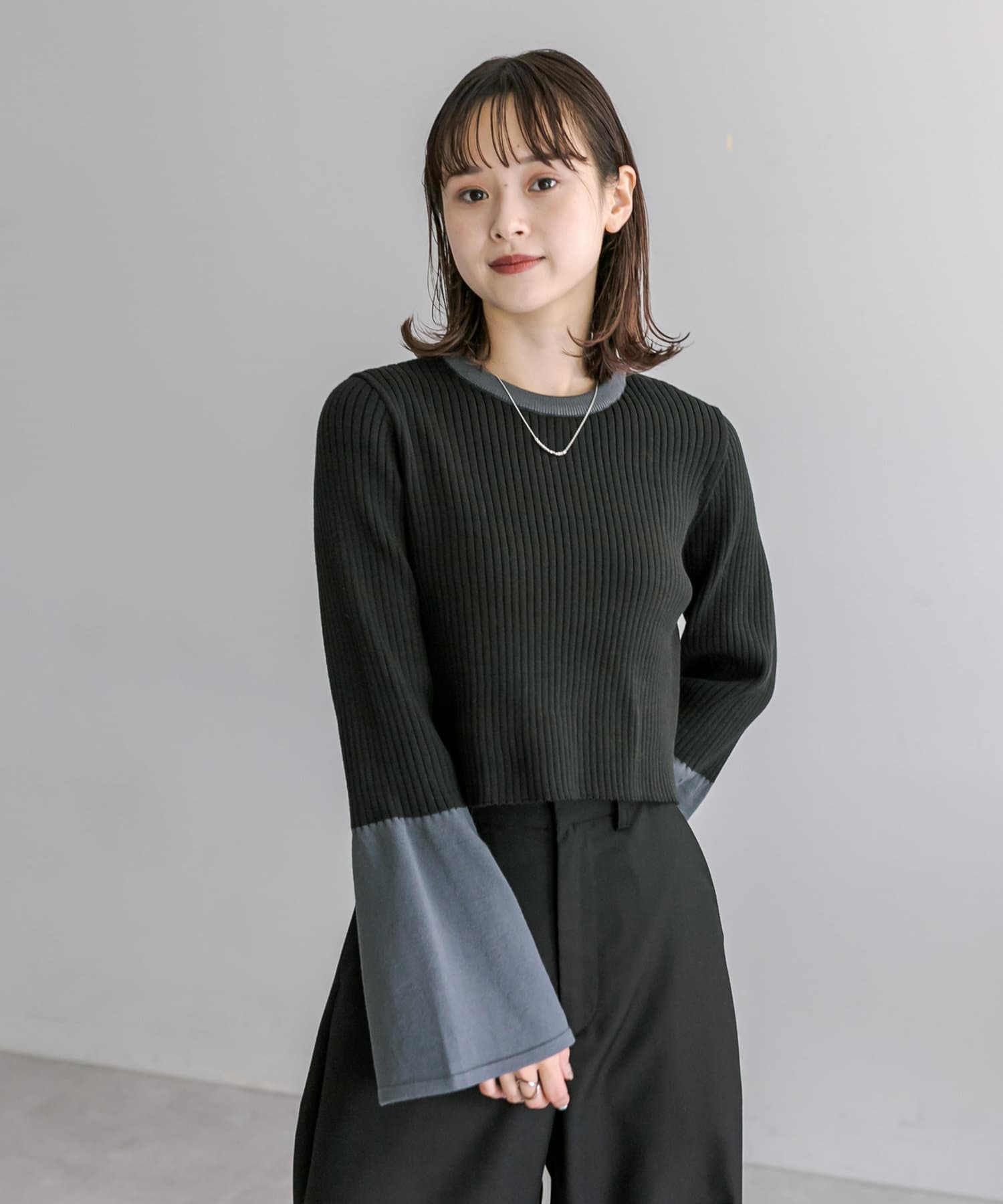 ・袖のフレアが女性らしい印象にしてくれるニット。