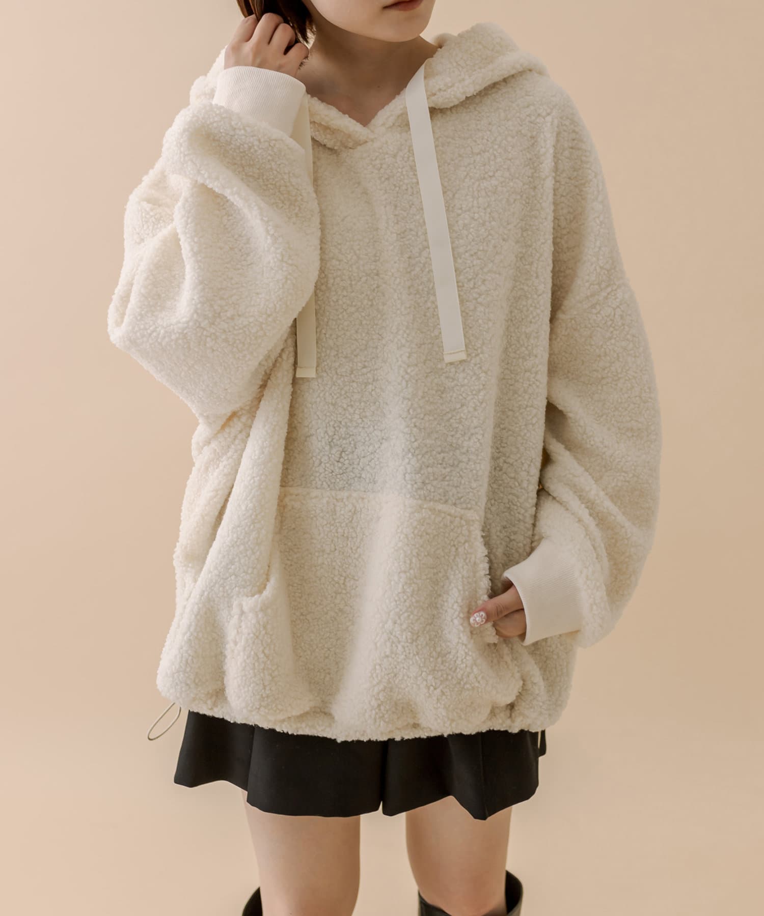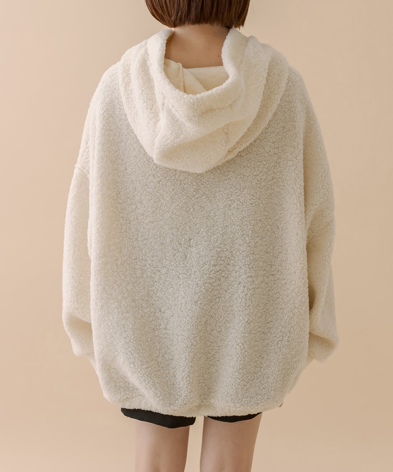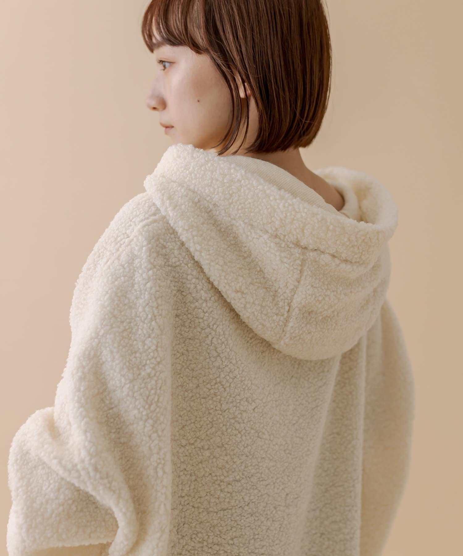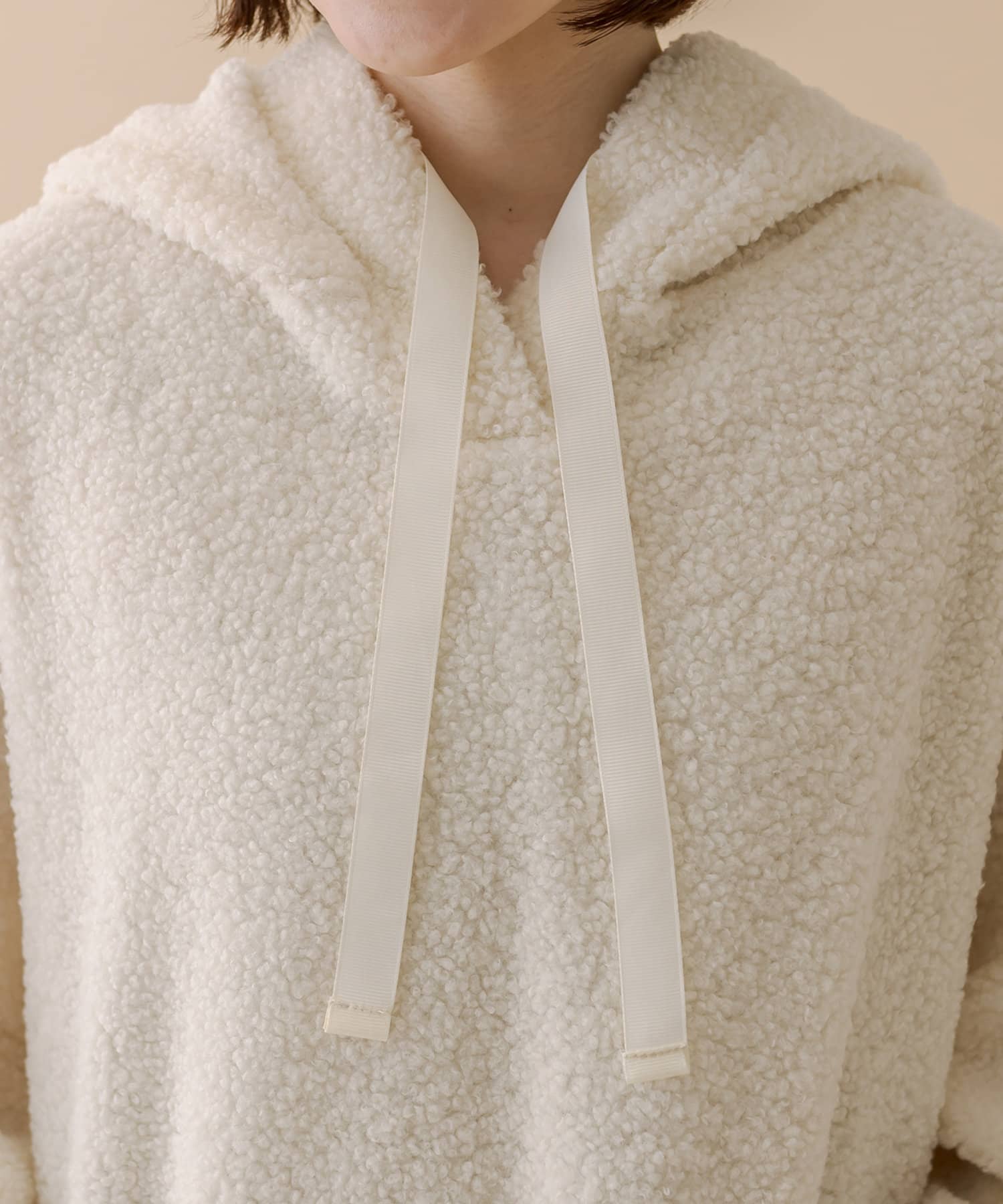 ボア素材が寒い季節にときめくフード付きパーカー。
