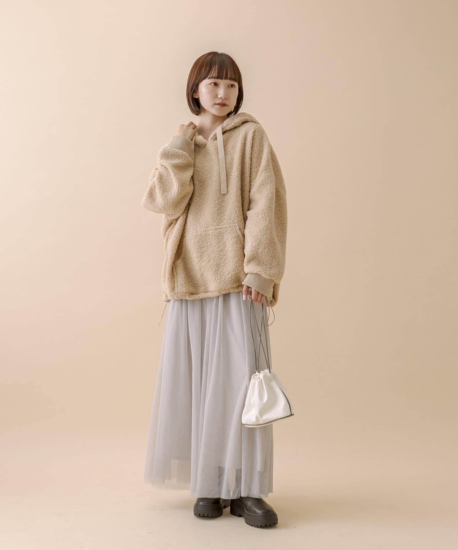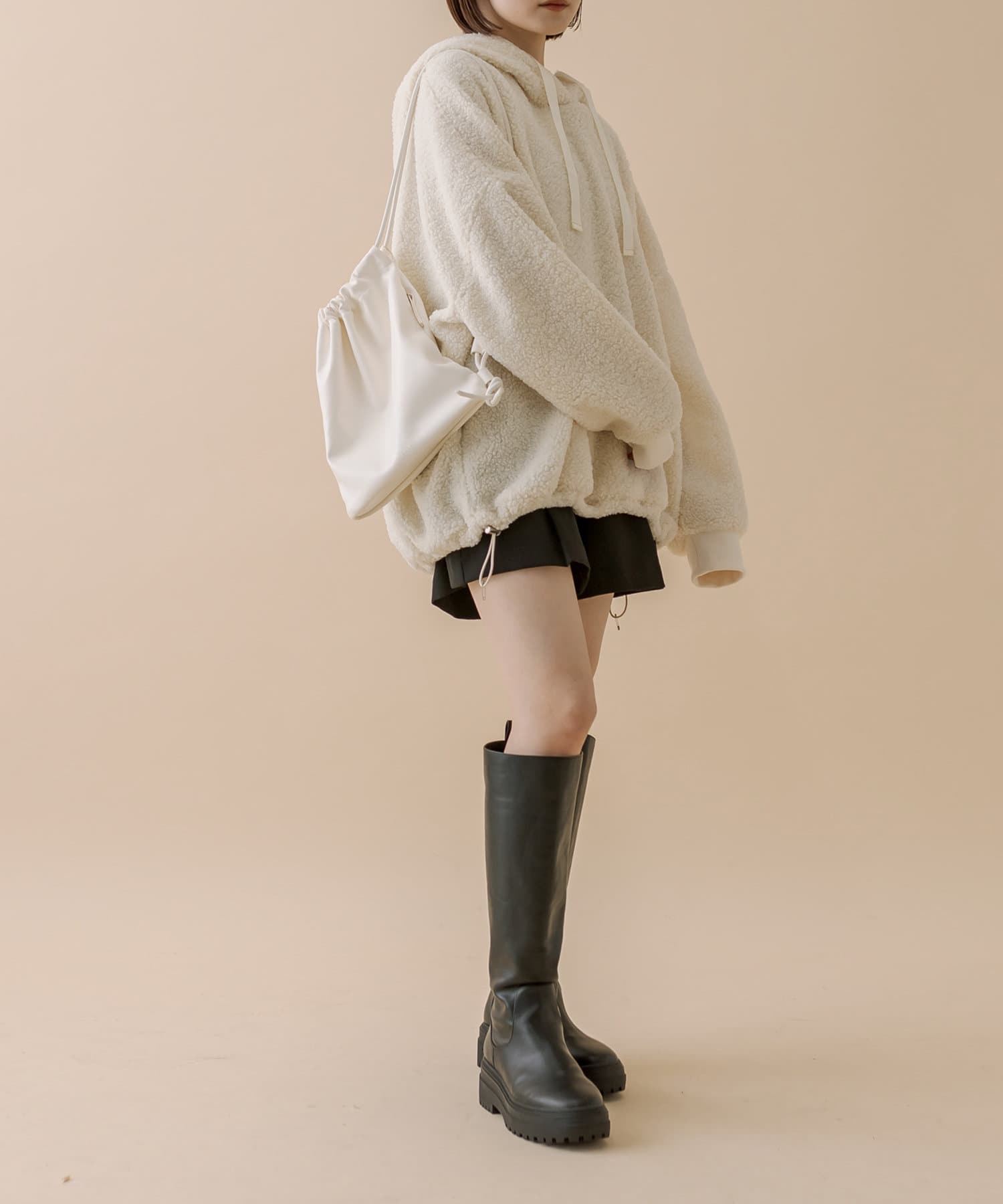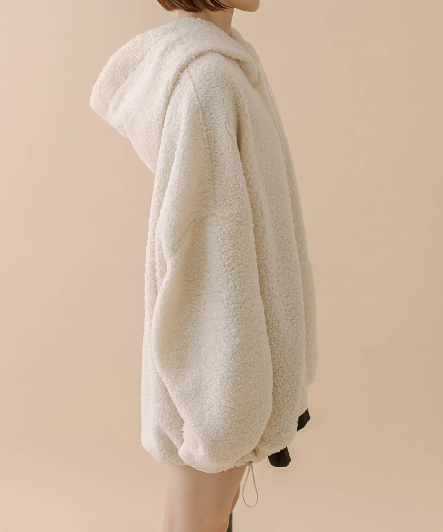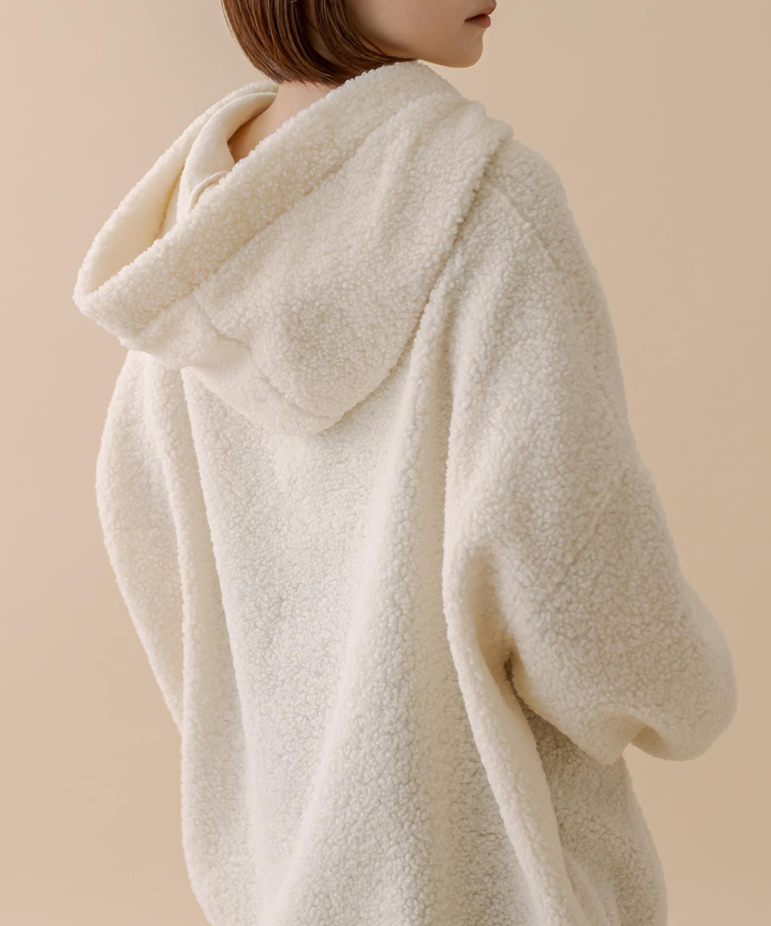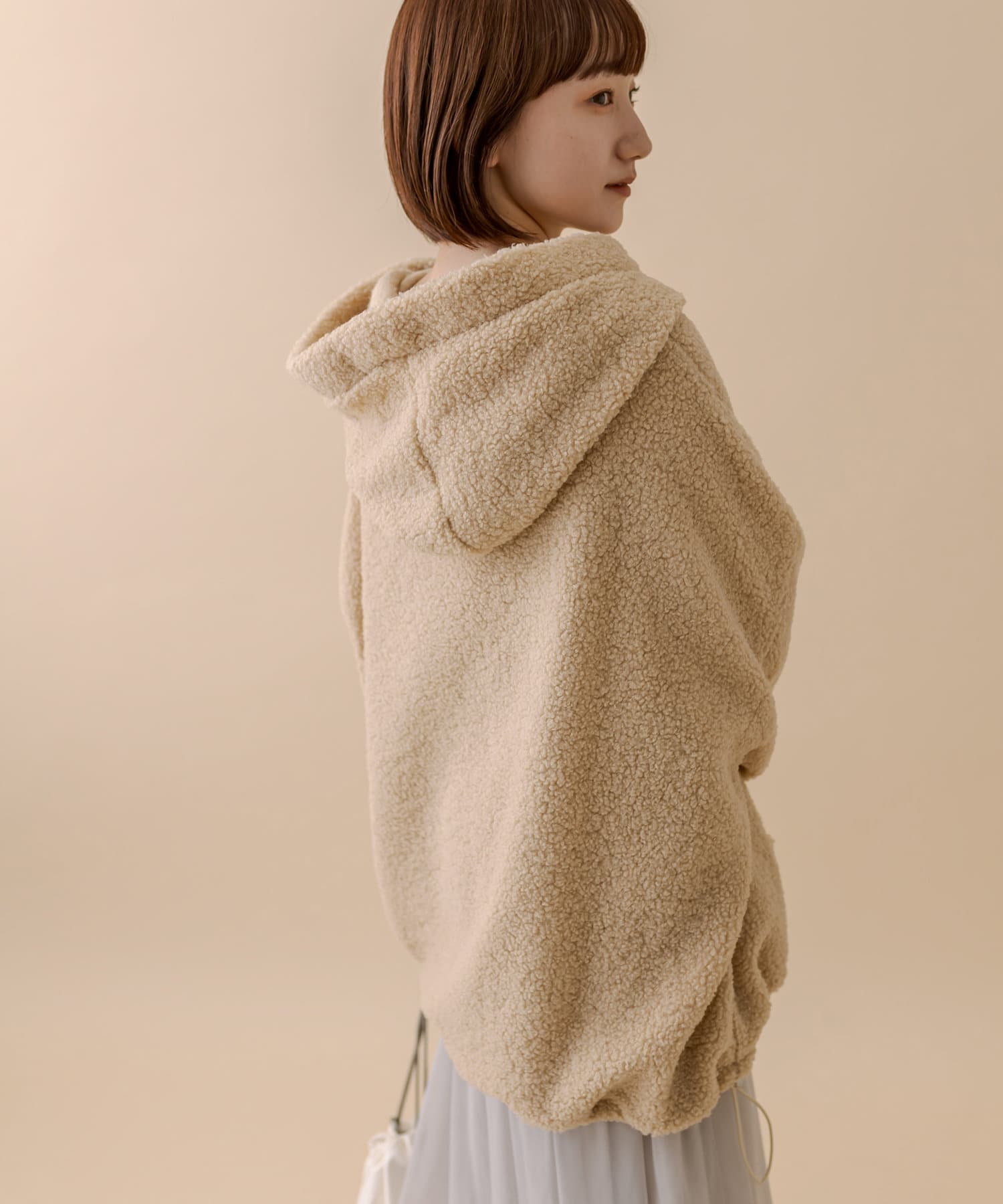 ボア素材が寒い季節にときめくフード付きパーカー。
