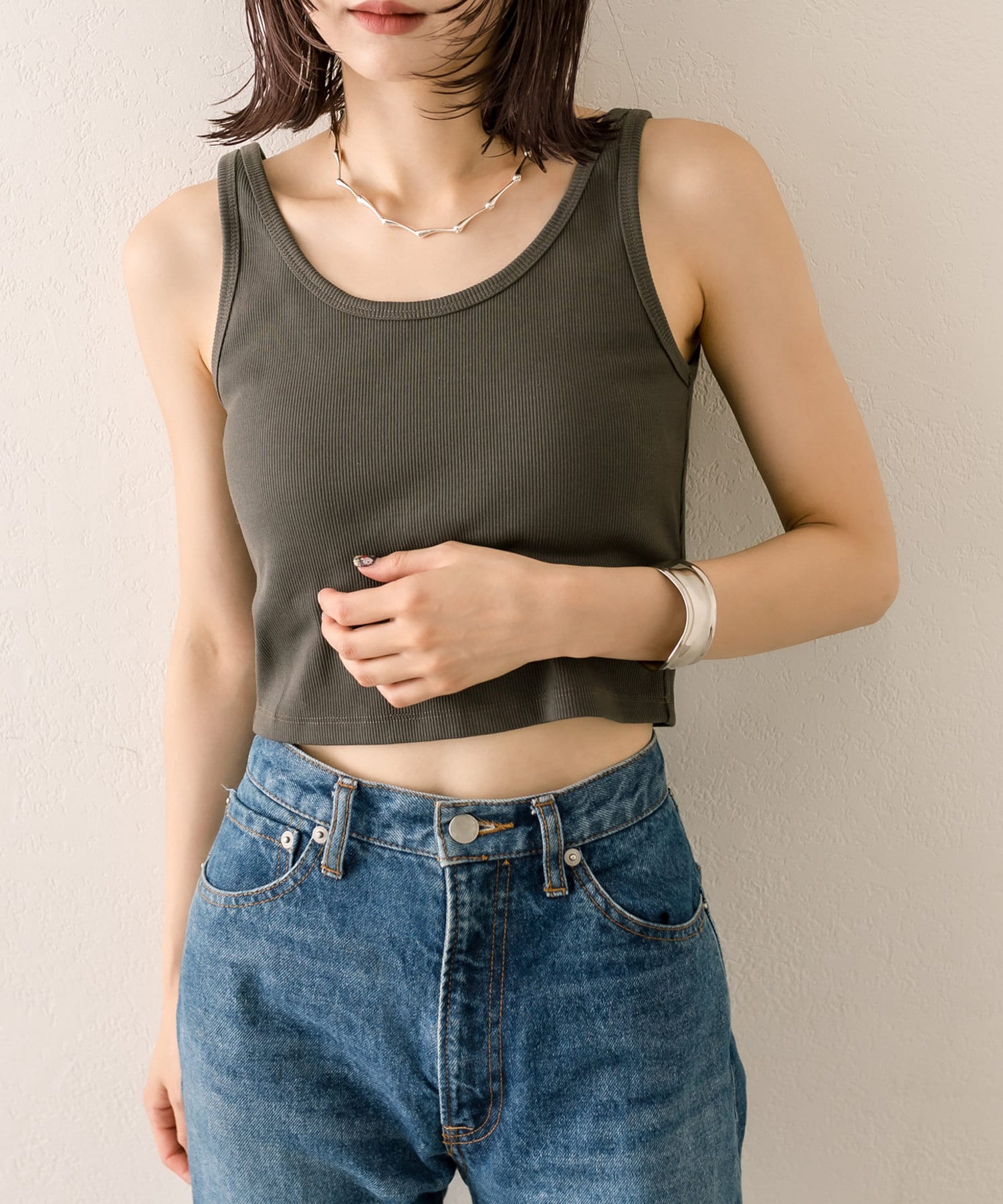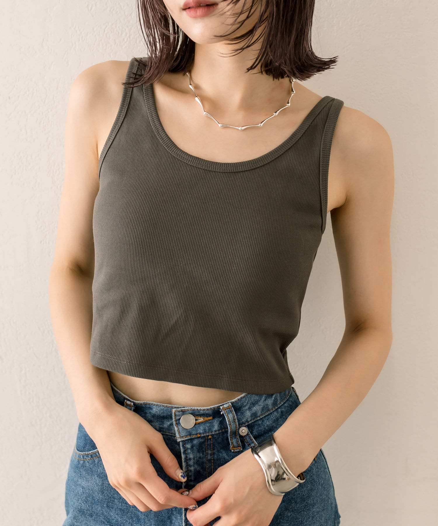 【mystic】パット付リブタンクトップ