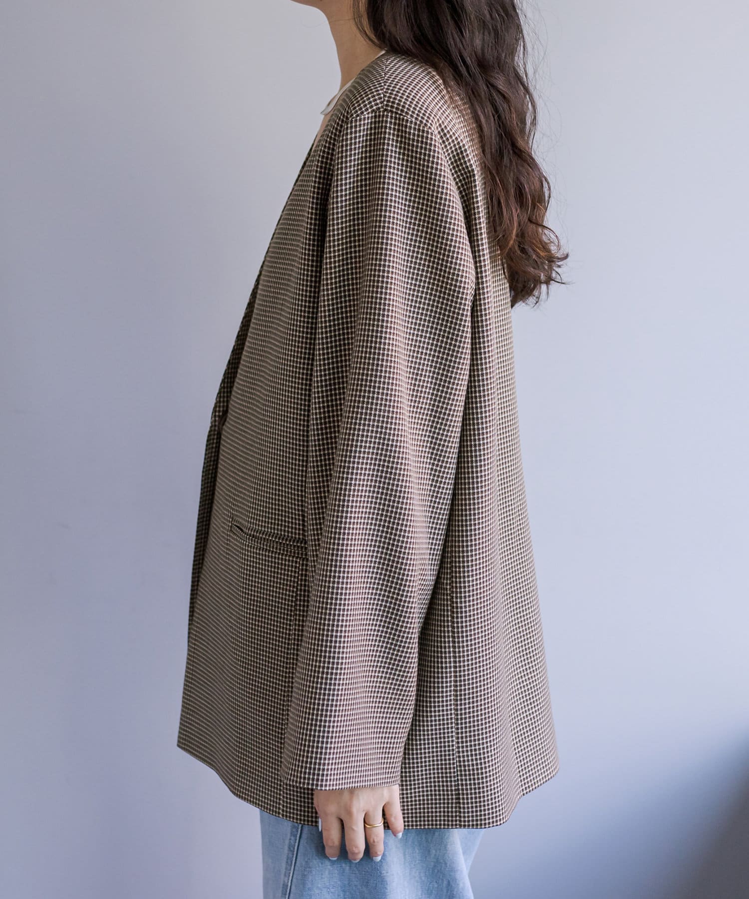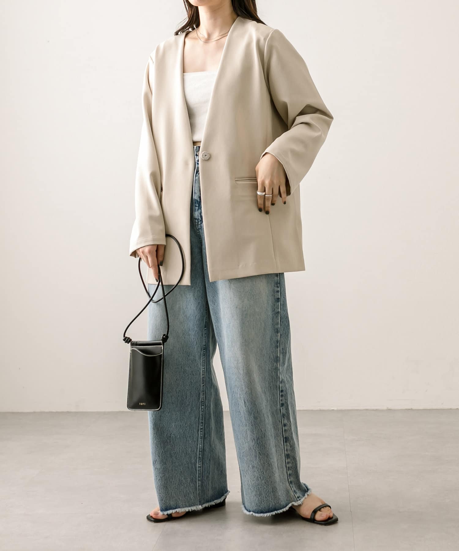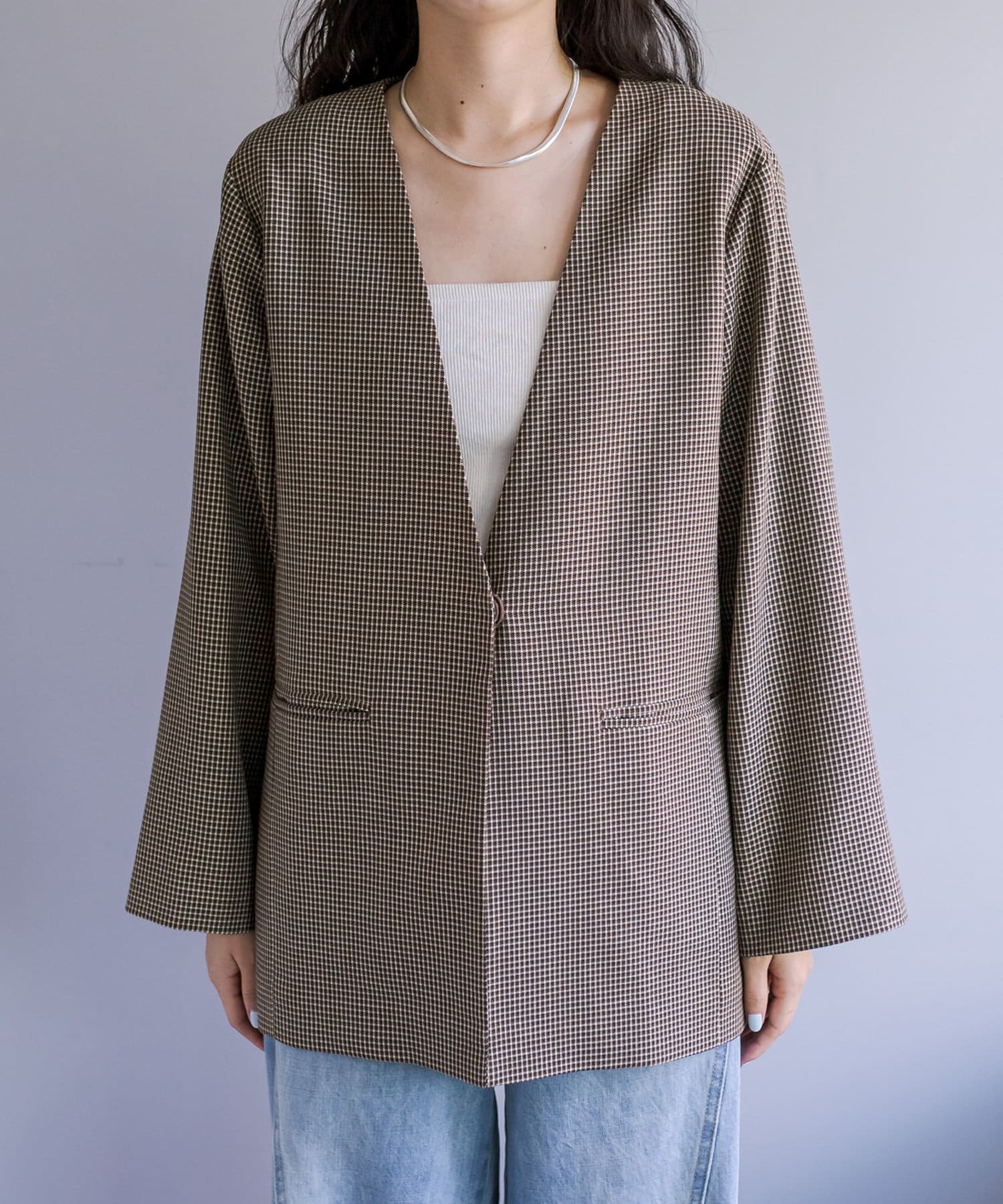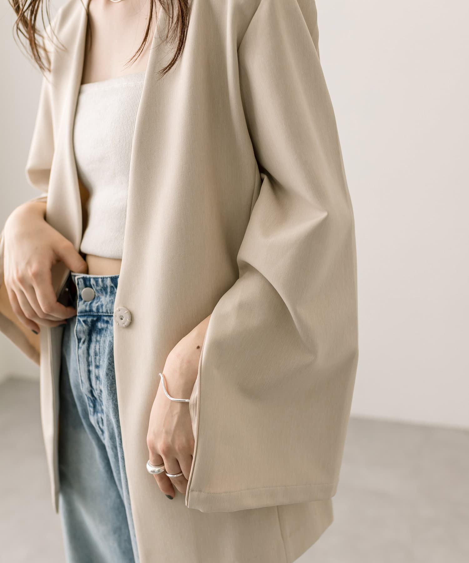 シンプルながらも細かなディティールにこだわったノーカラージャケット!