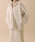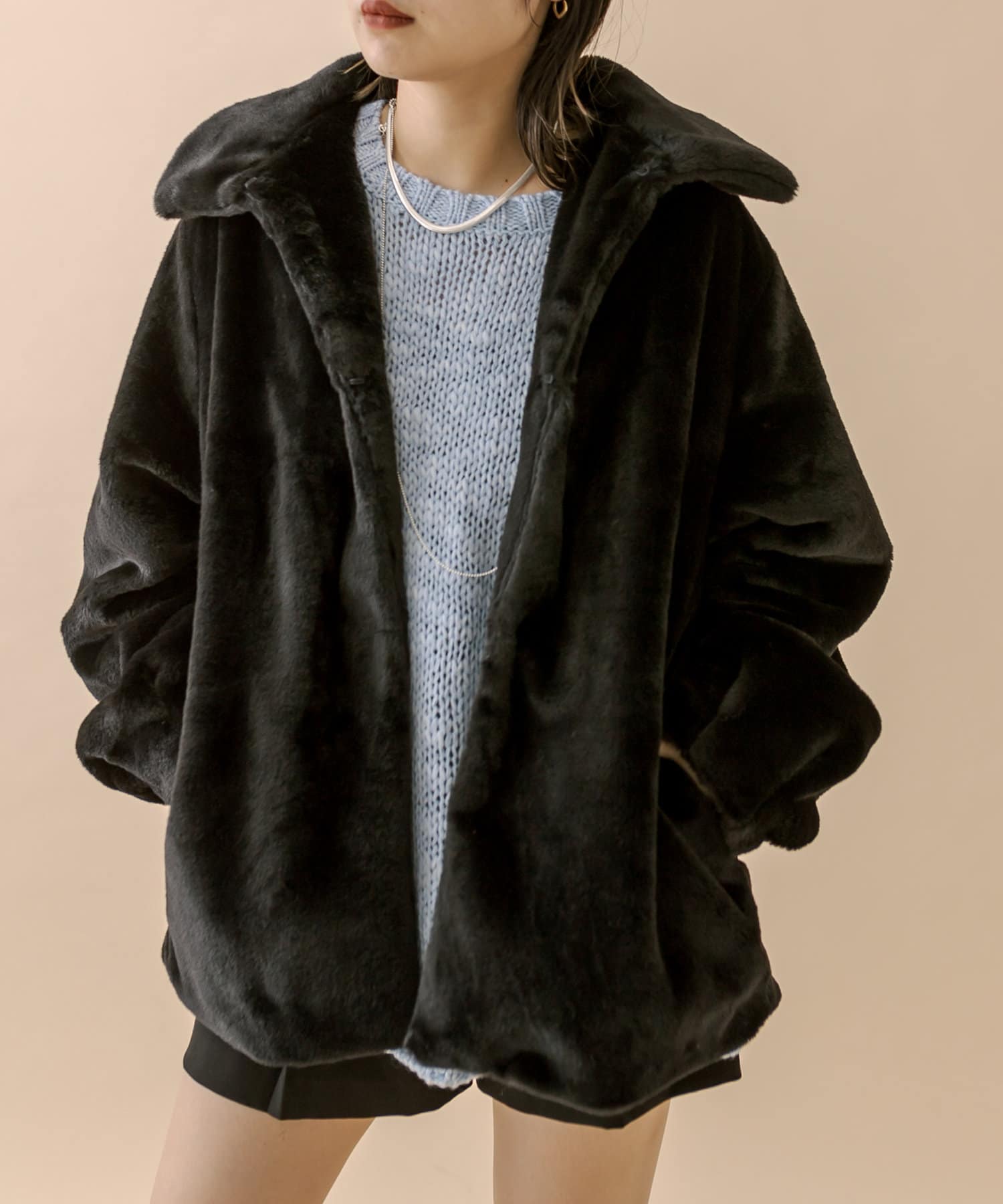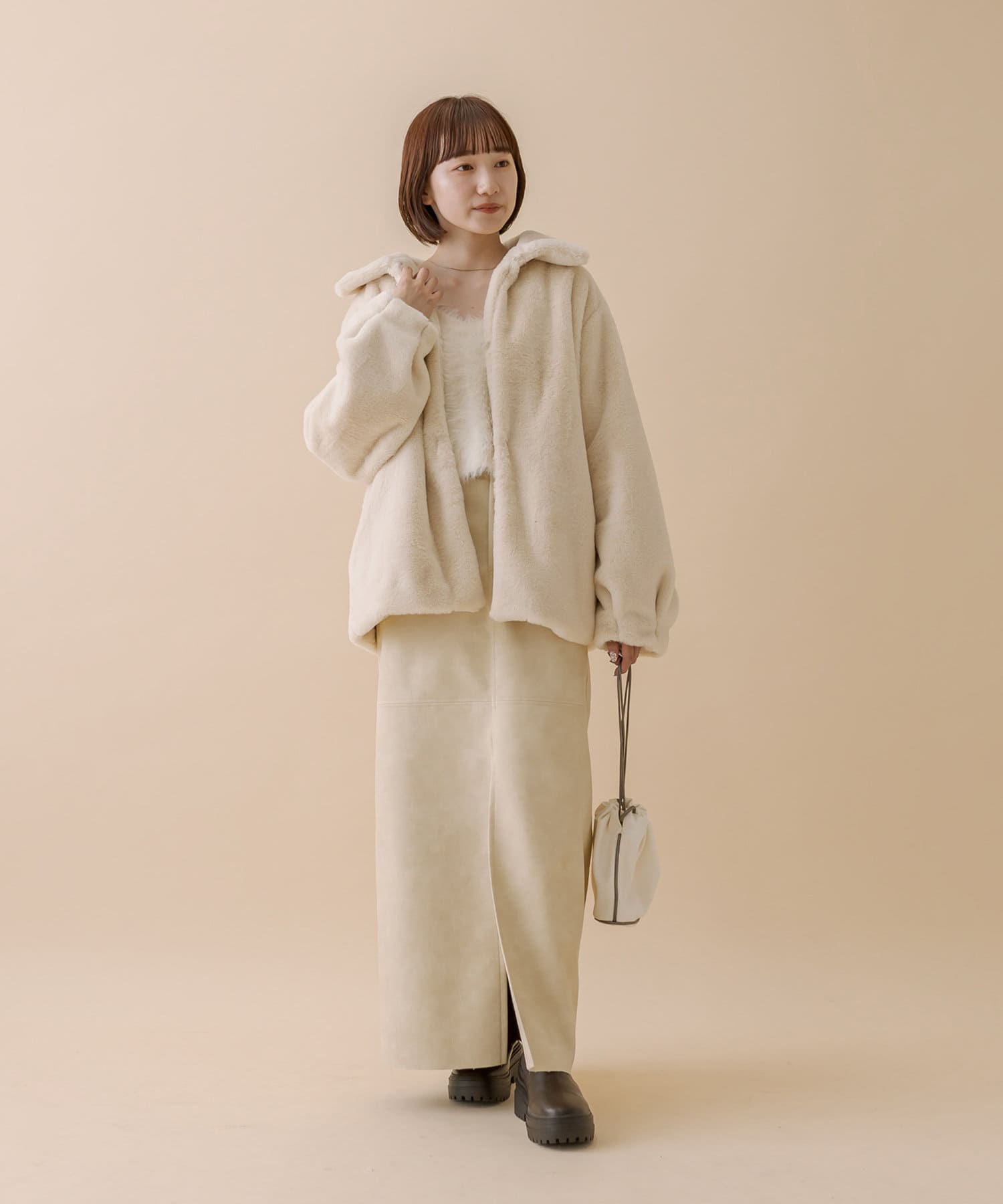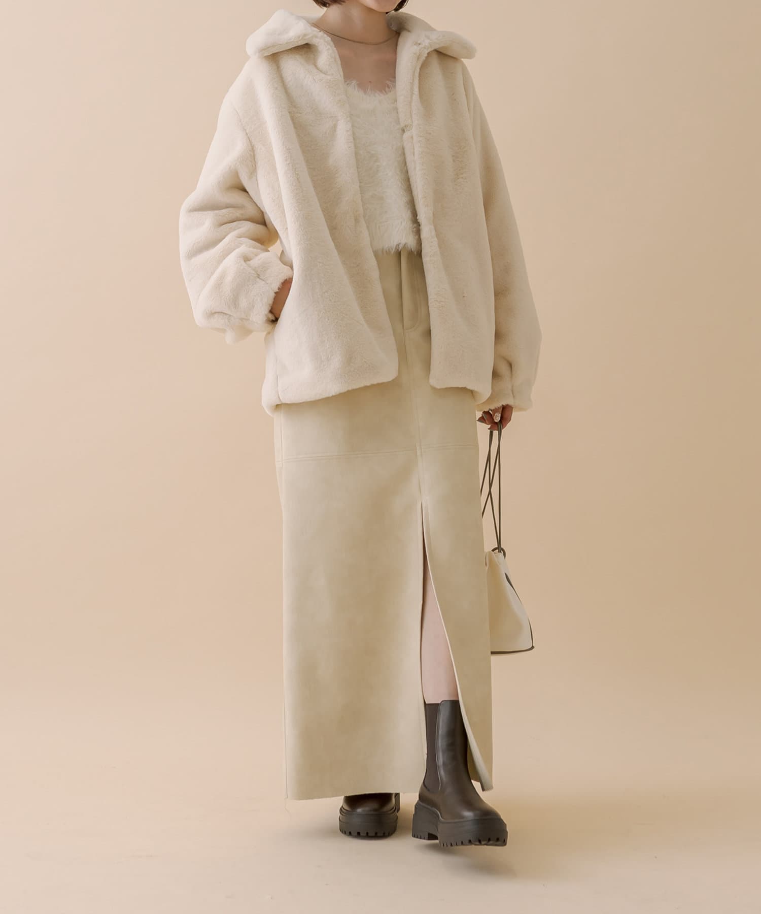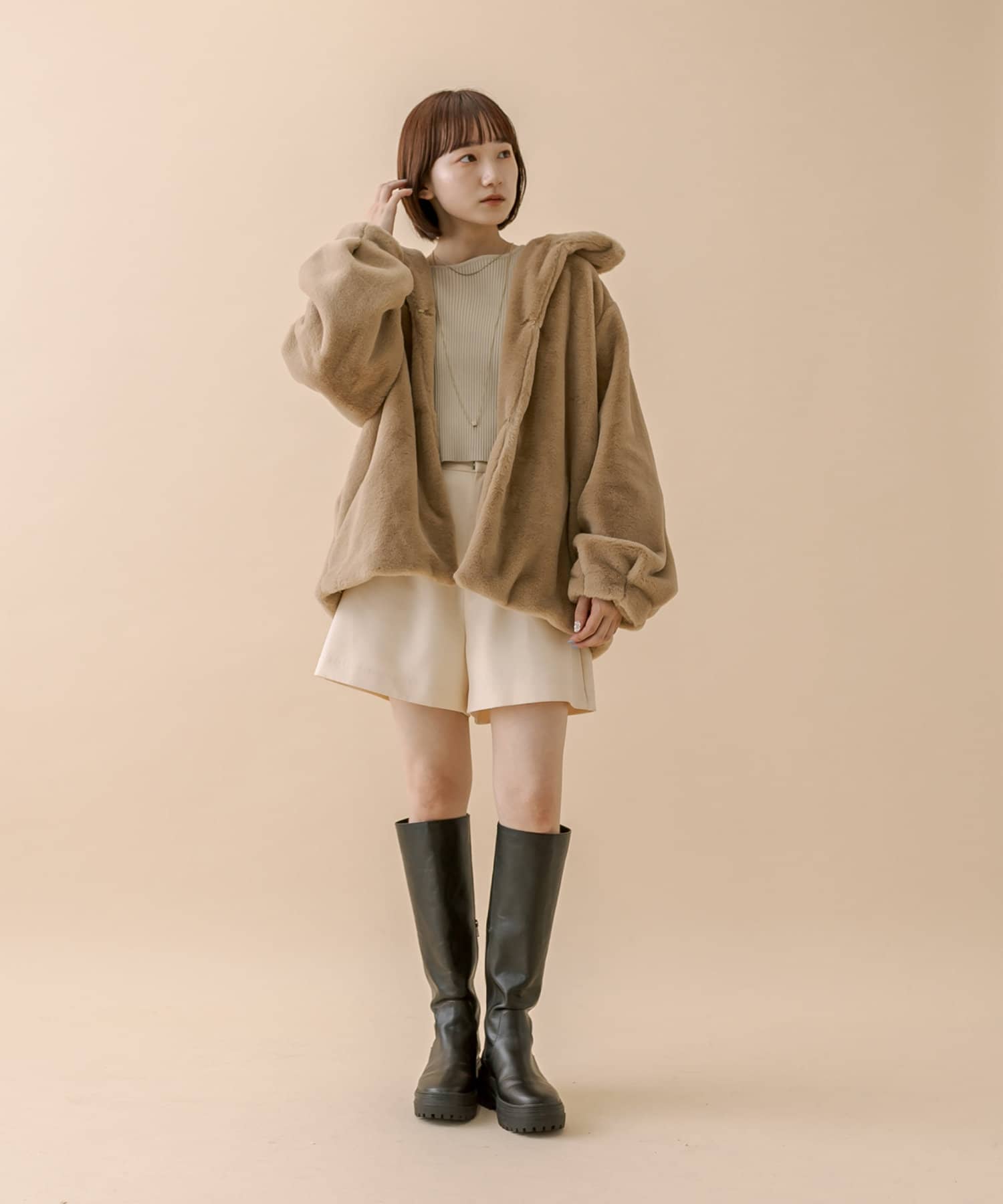 ・シンプルなコーデにも羽織るだけで決まるボリューム感。