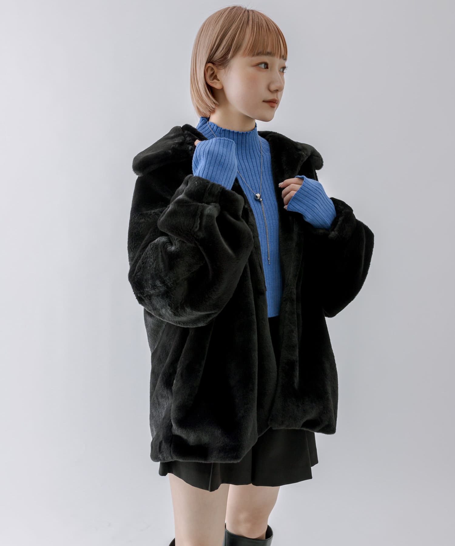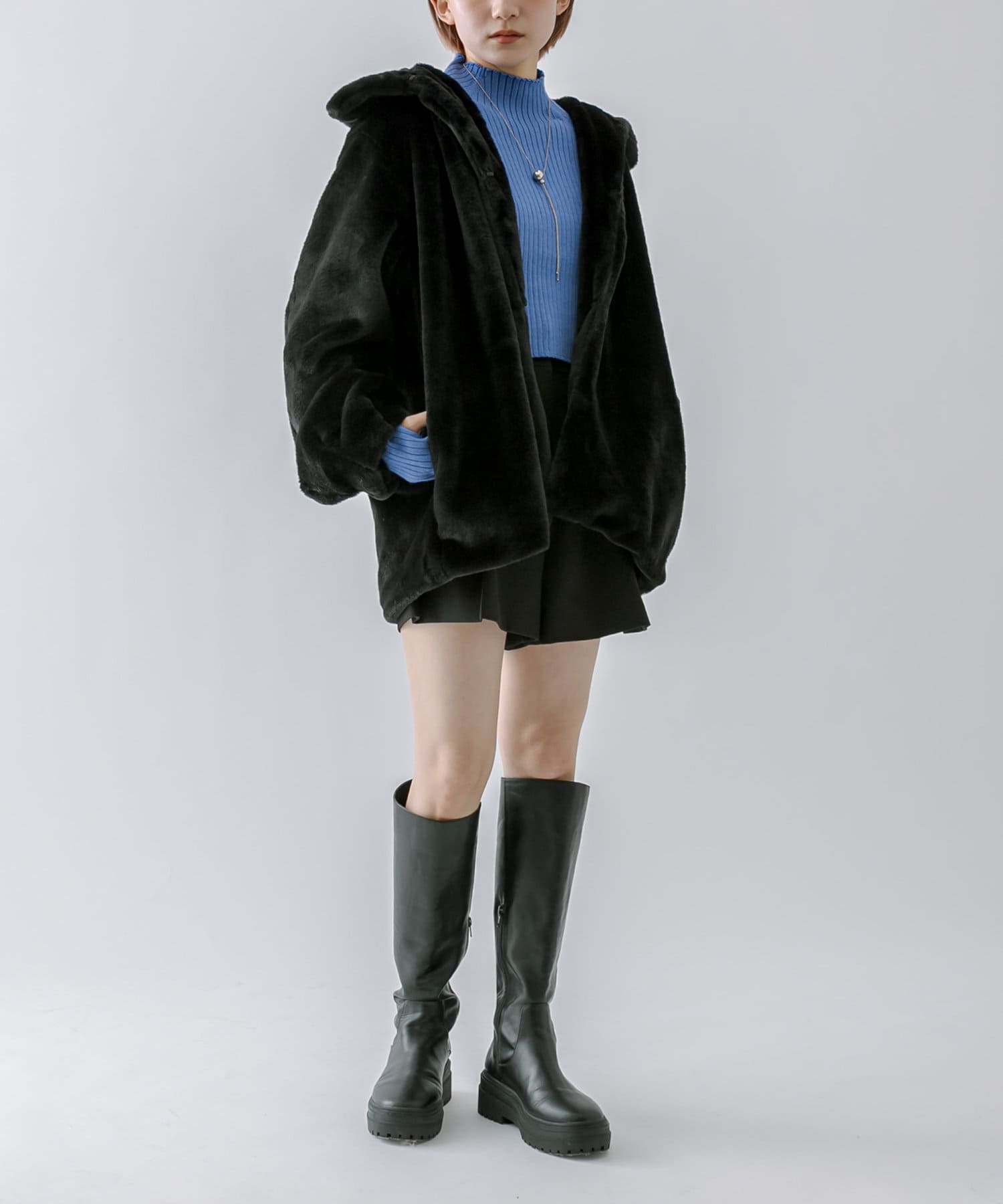 ・タートルネックやハイネック合わせでモードな着こなしもおすすめ。