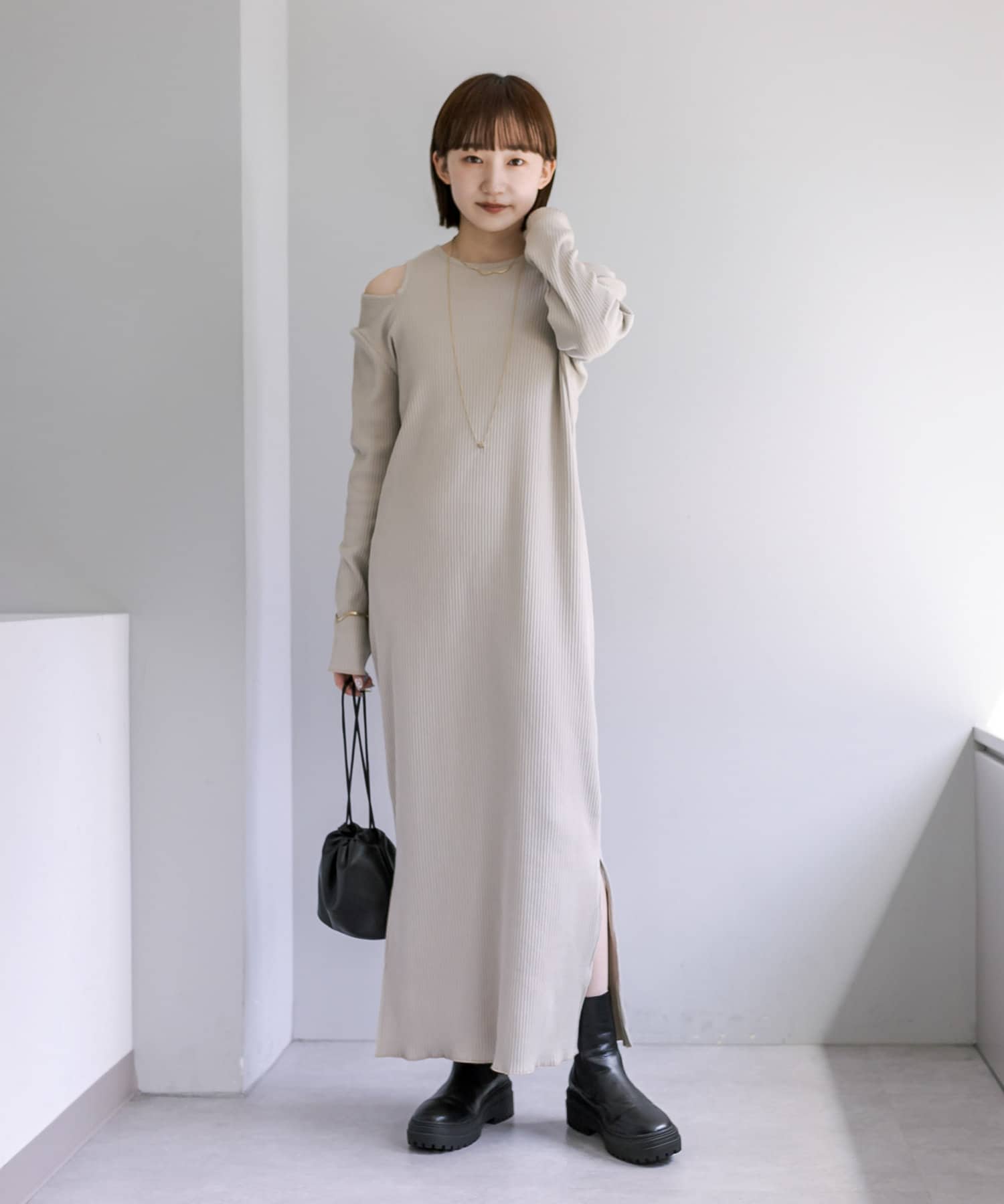 ・細みのリブが身体のラインを縦に綺麗に見せてくれます。