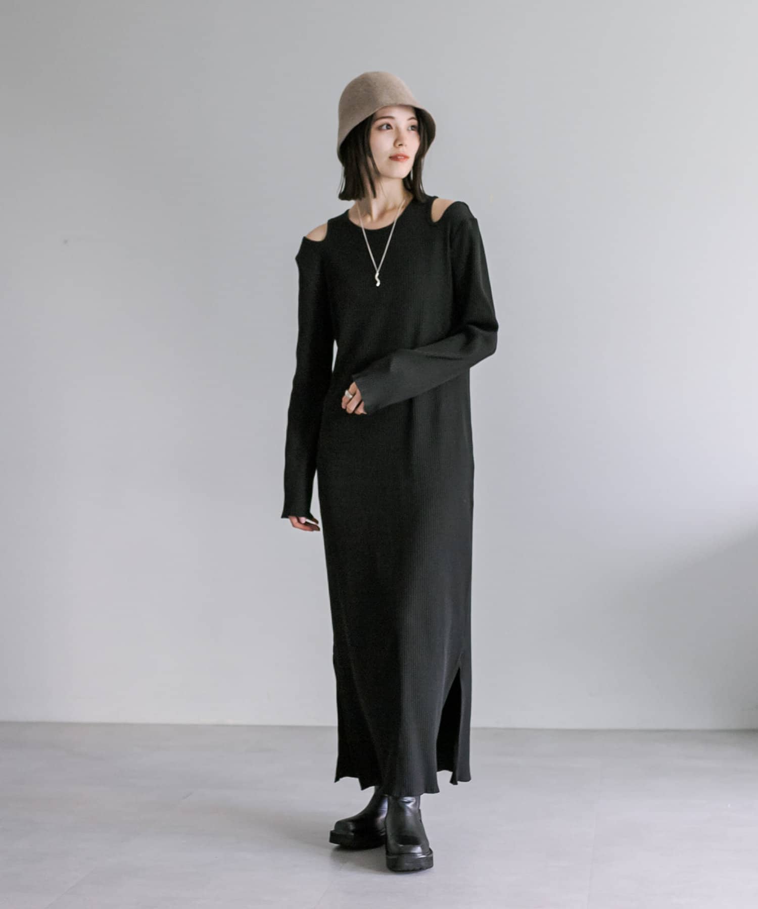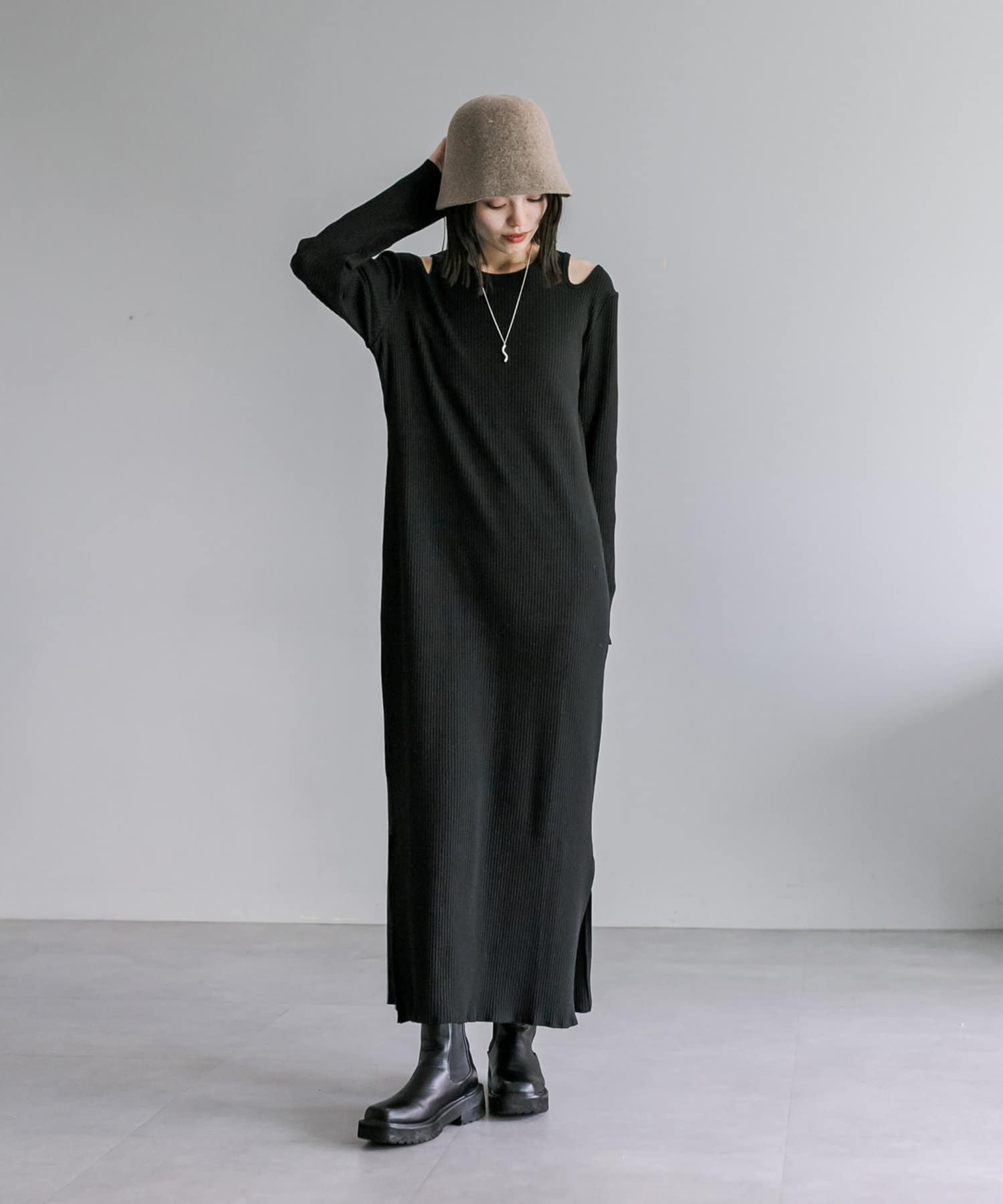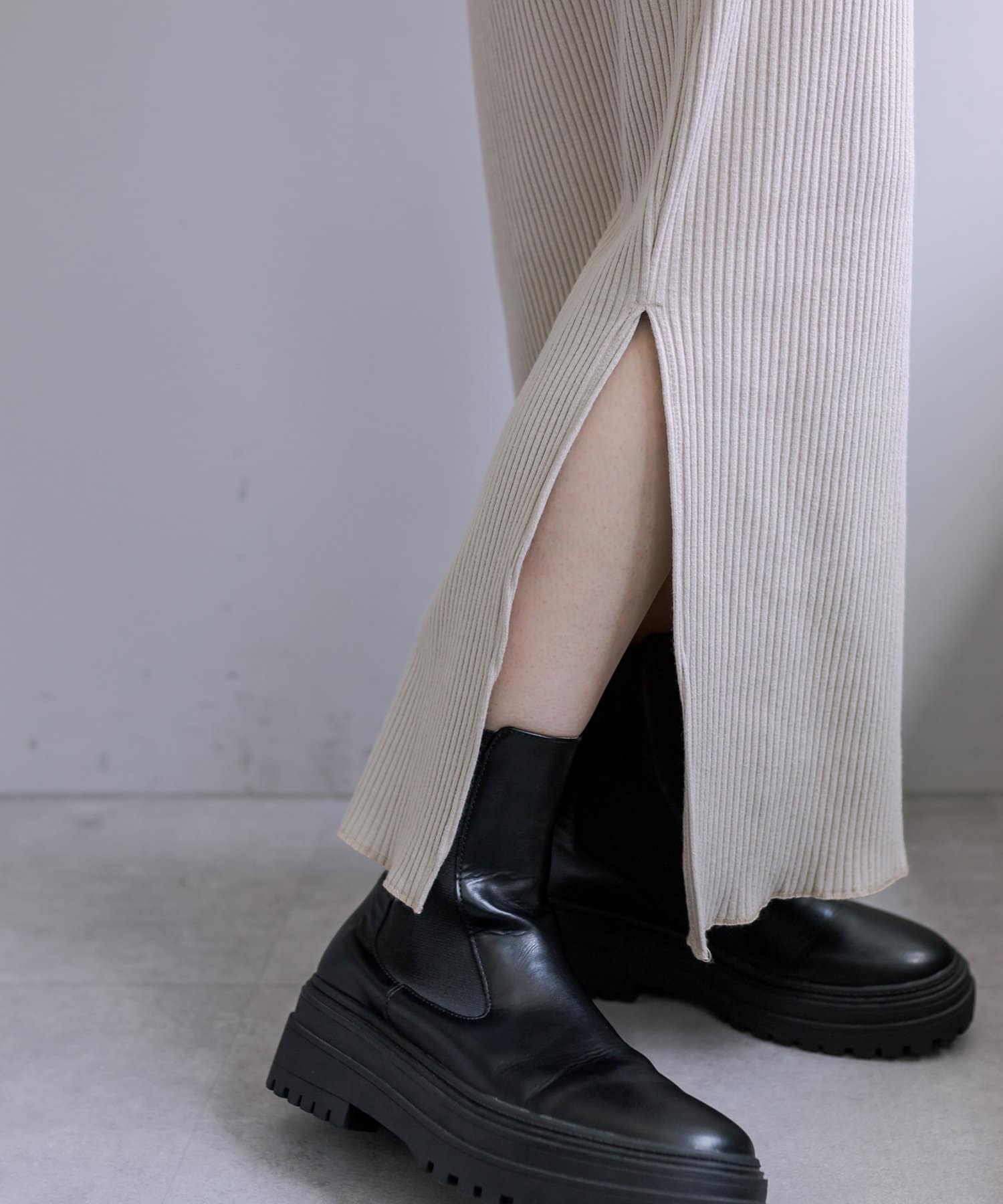 ・細みのリブが身体のラインを縦に綺麗に見せてくれます。