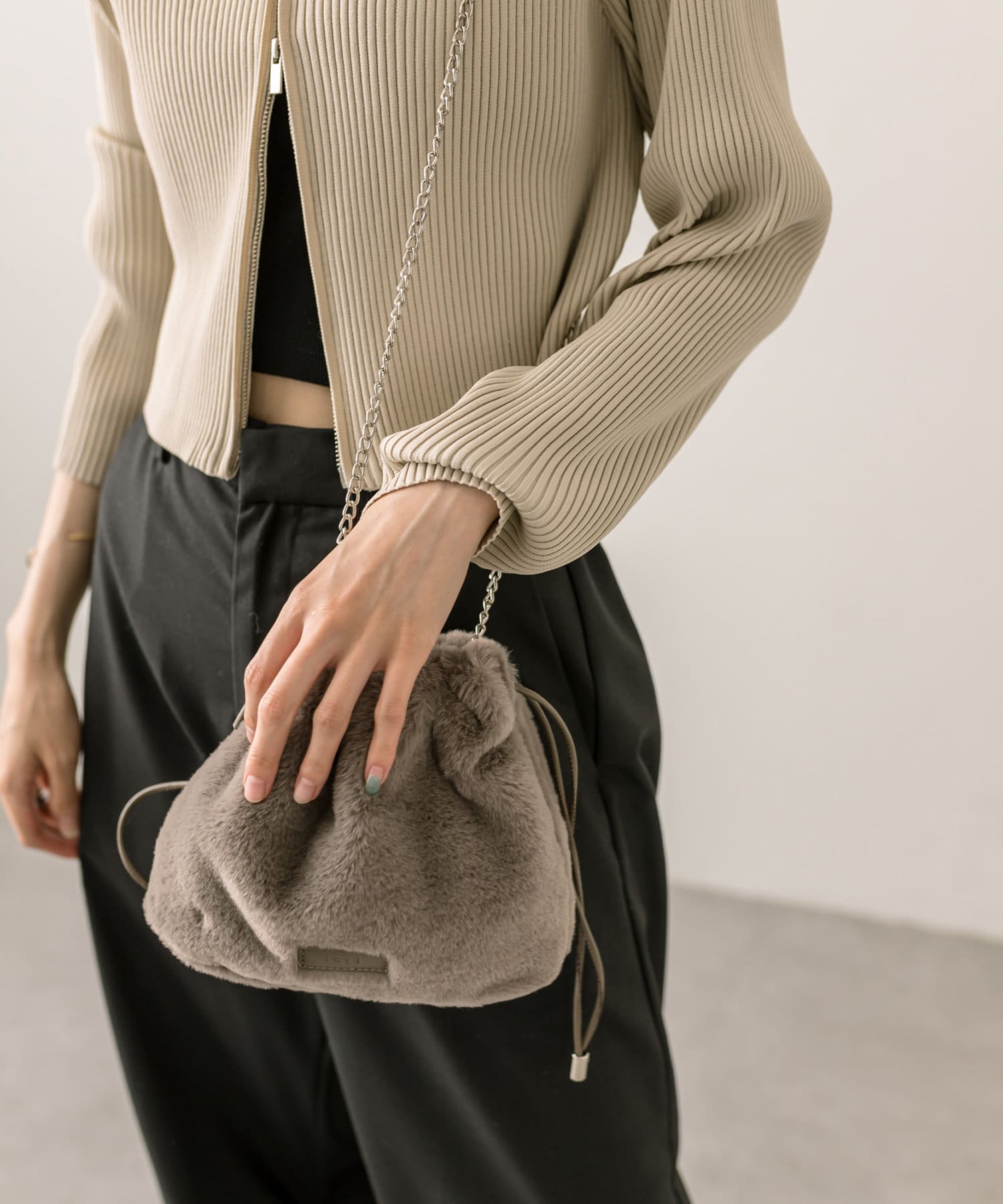 ・ファーが目を惹く巾着型ショルダーバッグが登場。
