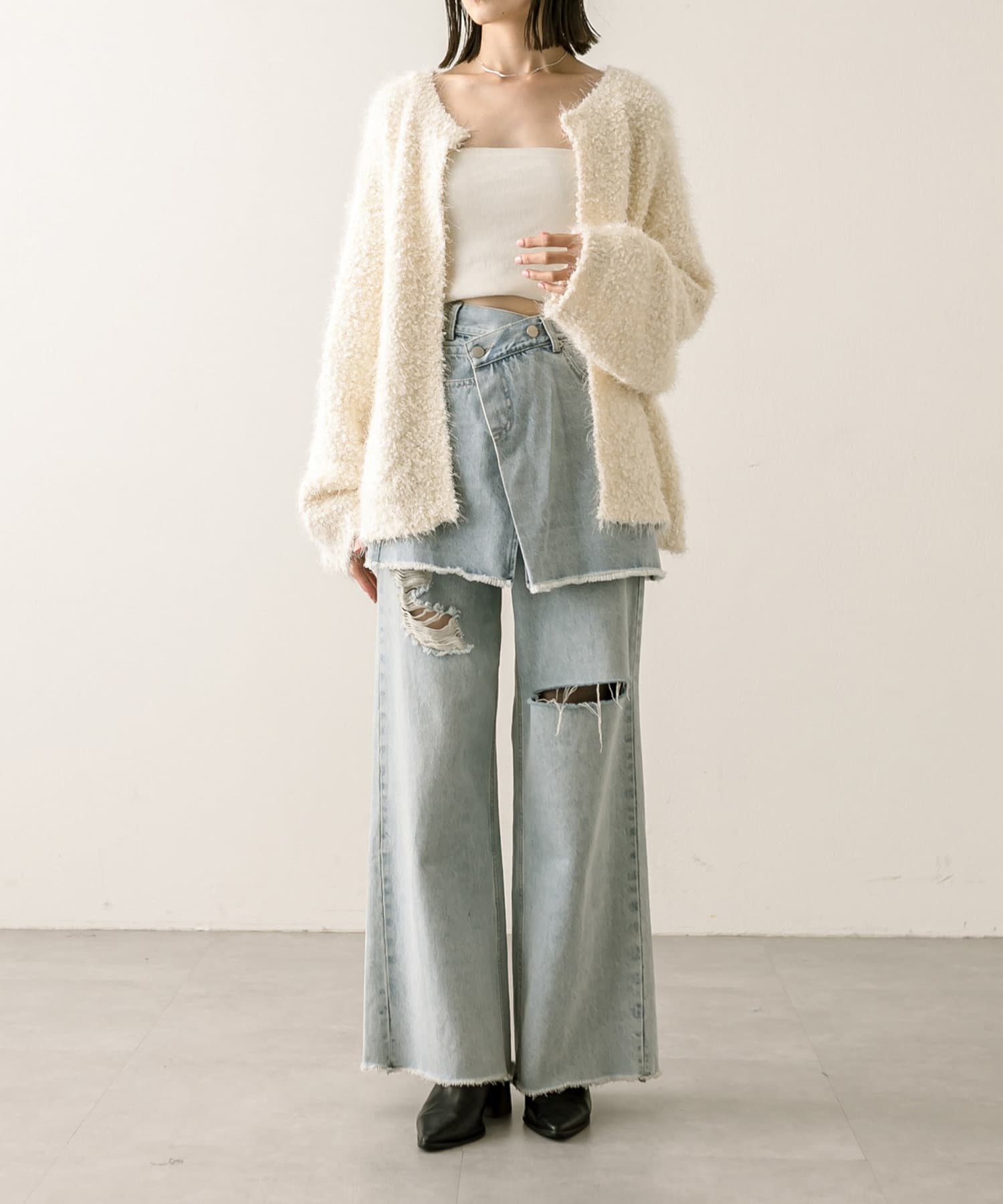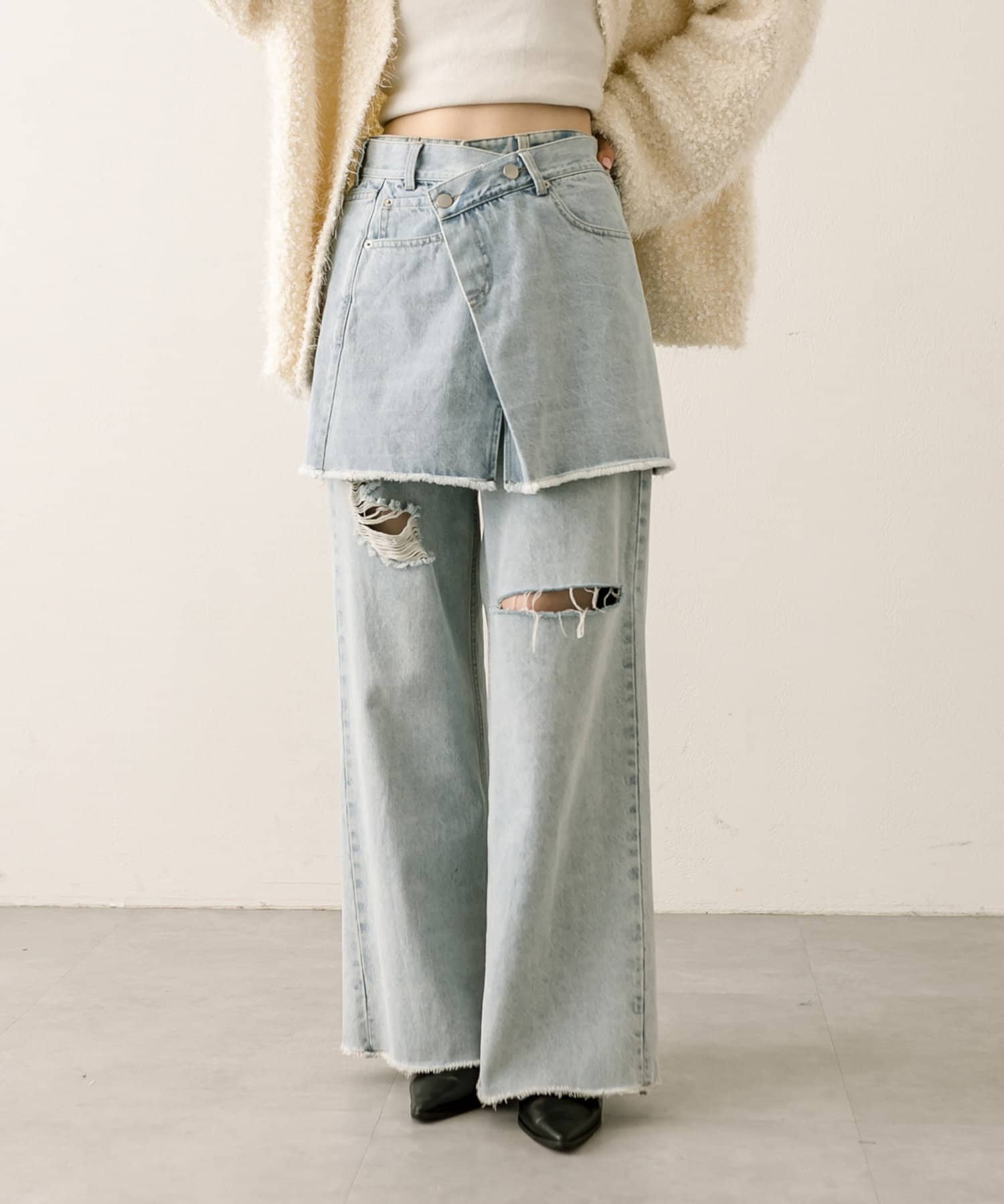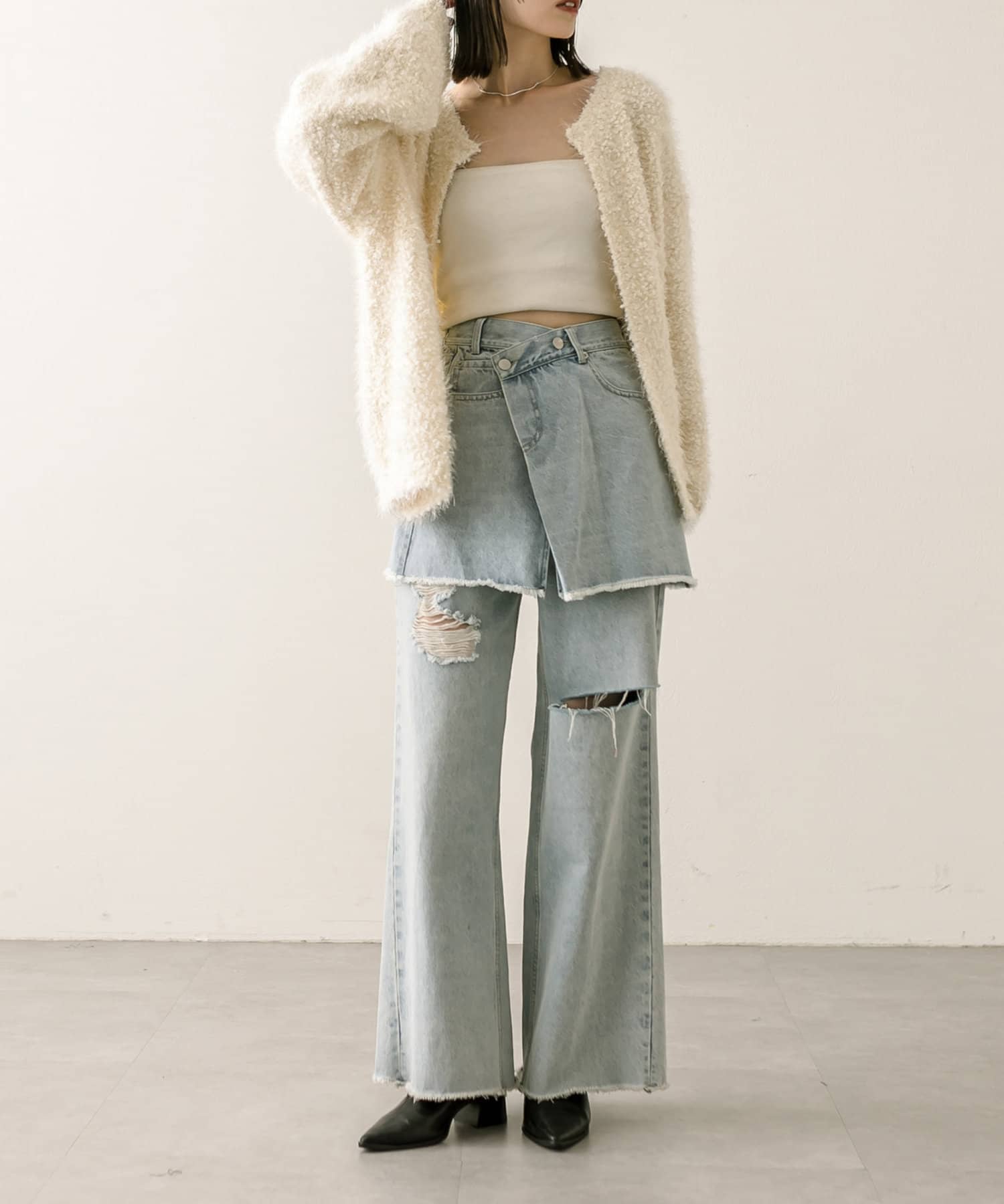 ・ミニデニムスカートとセットで着用するのがおすすめ。