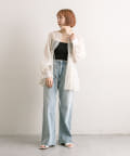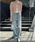 購入場所:店舗フレアデニムだけどそこまで広がっていないのでスタイル良く見えます♡