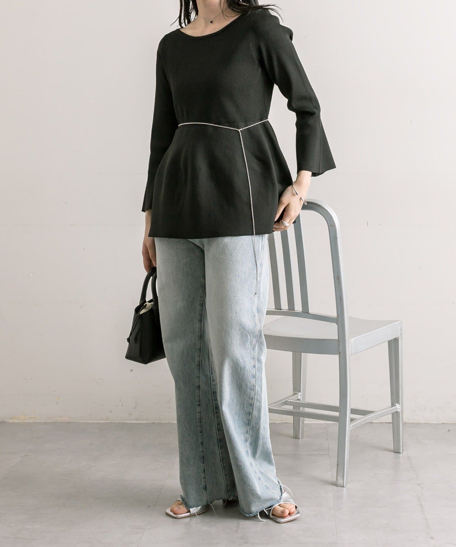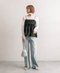腰回りから膝辺りまではジャストサイズに近く、華奢に見えるのに、裾は少し広がっているのでボリュームダウンせず太って見えないところがありがたいです。