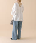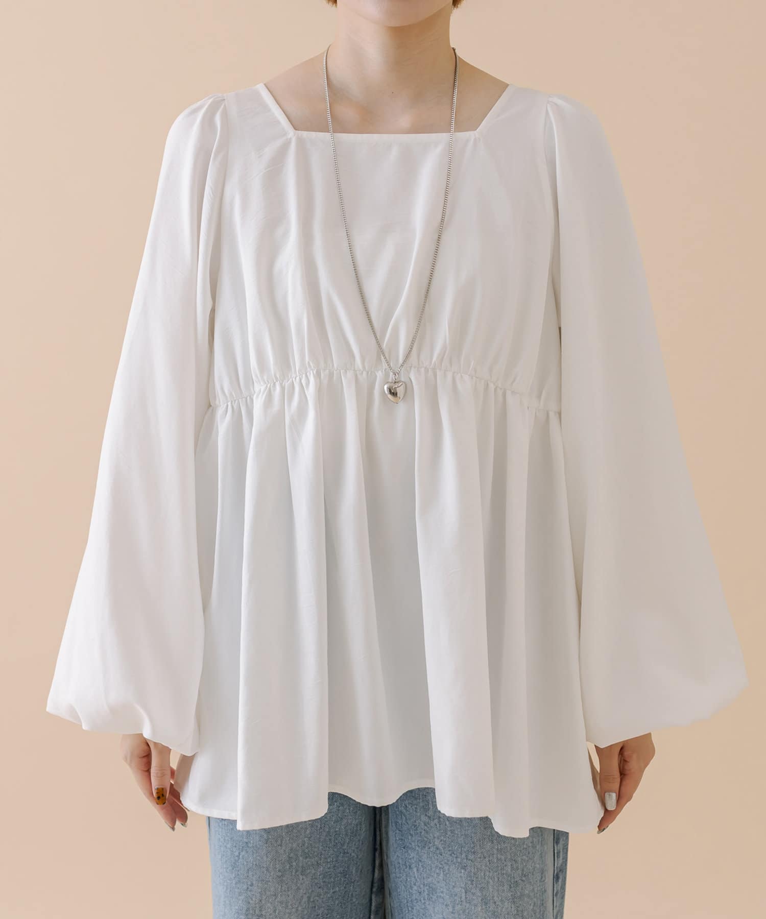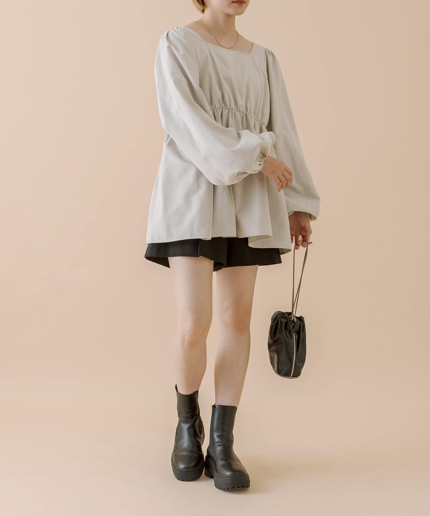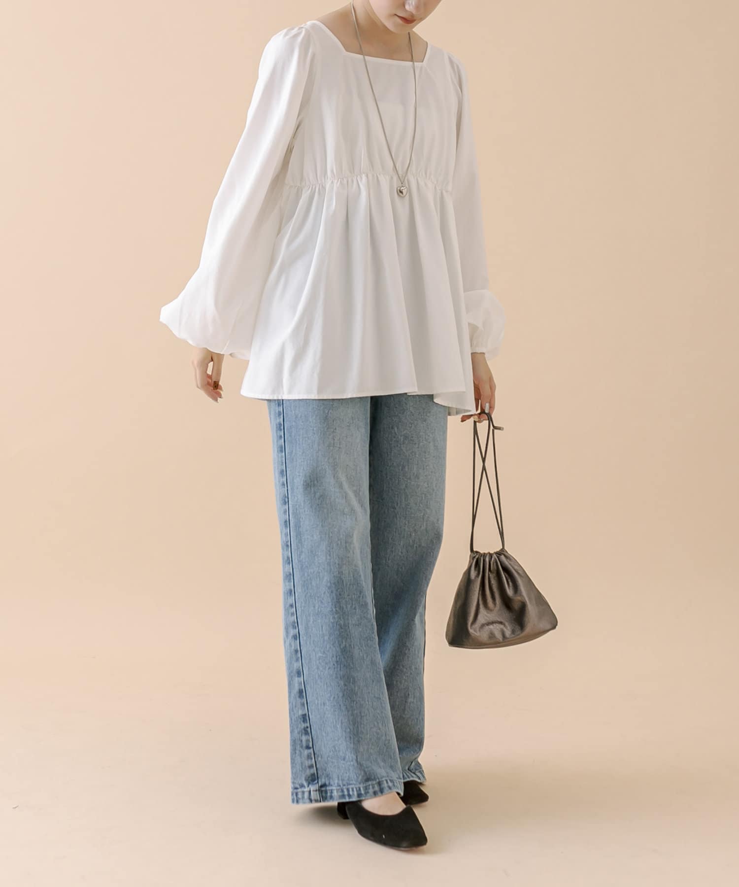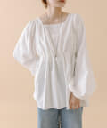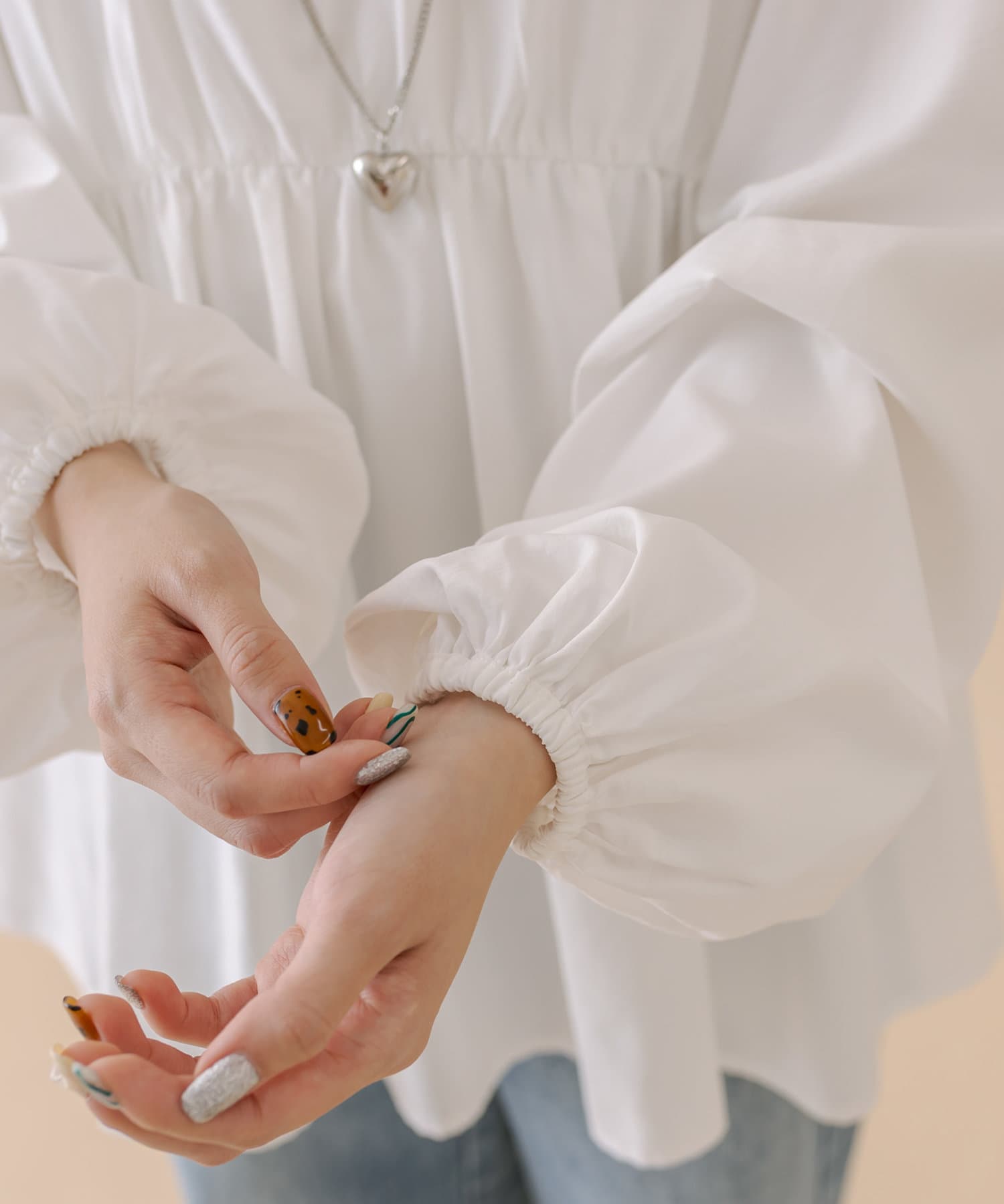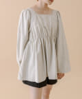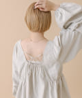 ・袖や肩の控えめなギャザーも華やかな雰囲気に。
