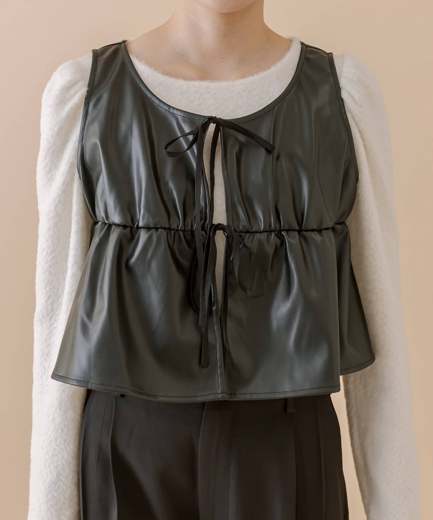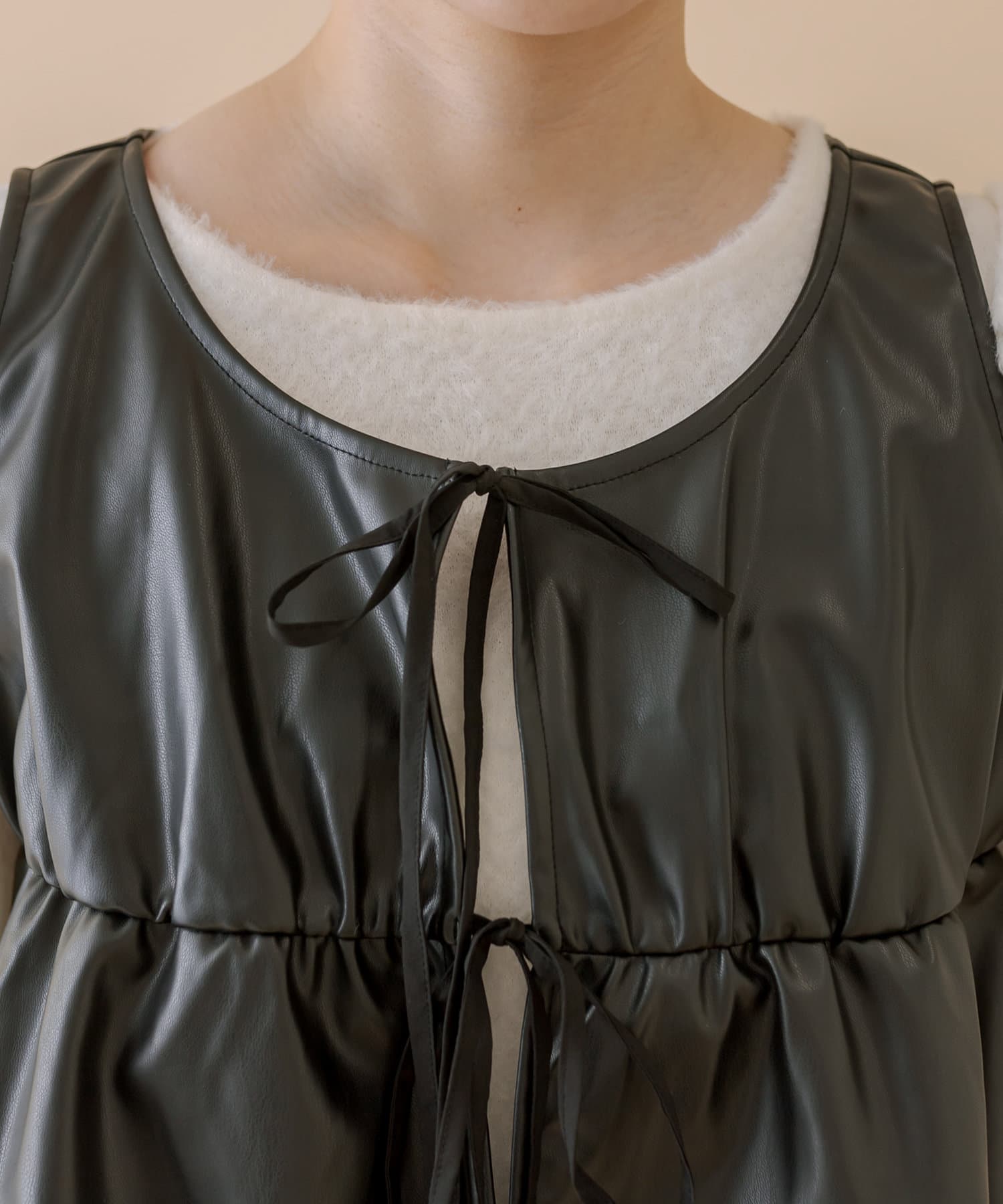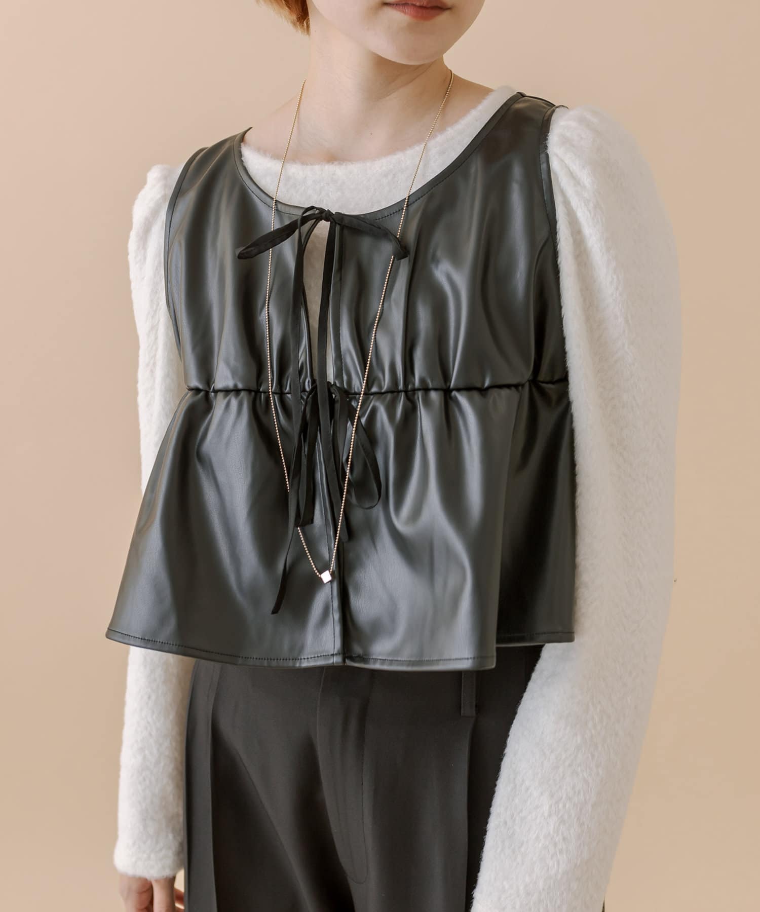 ・ややツヤ感のあるレザーとリボンデザインで華やかさもプラス。