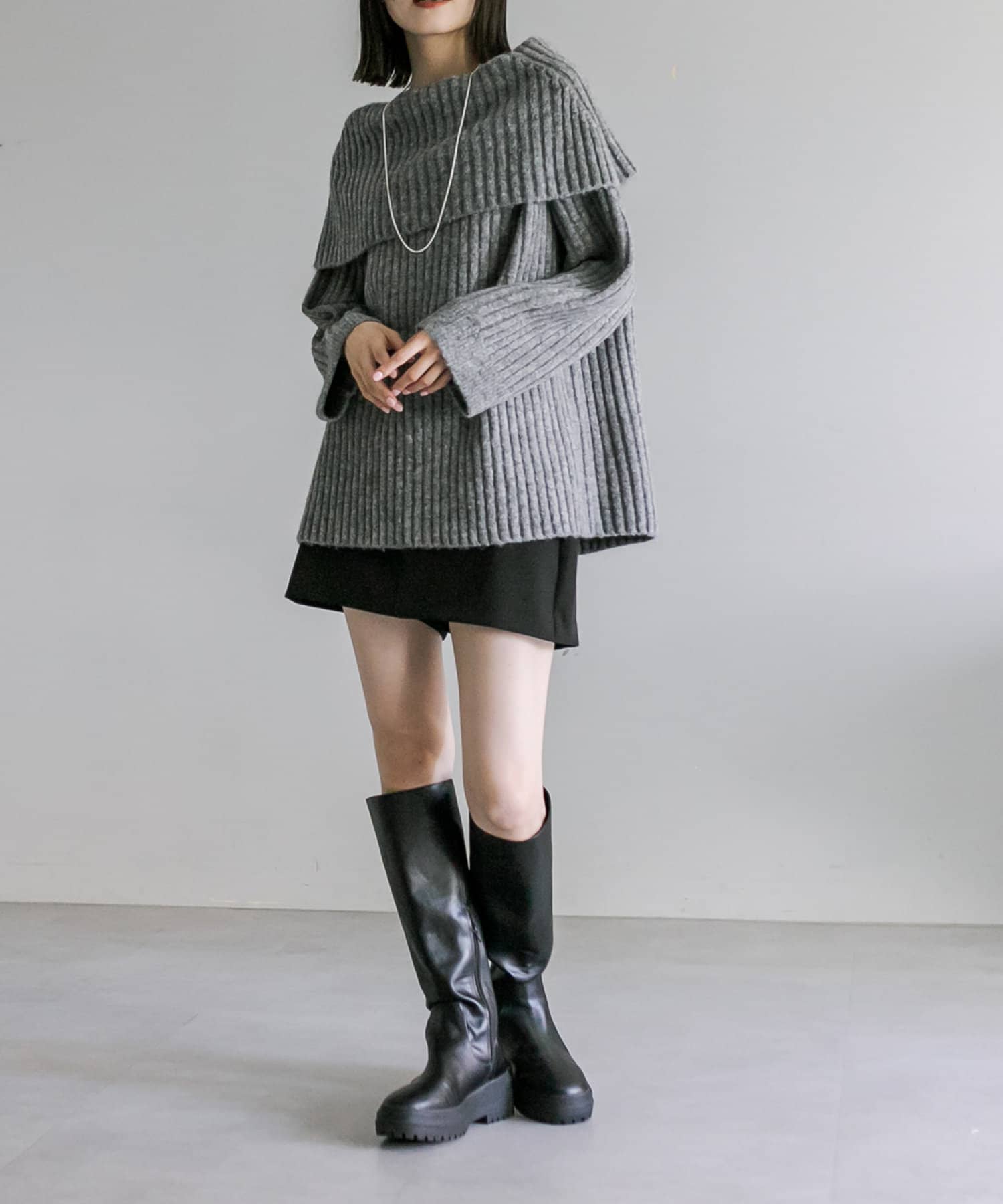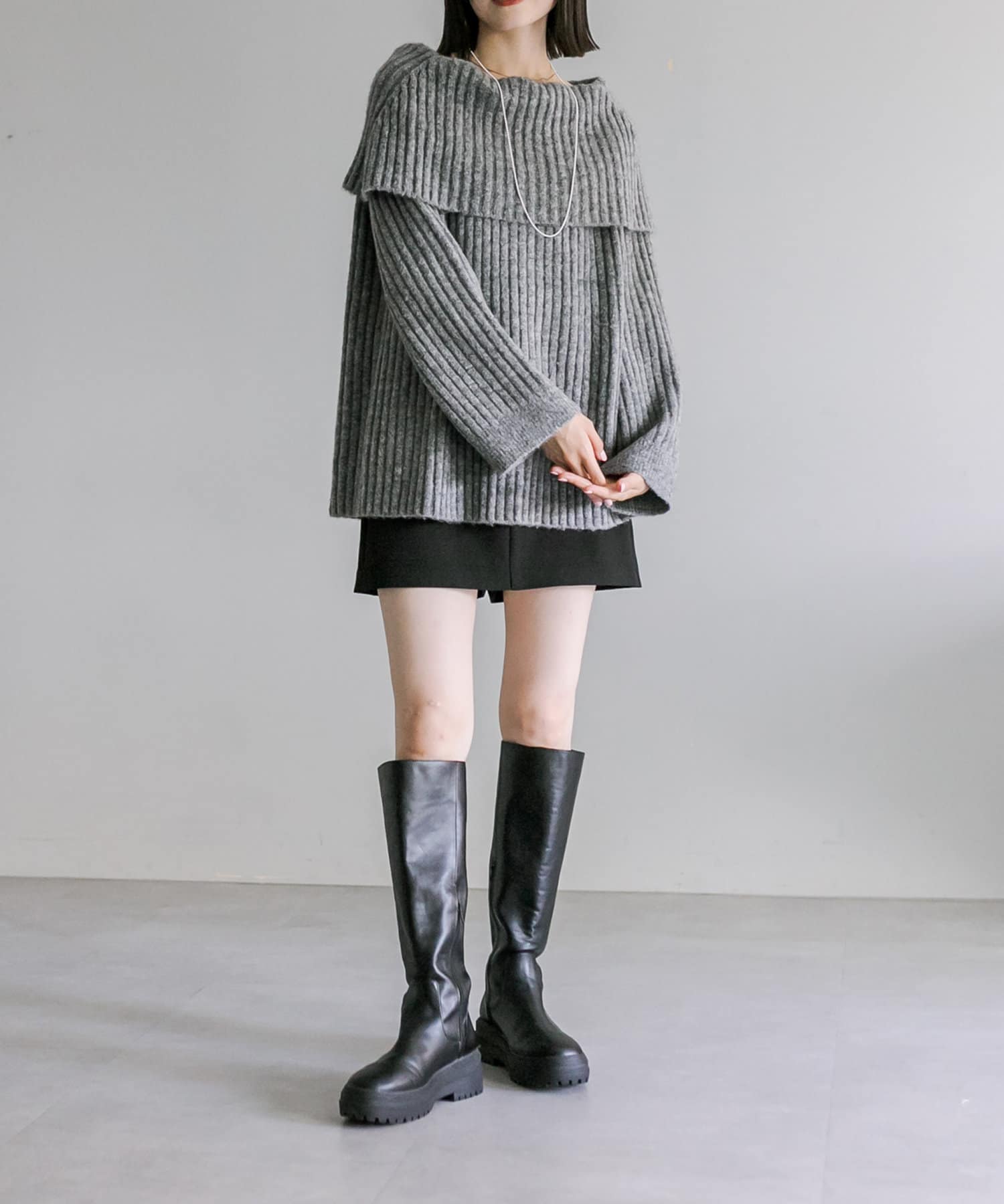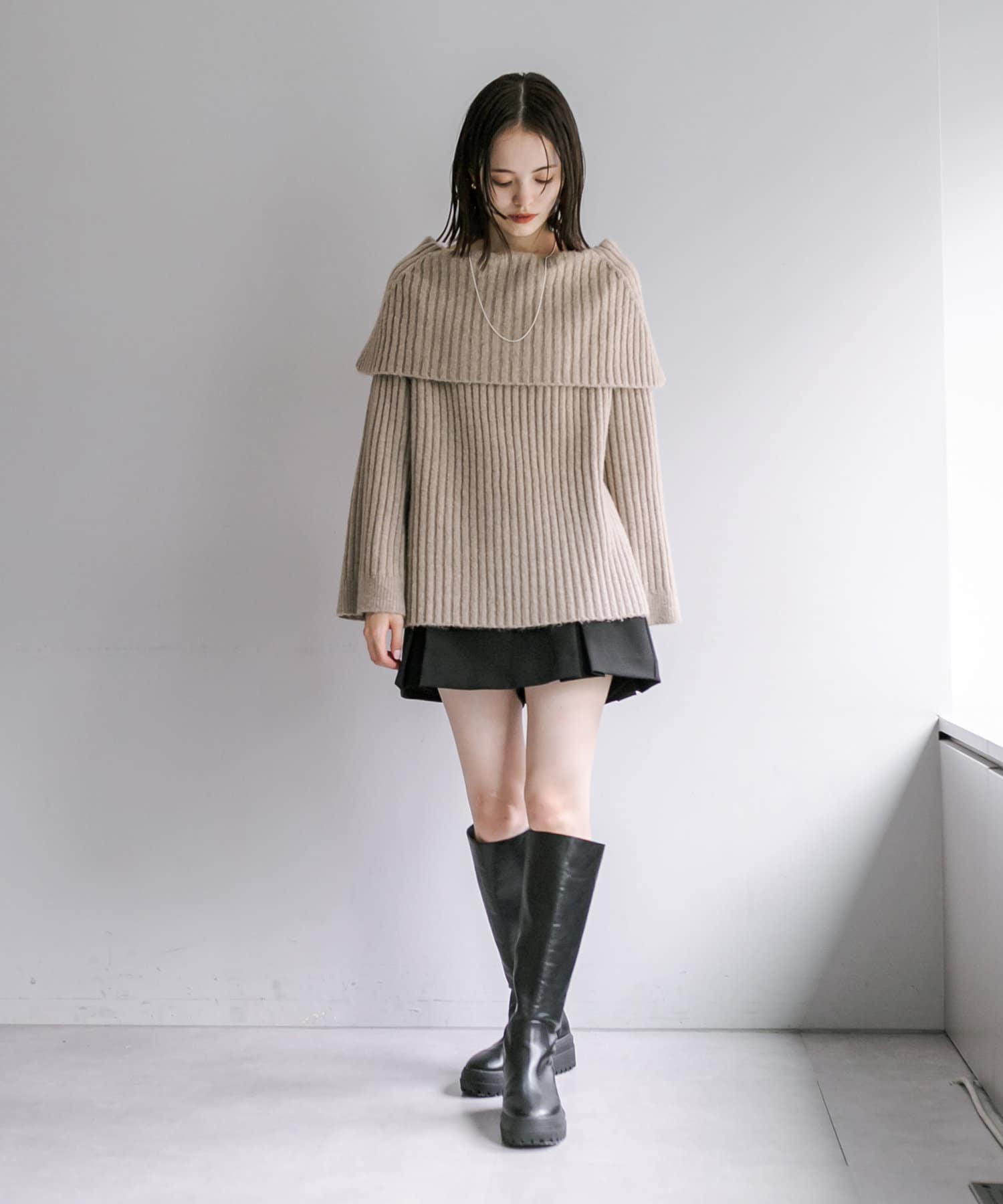 ・ミニ丈とブーツ合わせもガーリーに決まります。