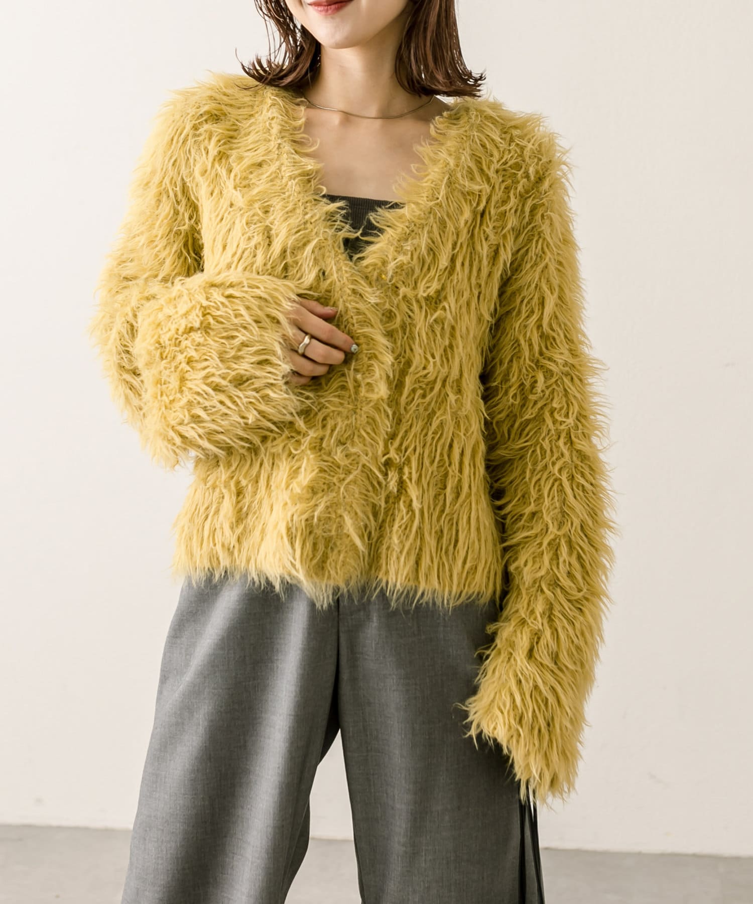 ・華やかな印象に見せてくれるシャギー素材のカーディガン。