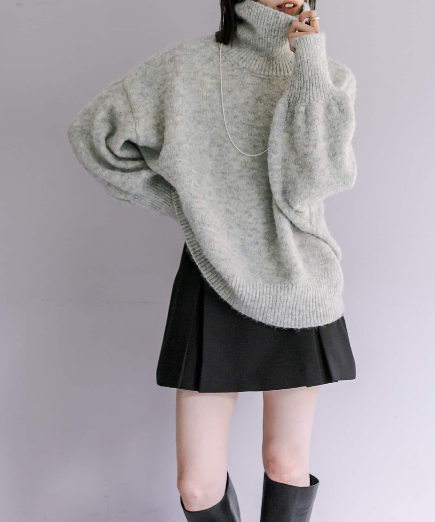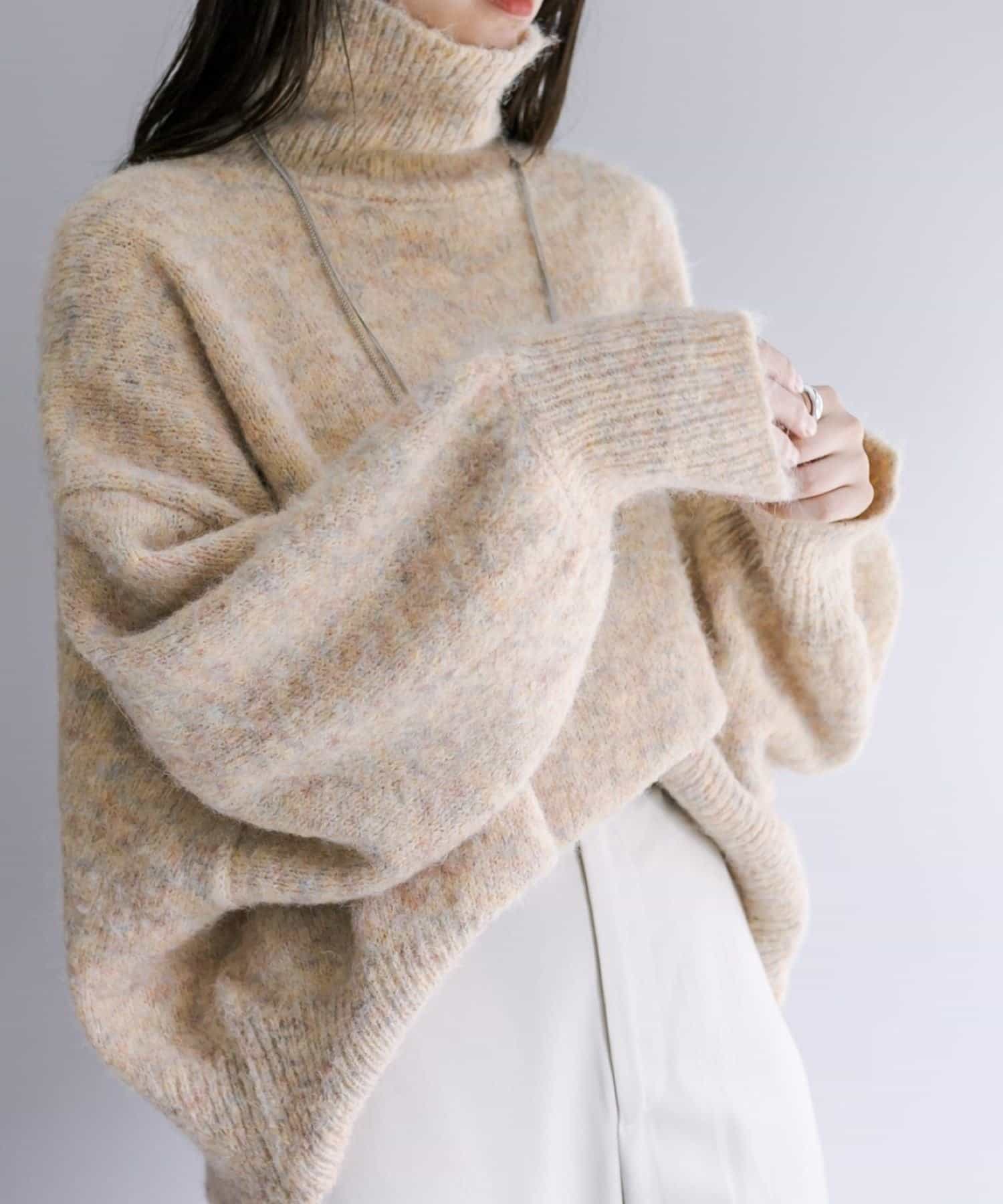 【4色展開】モヘアライクタートルニット