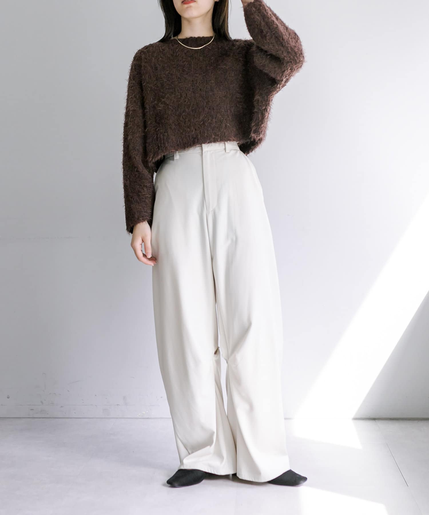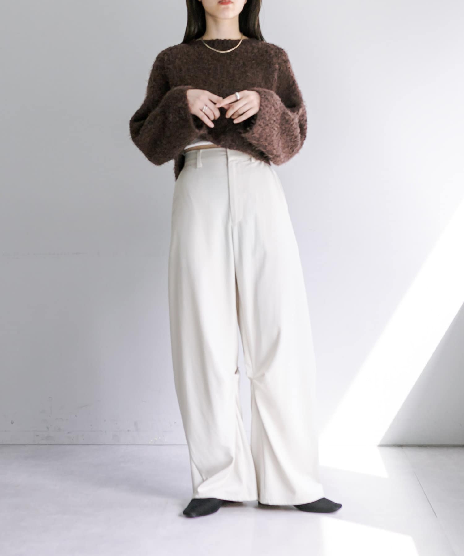触り心地もよく、着ていて気持ちいいのか、ヘビロテしています。ふわっとした感じですが、丈が短いせいかパンツと合わせるとスッキリスタイルアップします。