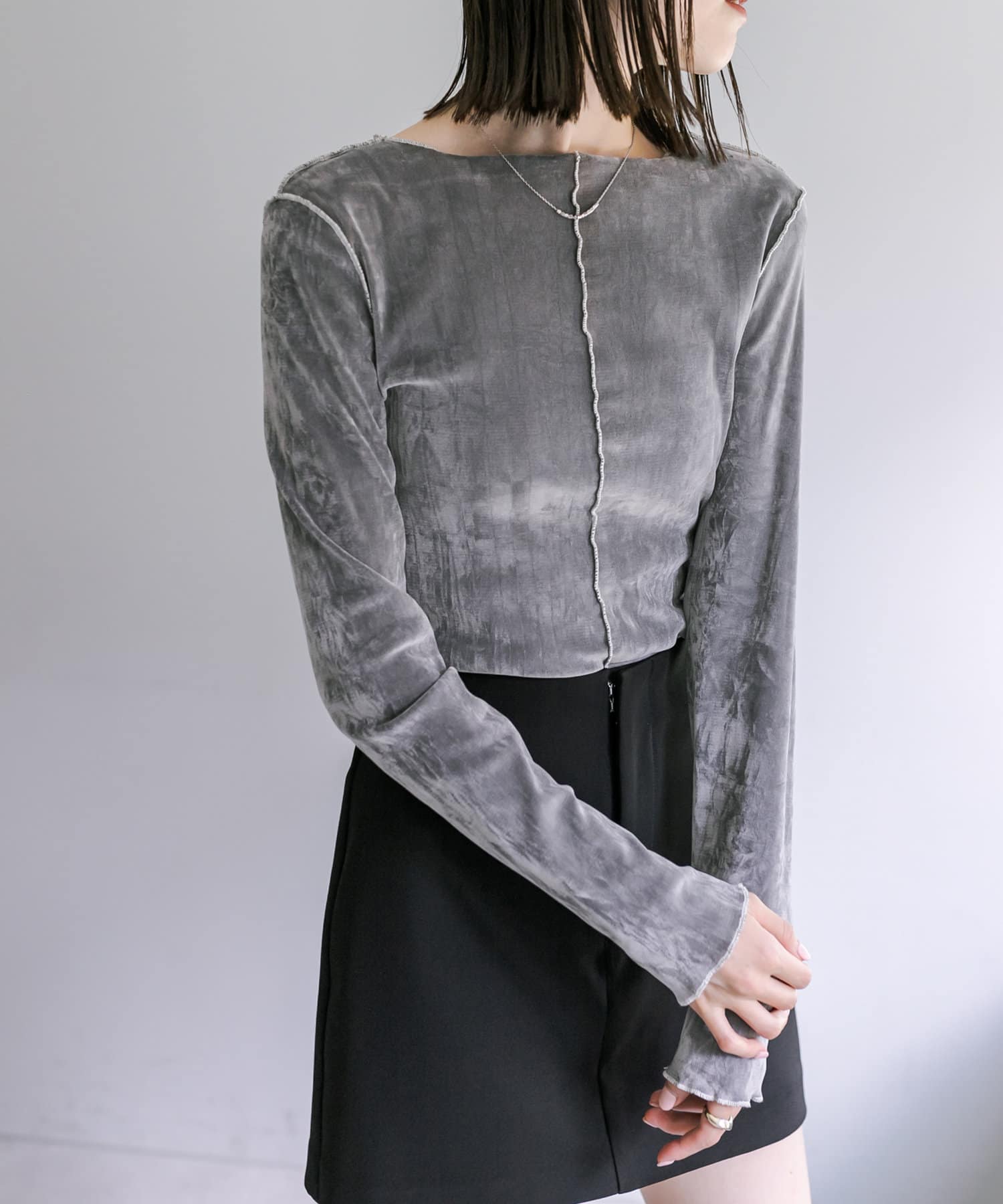ベロア素材で華やかな印象に見せてくれるプルオーバー。