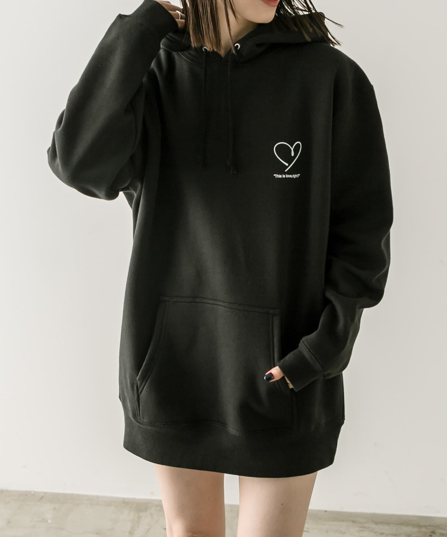 バックプリントはもちろん、フロントのハートがポイントになってて可愛い。