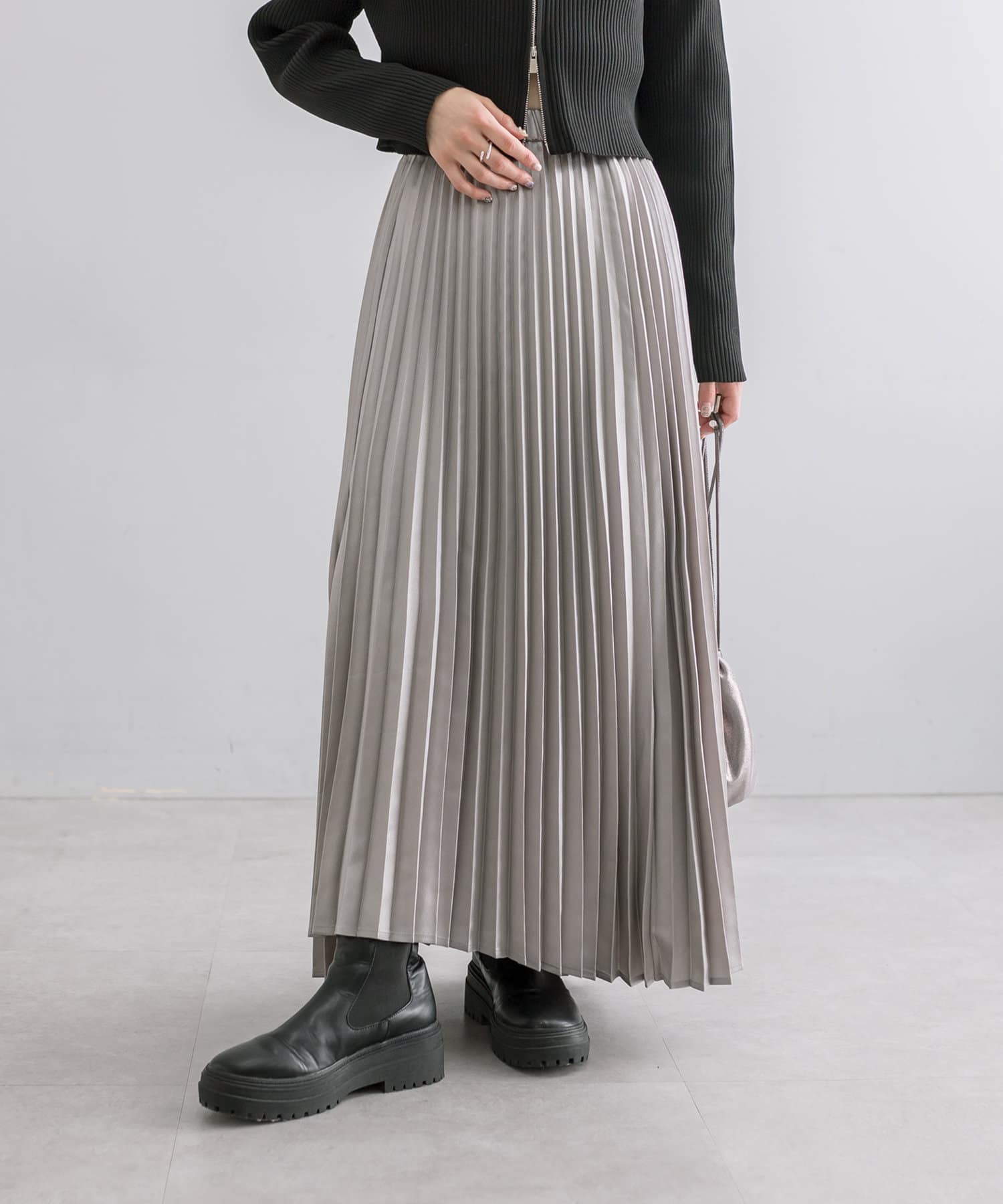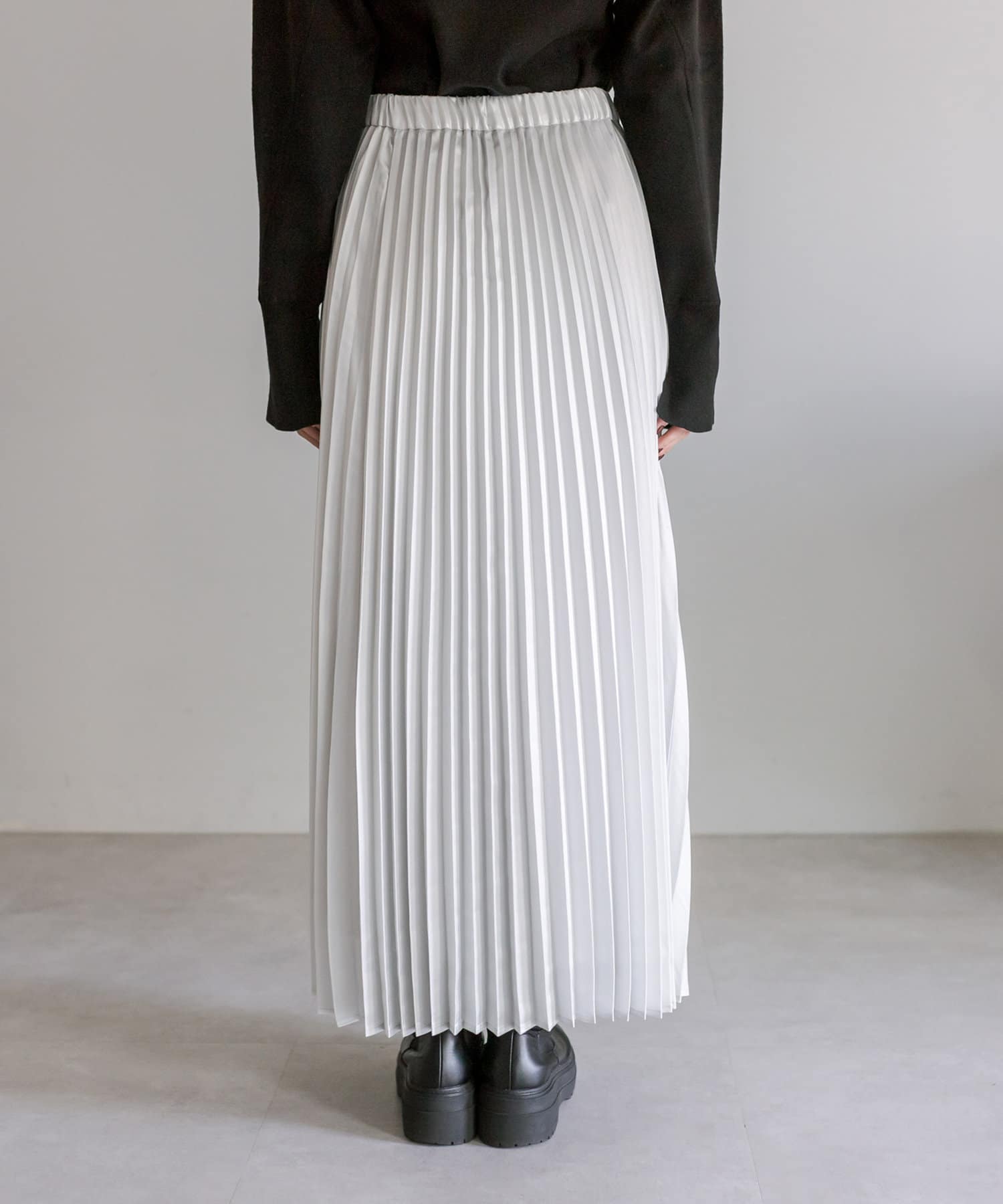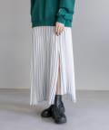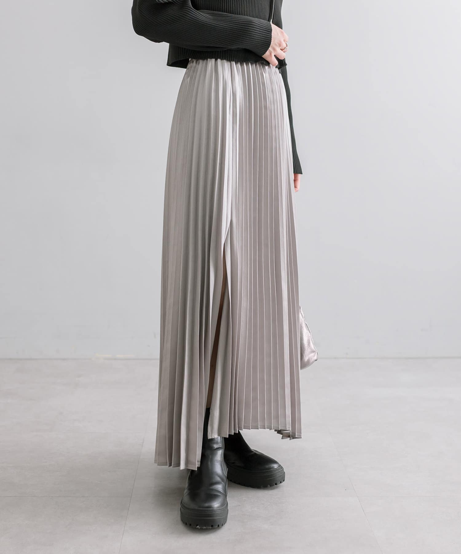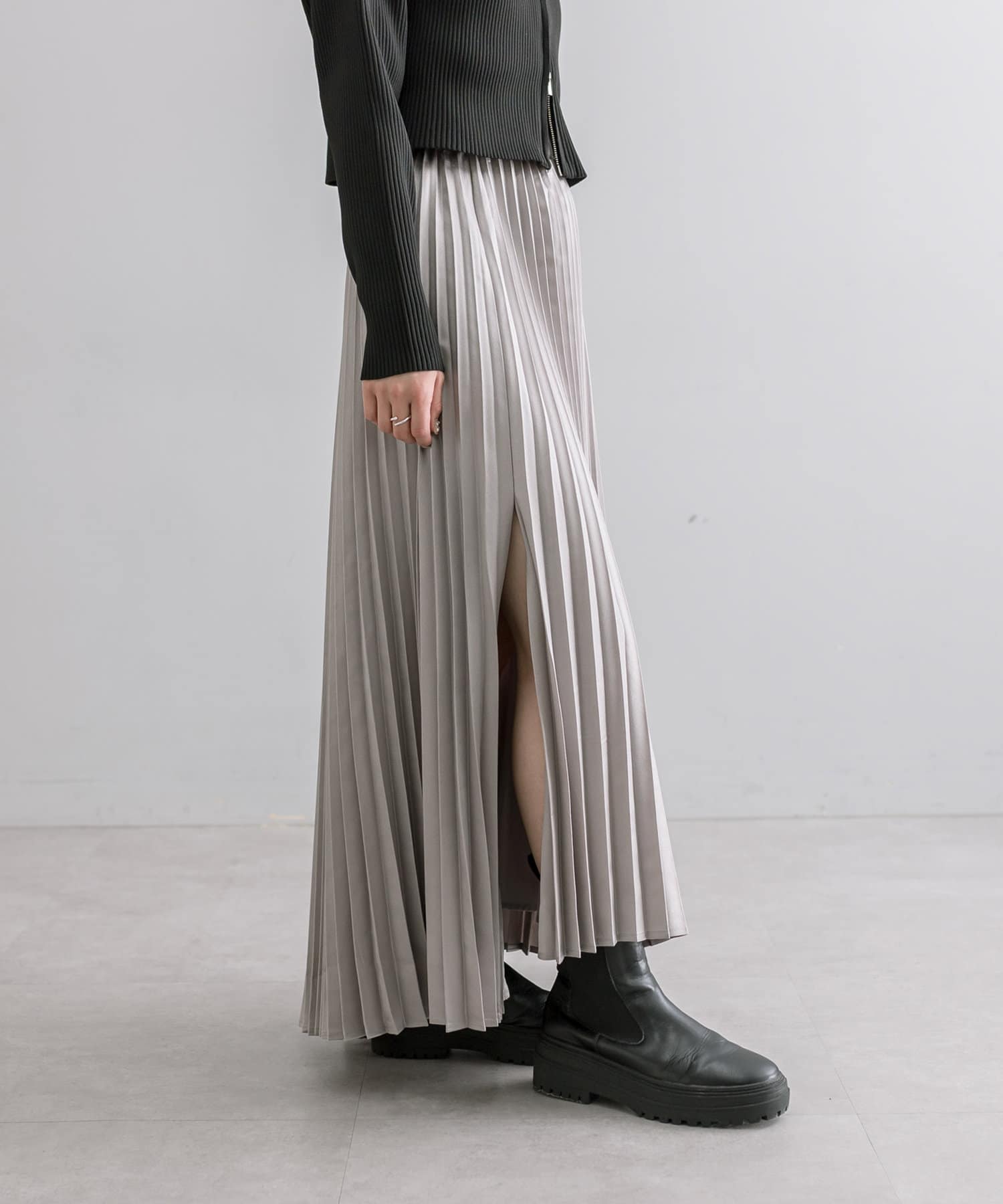 ・細かいプリーツと深めのスリットで歩くたび綺麗に揺れる女性らしい1枚です。
