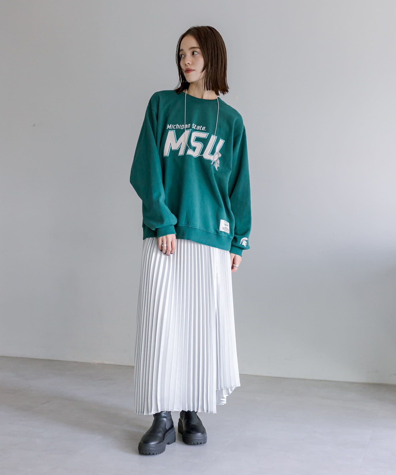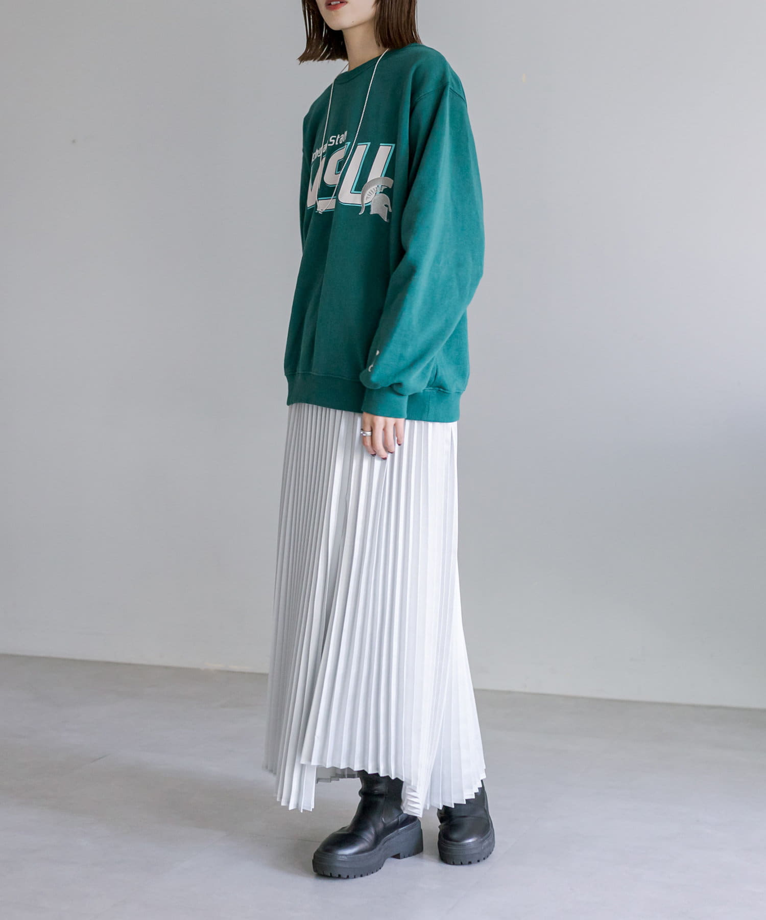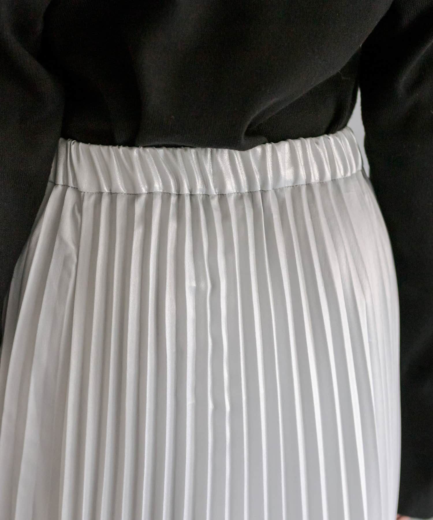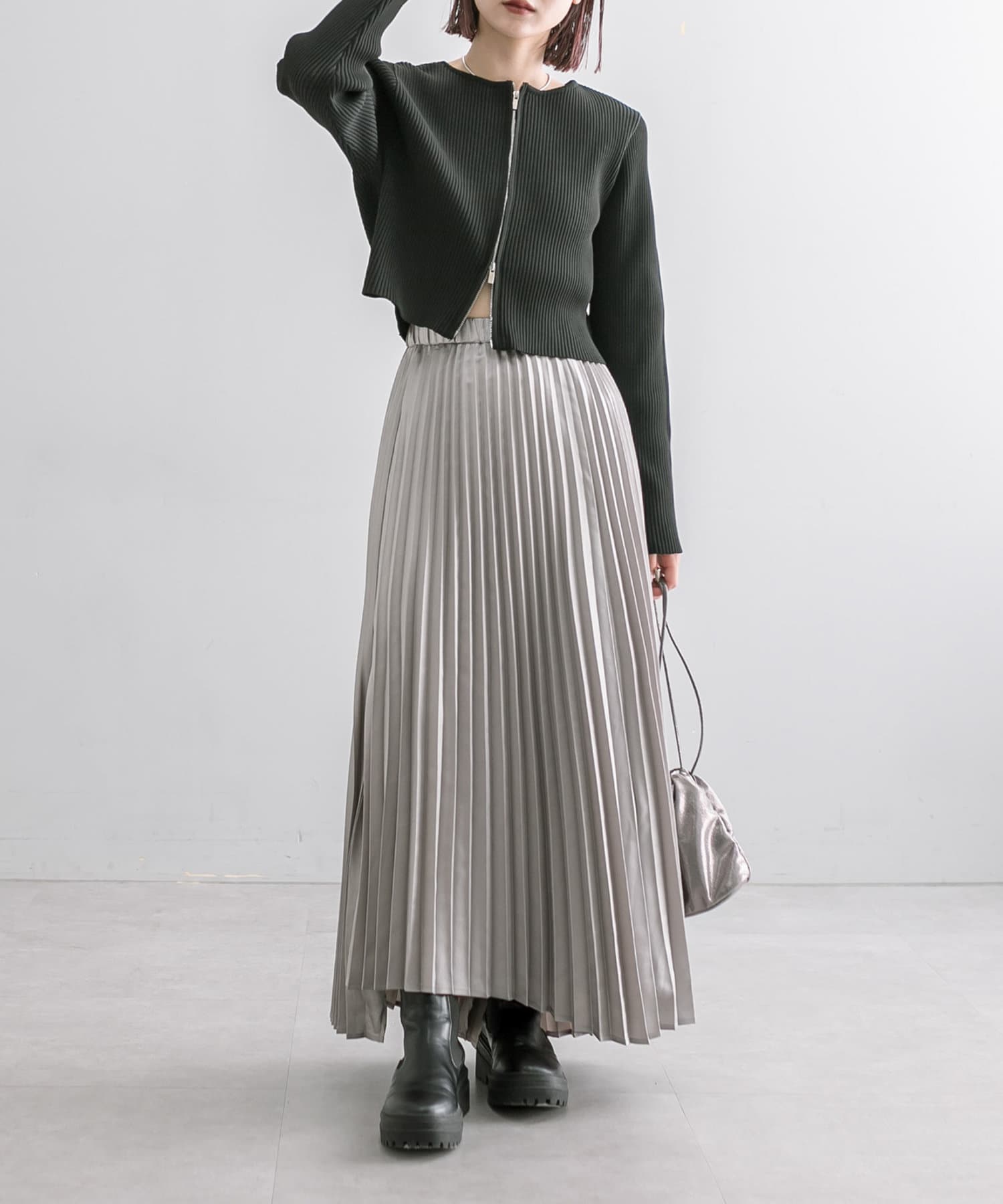 ・細かいプリーツと深めのスリットで歩くたび綺麗に揺れる女性らしい1枚です。