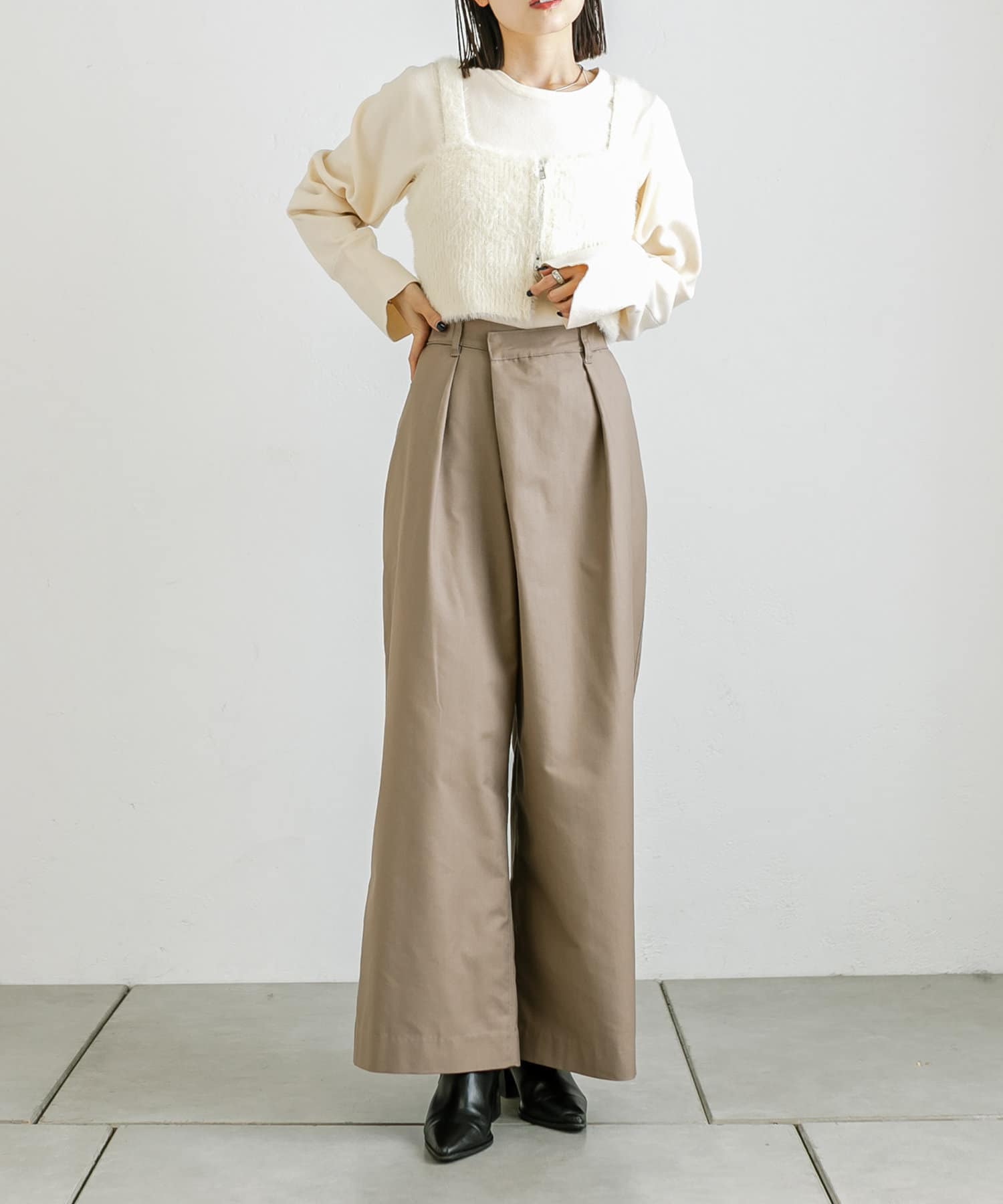 ・綺麗めなトップスや合わせでバランスの取れたスタイリングに。