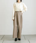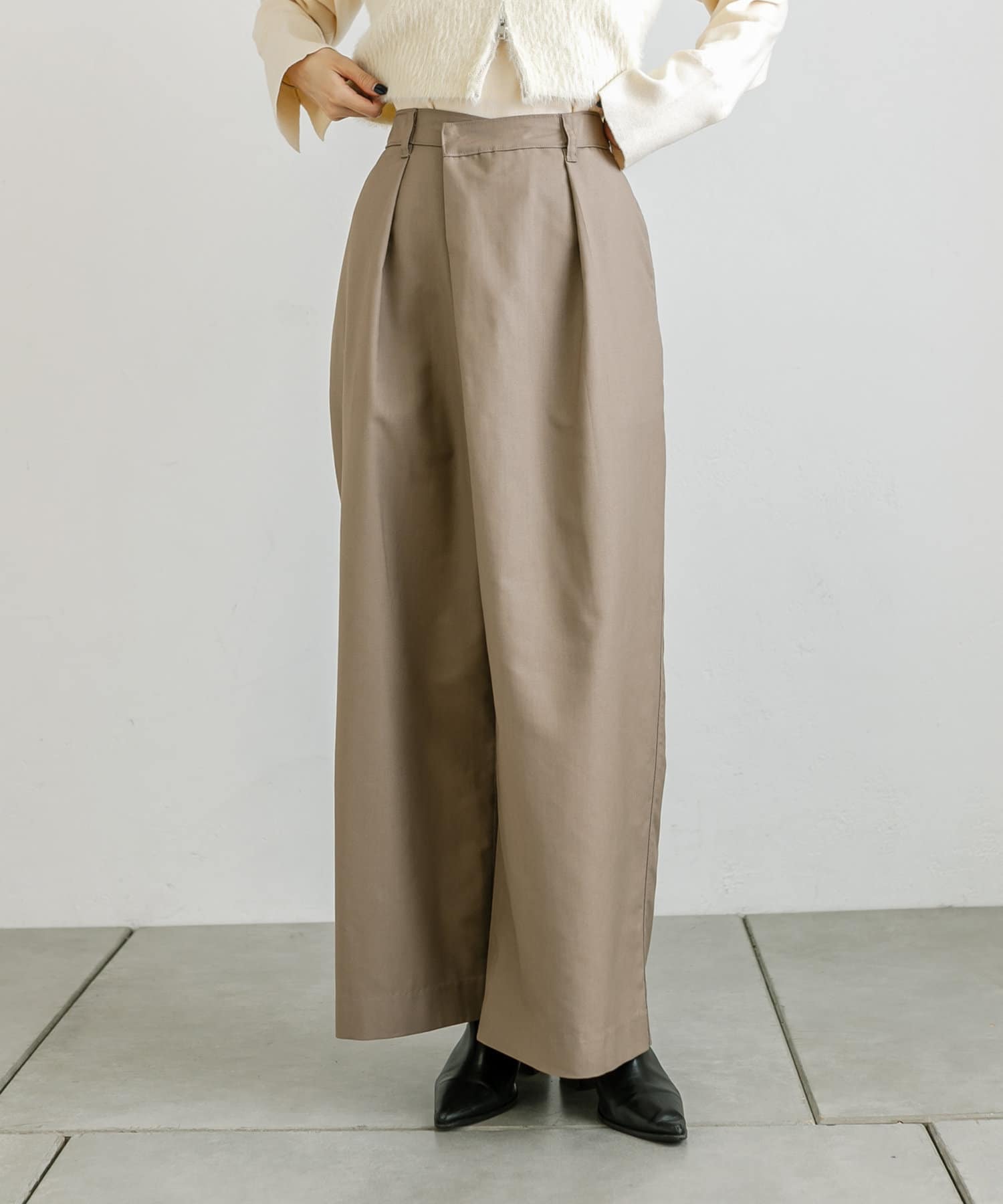 ・前身頃が重なったデザインが目を惹くスラックス。