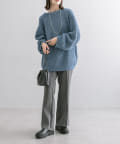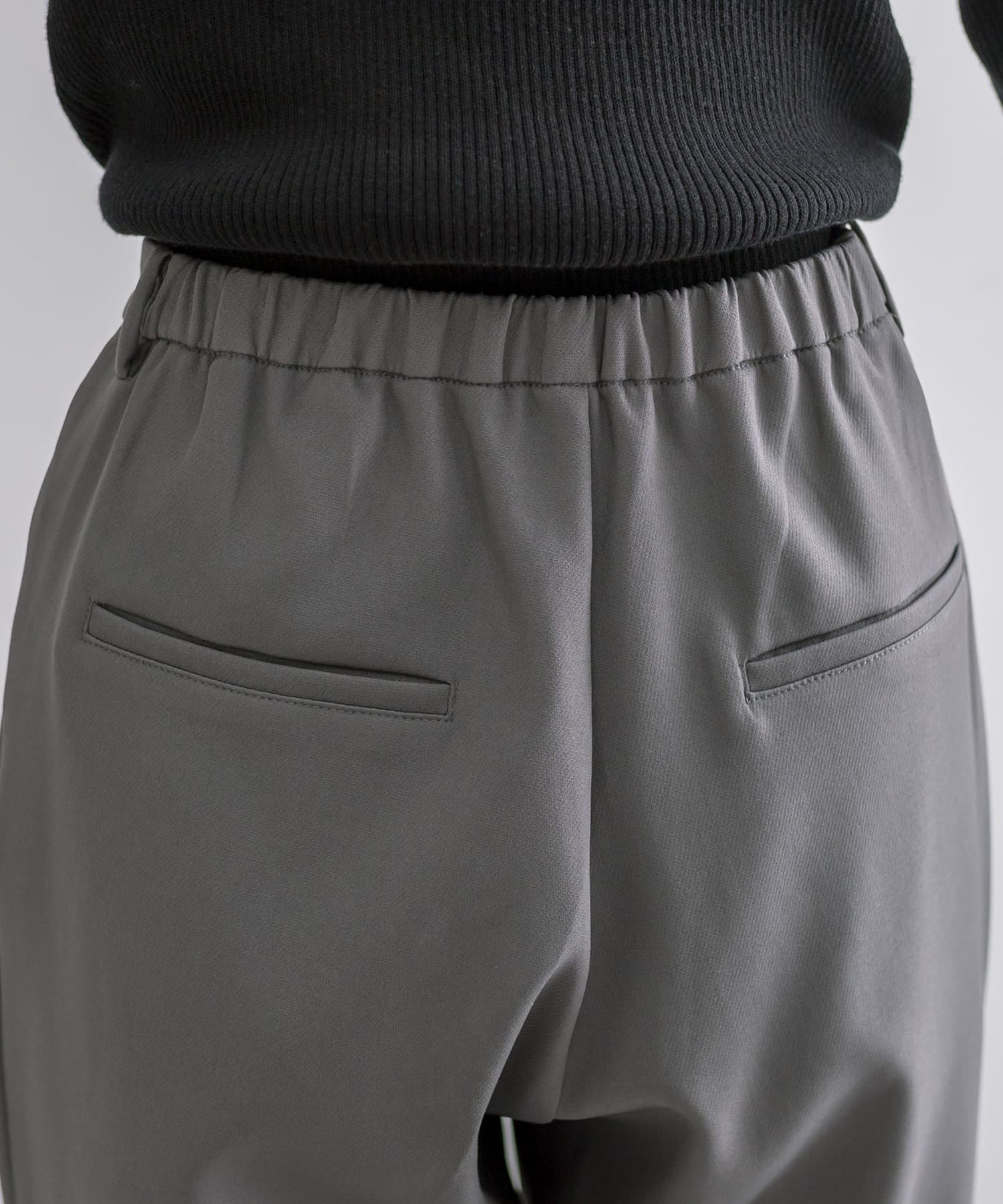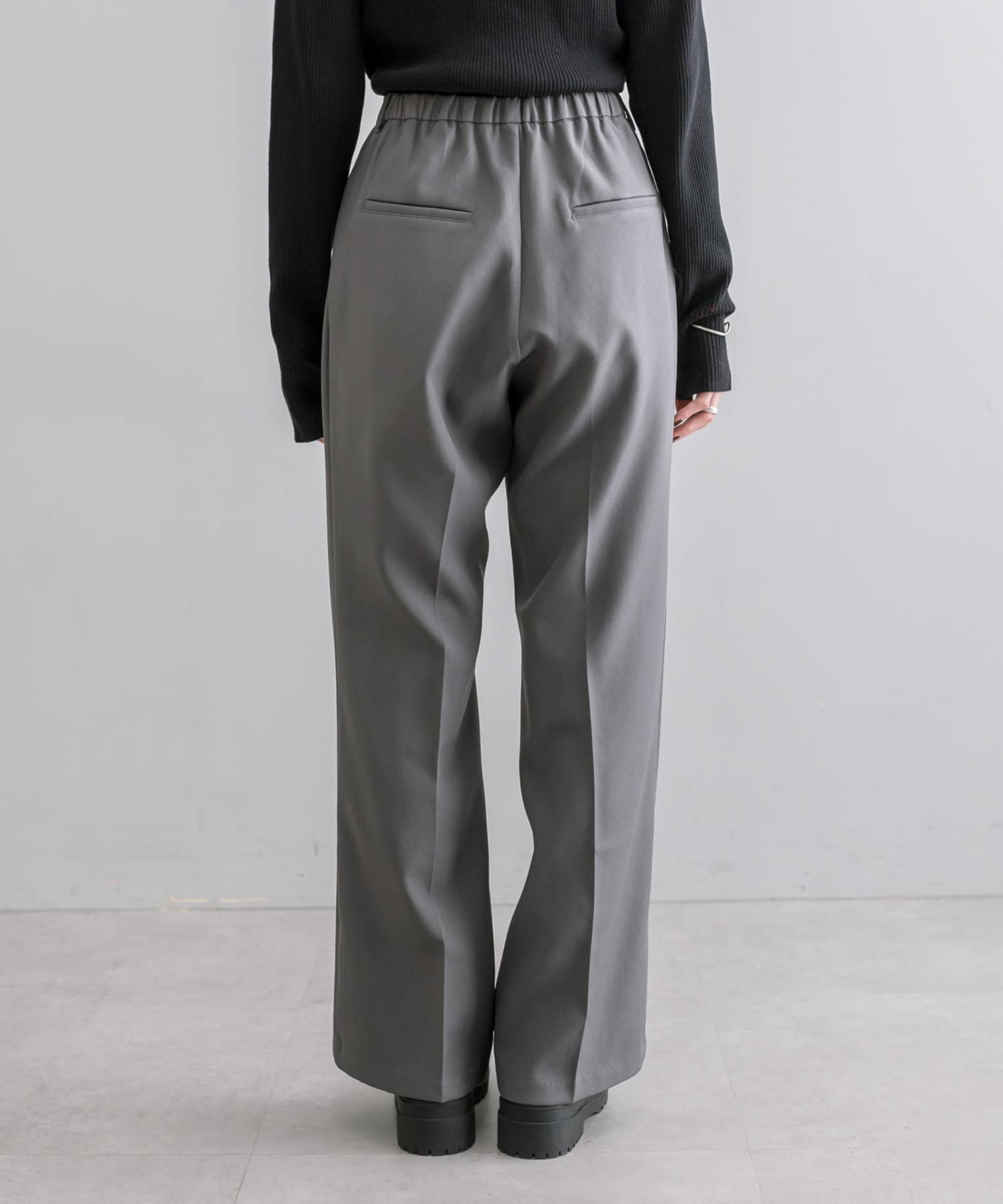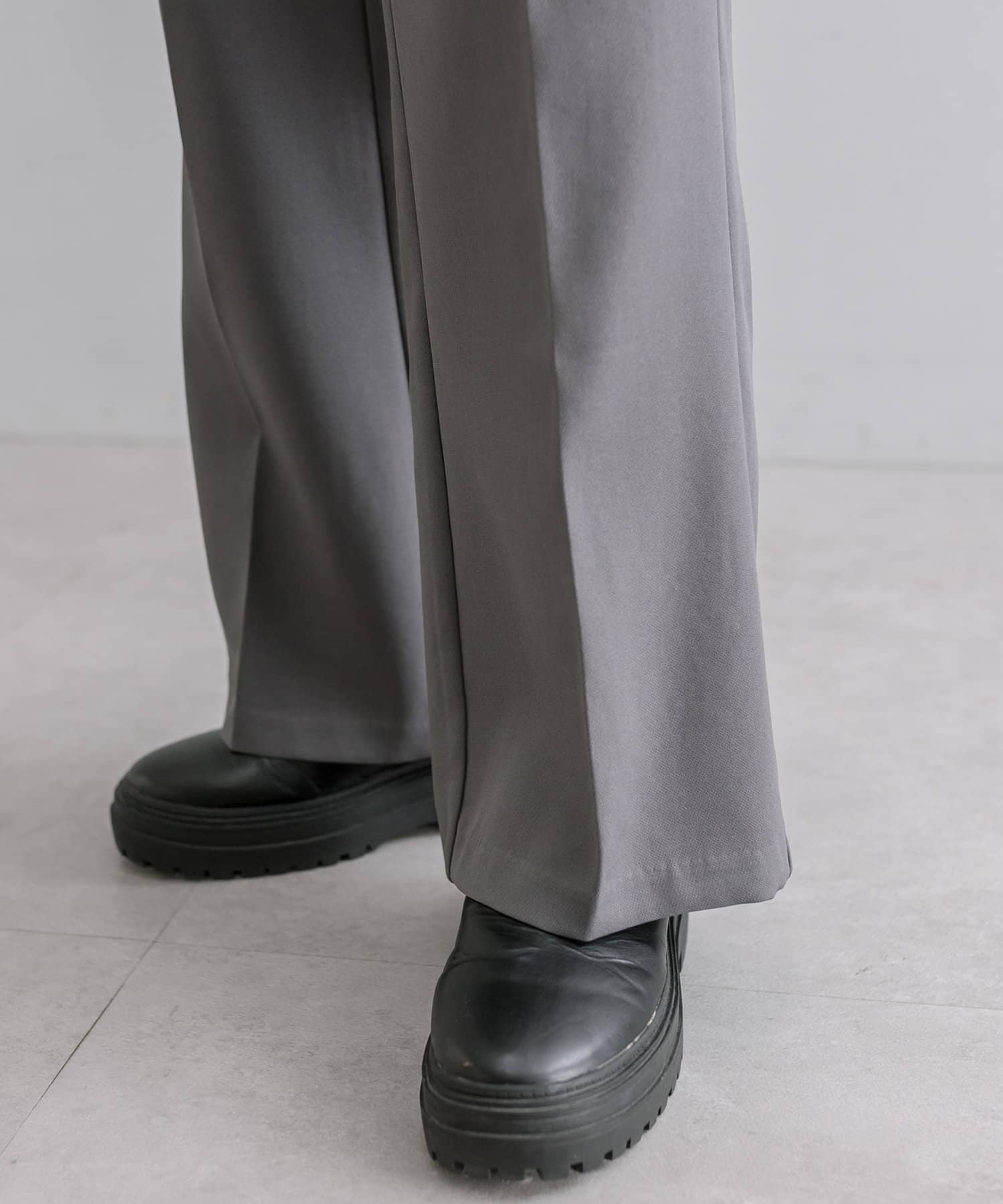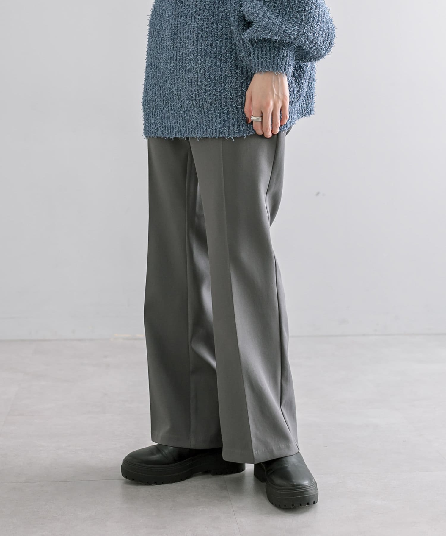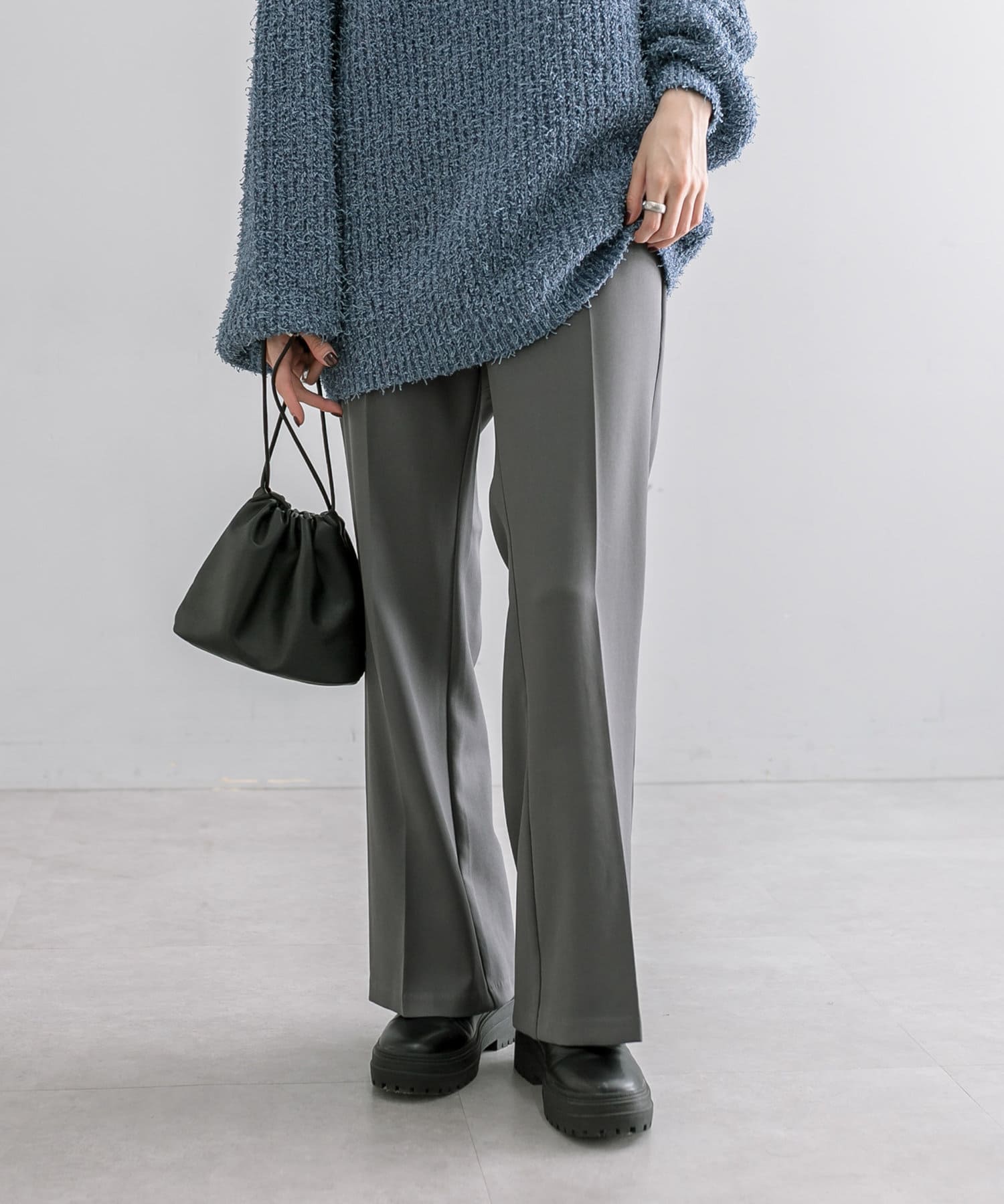 ・センタープレスライン×フレアシルエットがより美脚効果を発揮するスラックスパンツ。