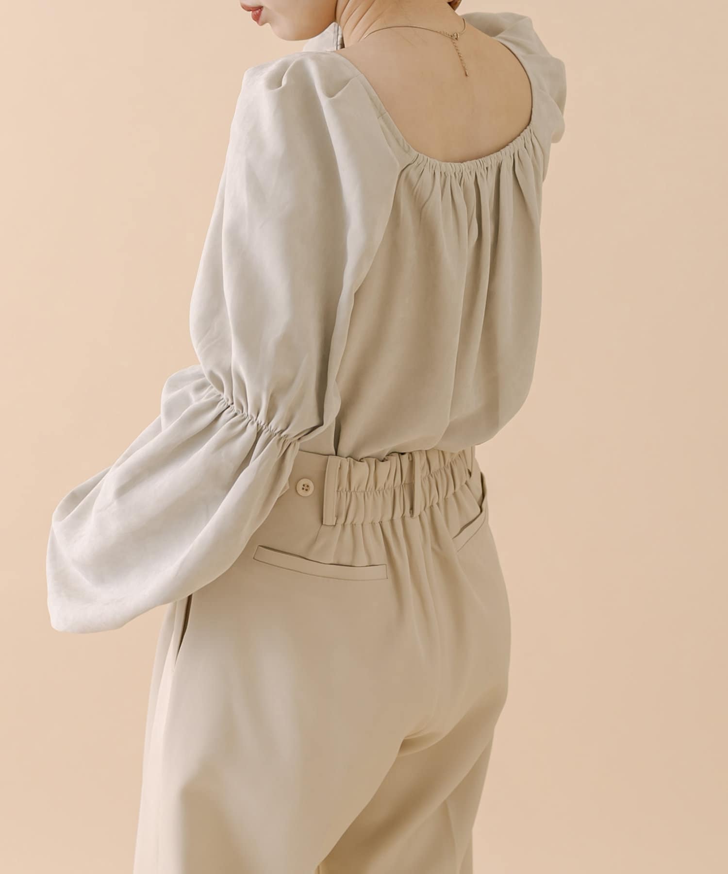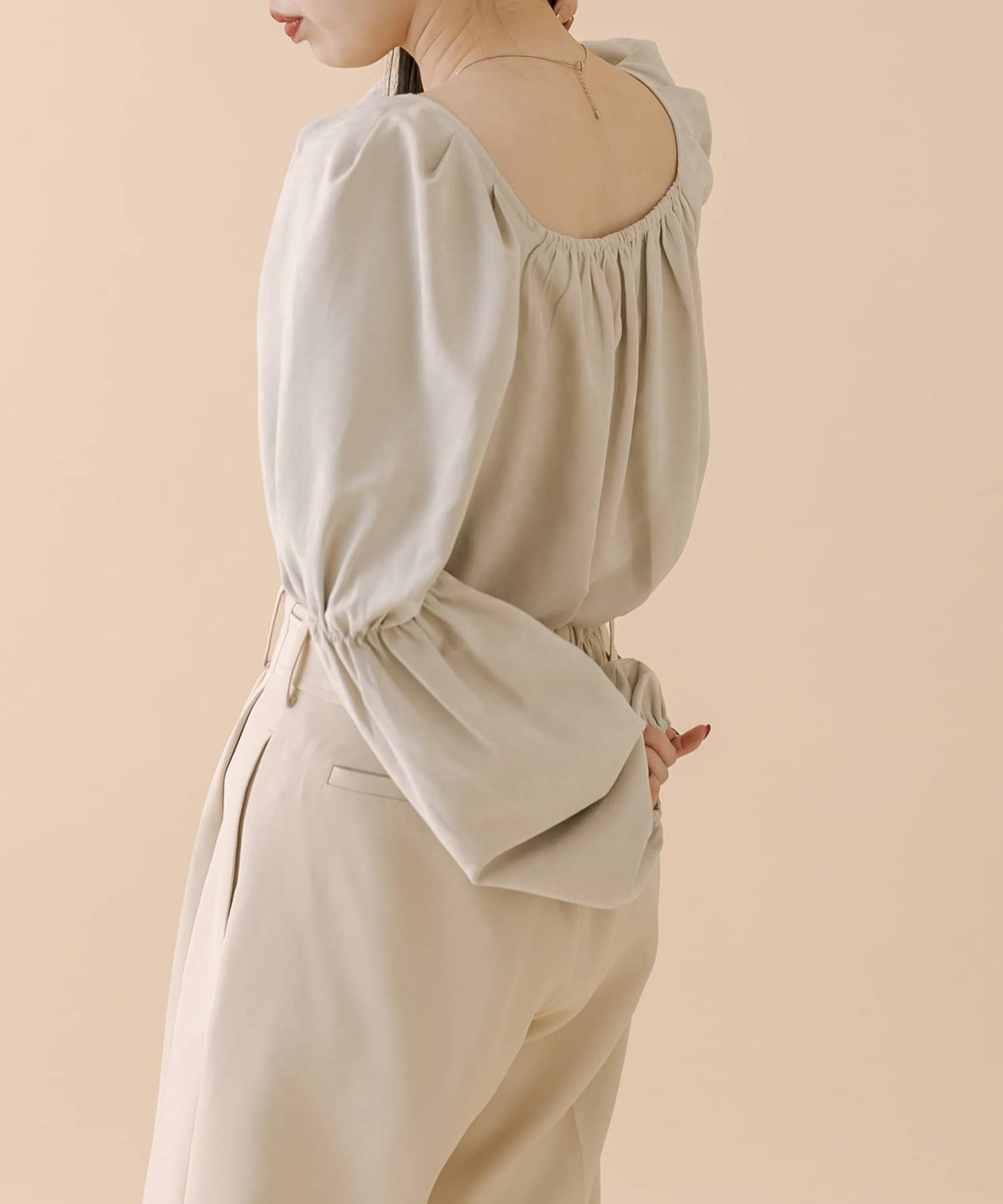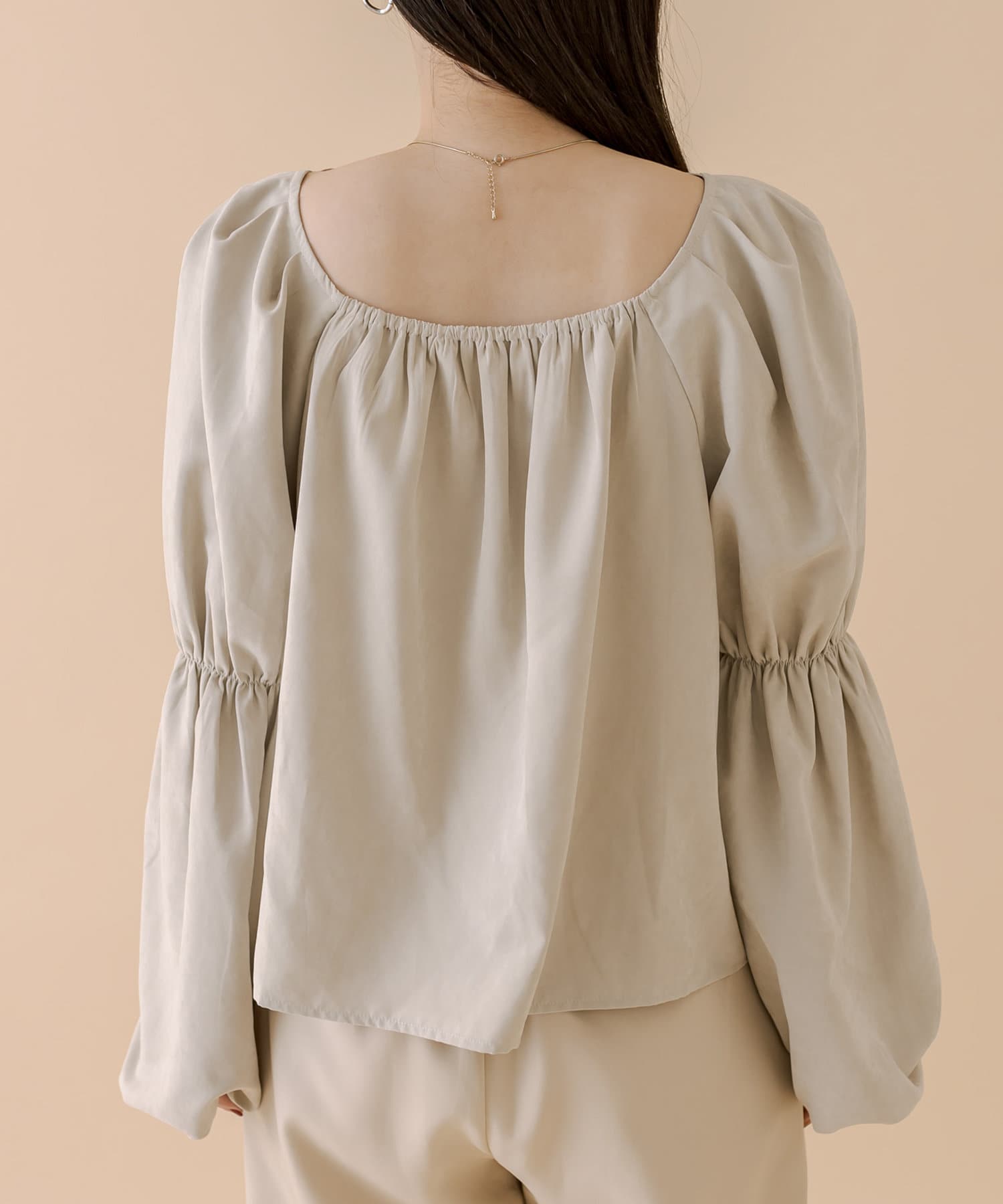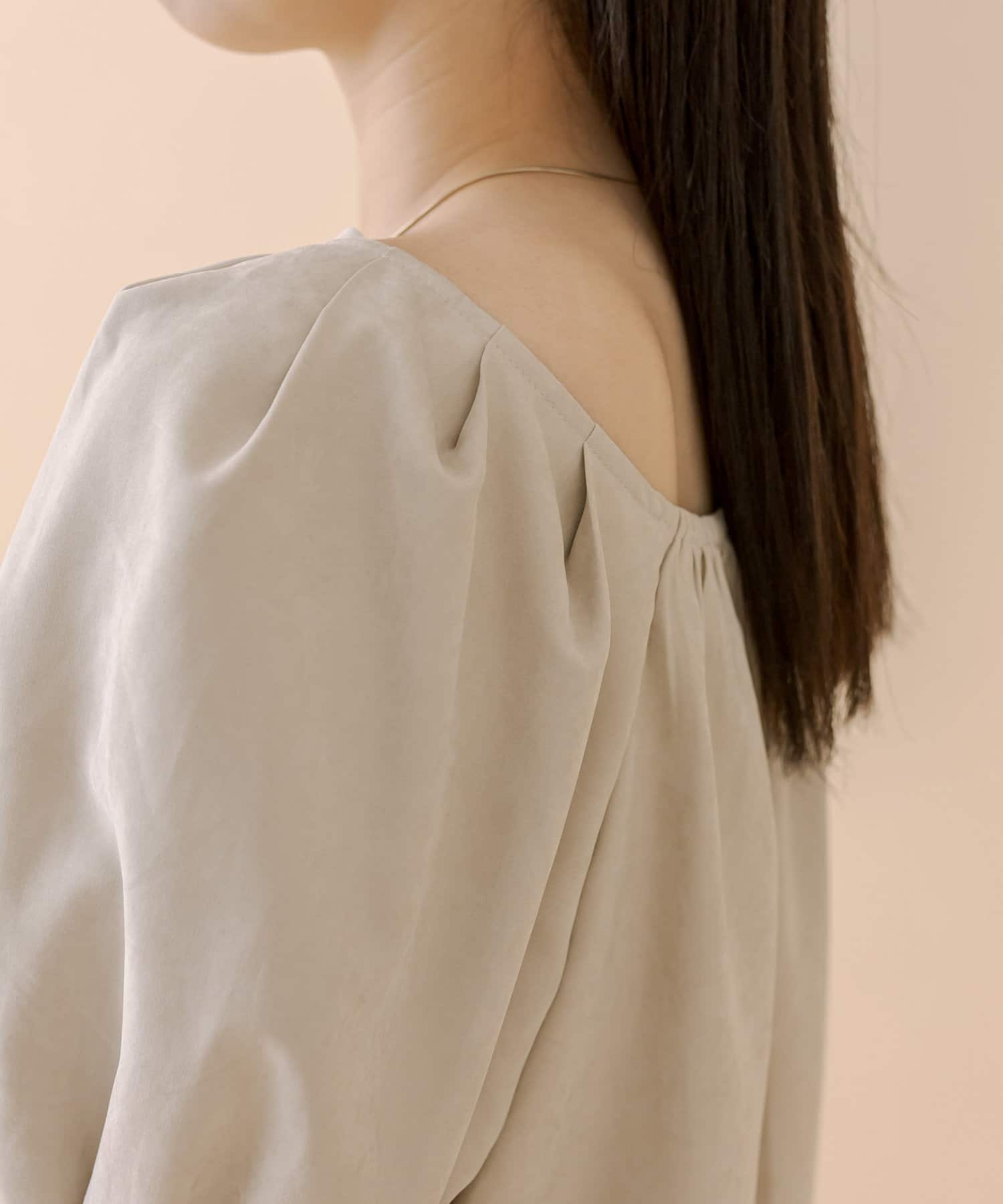 ・胸元のギャザーや袖の切り替えが華やかな雰囲気に見せてくれる一枚。