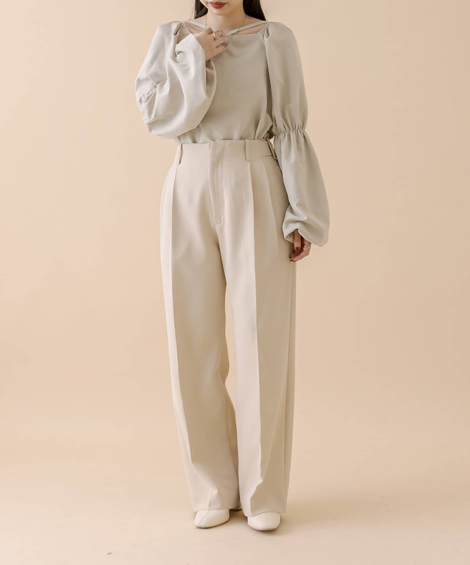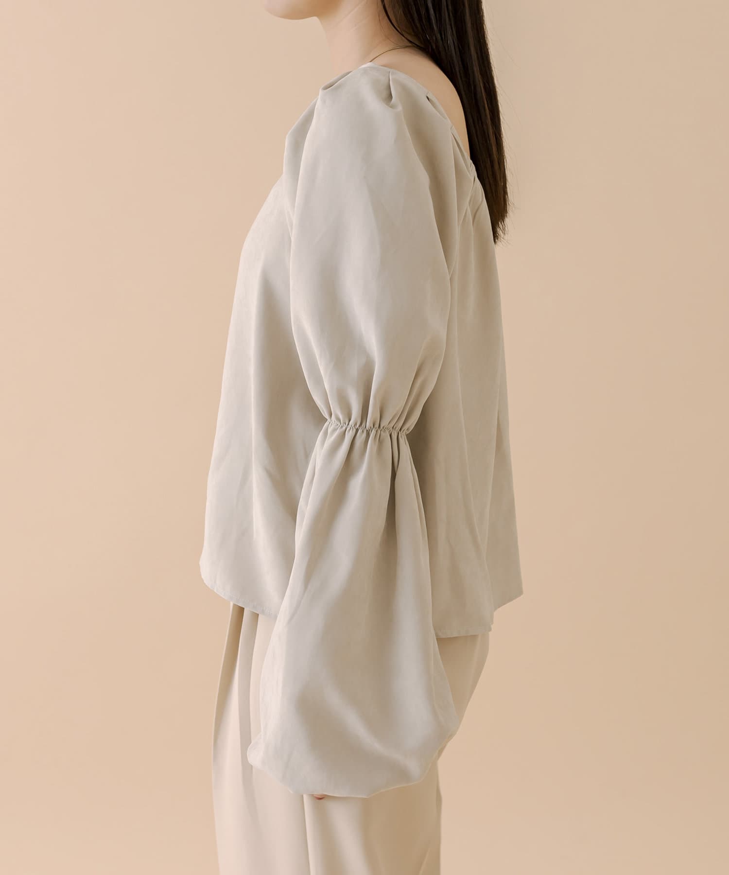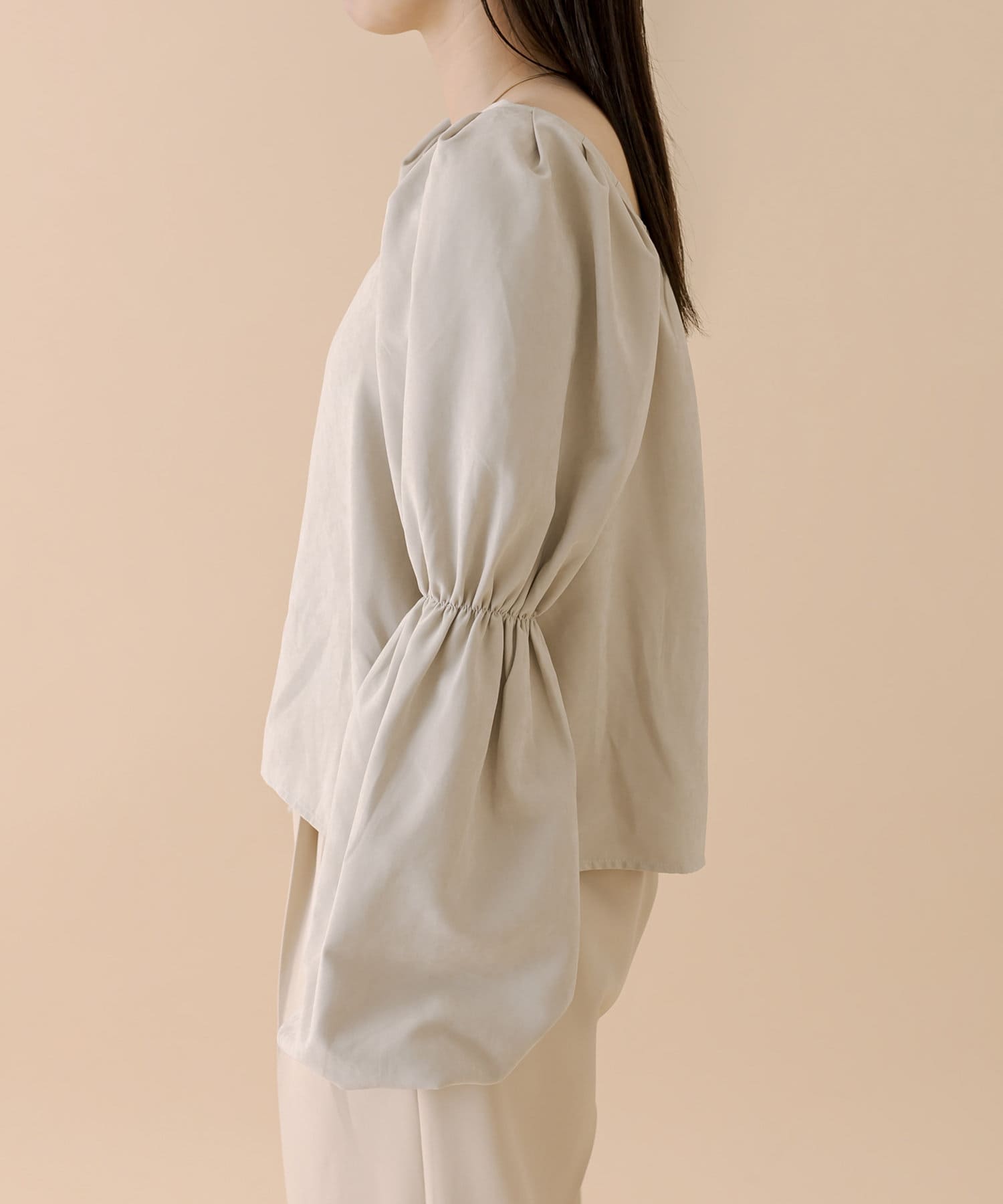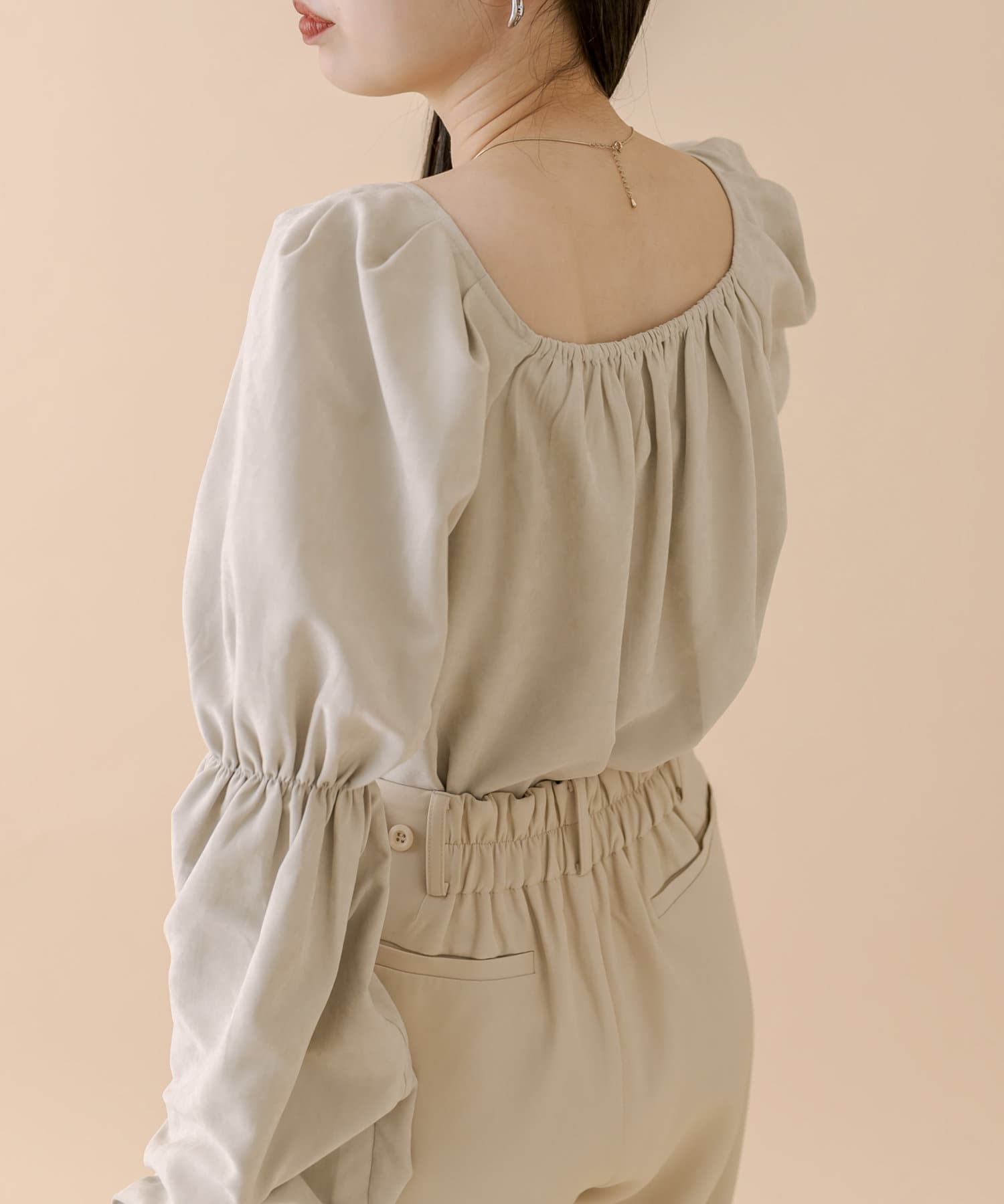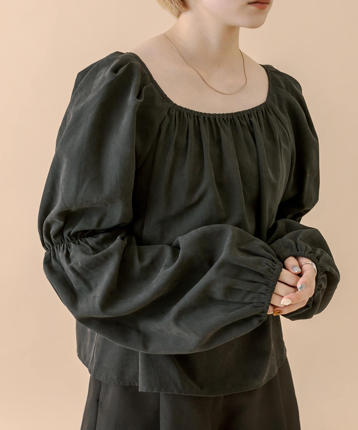 ・胸元のギャザーや袖の切り替えが華やかな雰囲気に見せてくれる一枚。