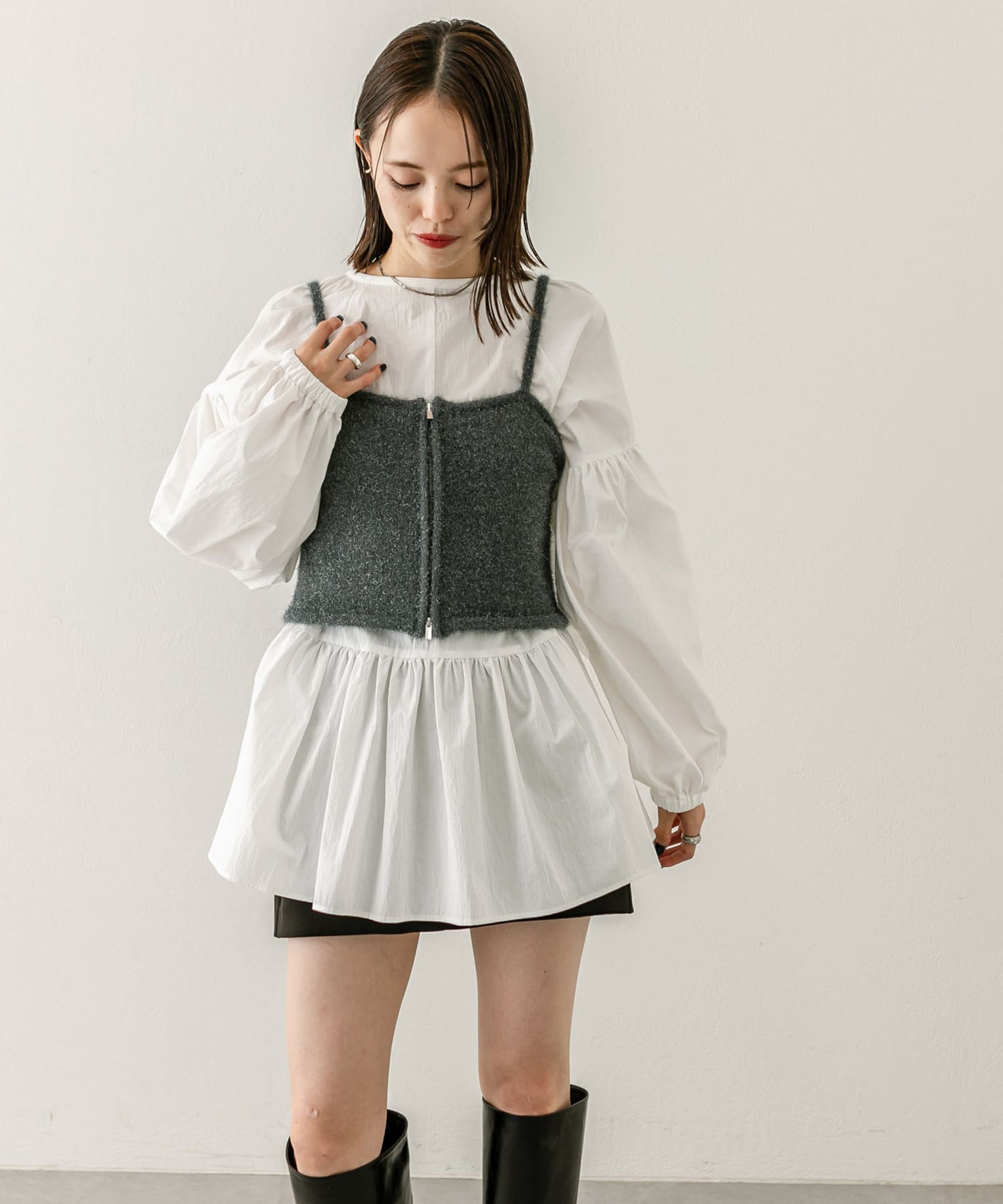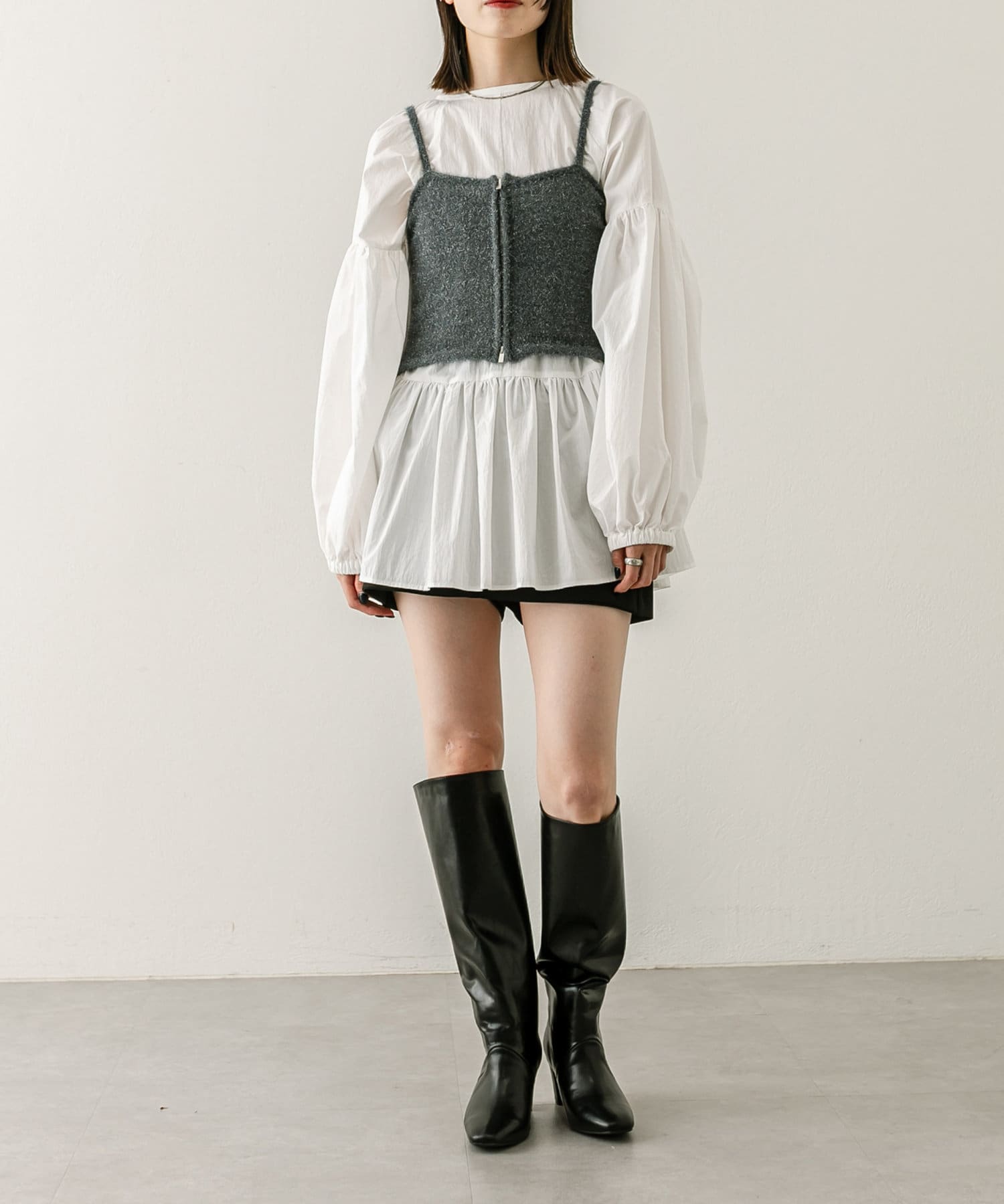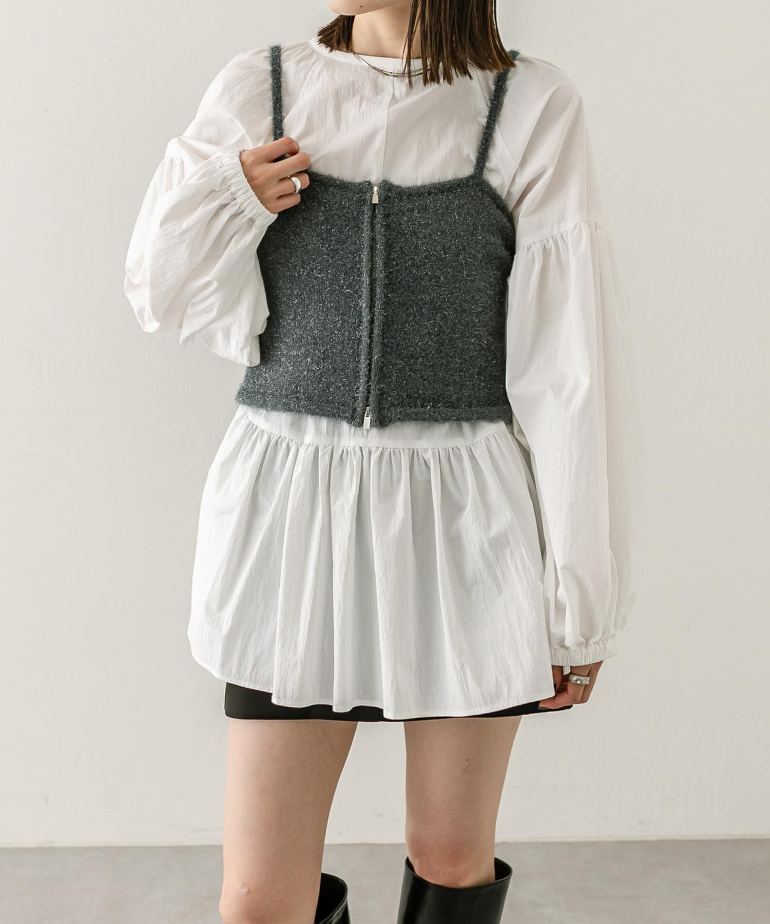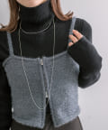 ・シンプルなトップスに重ねて印象チェンジさせて着ていただくのがおすすめ。
