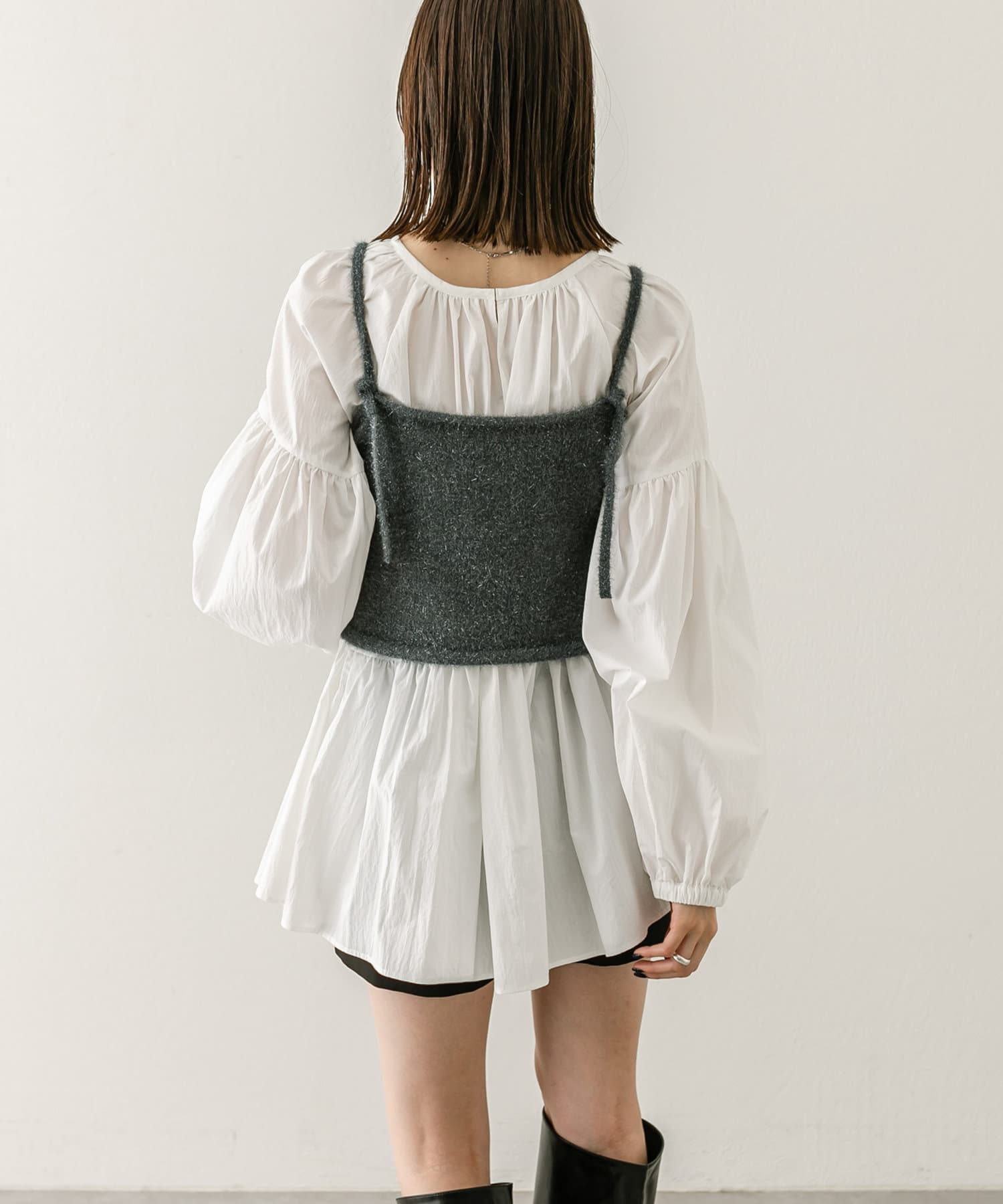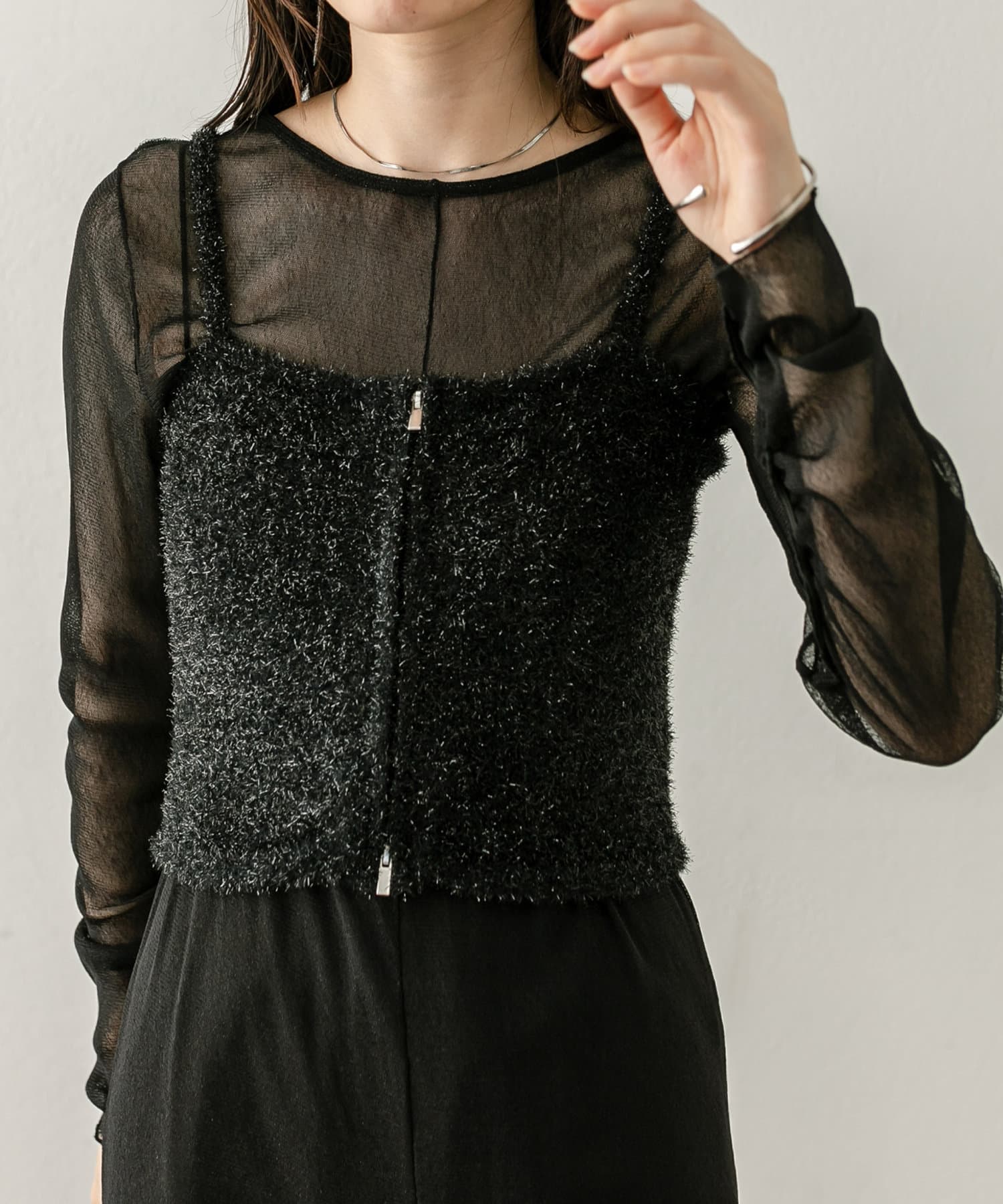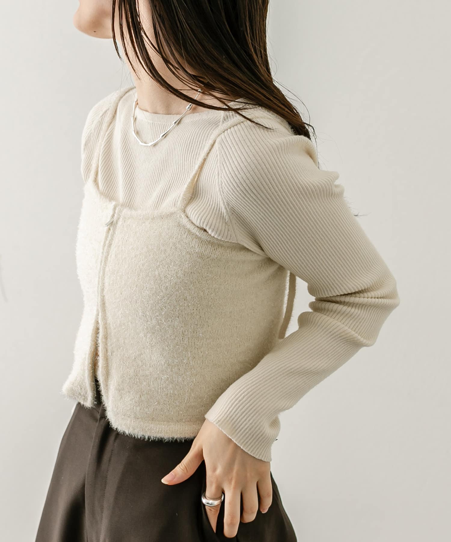 ・シンプルなトップスに重ねて印象チェンジさせて着ていただくのがおすすめ。