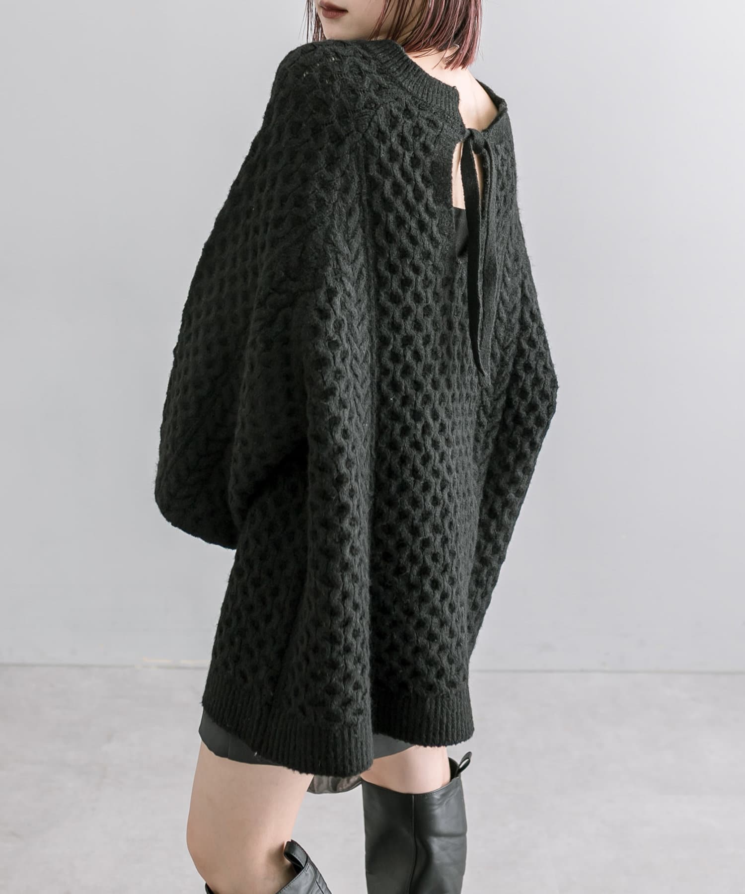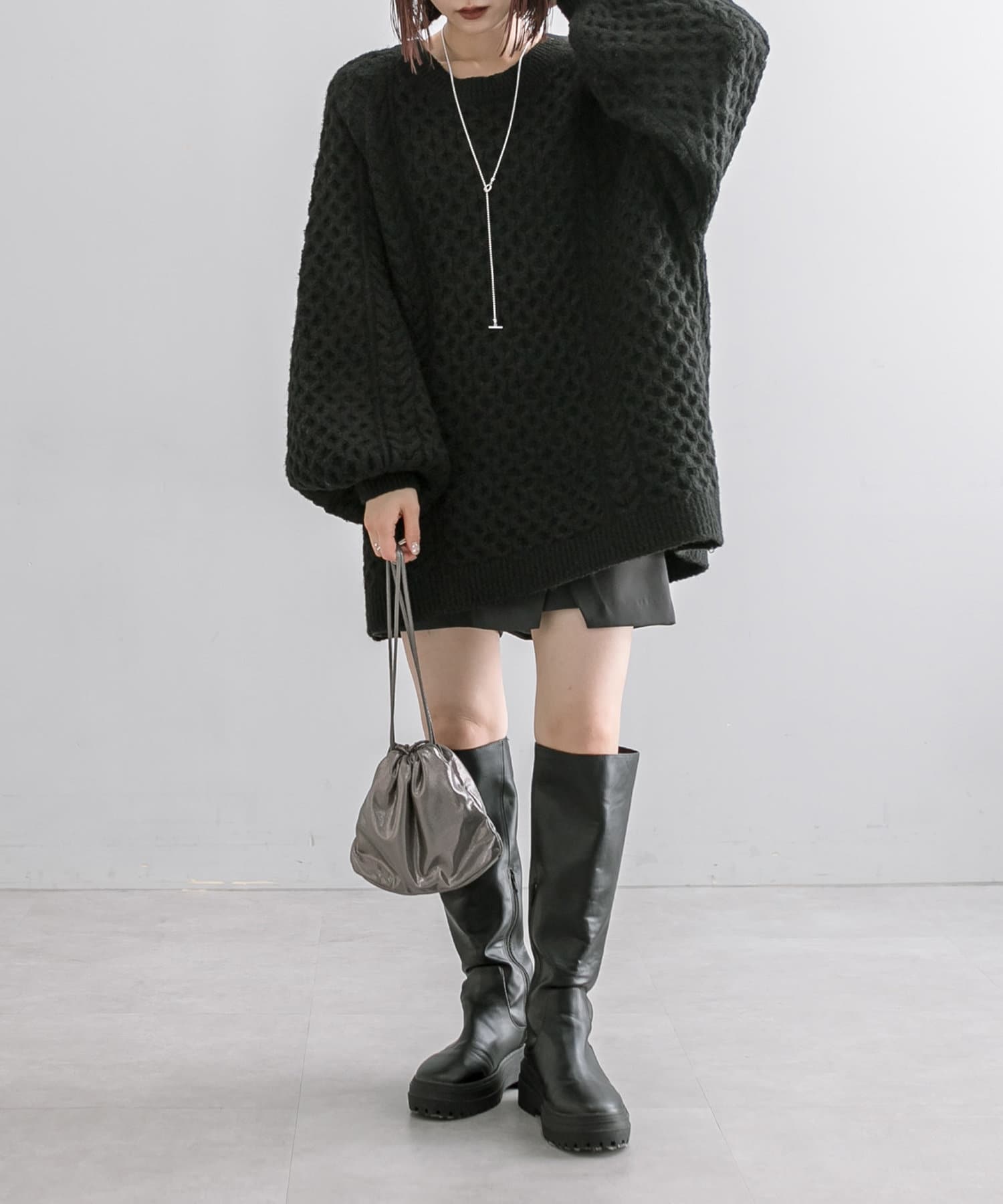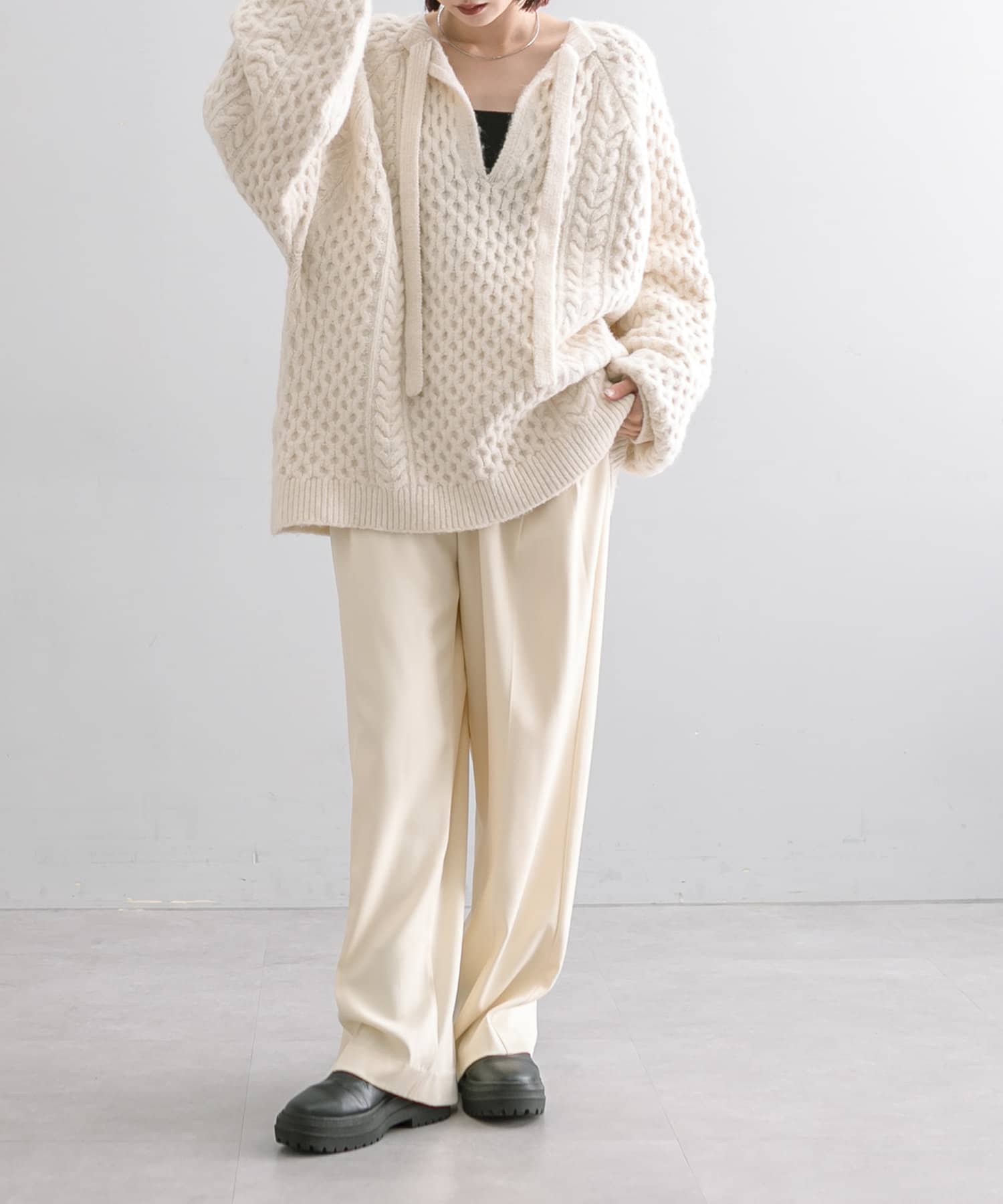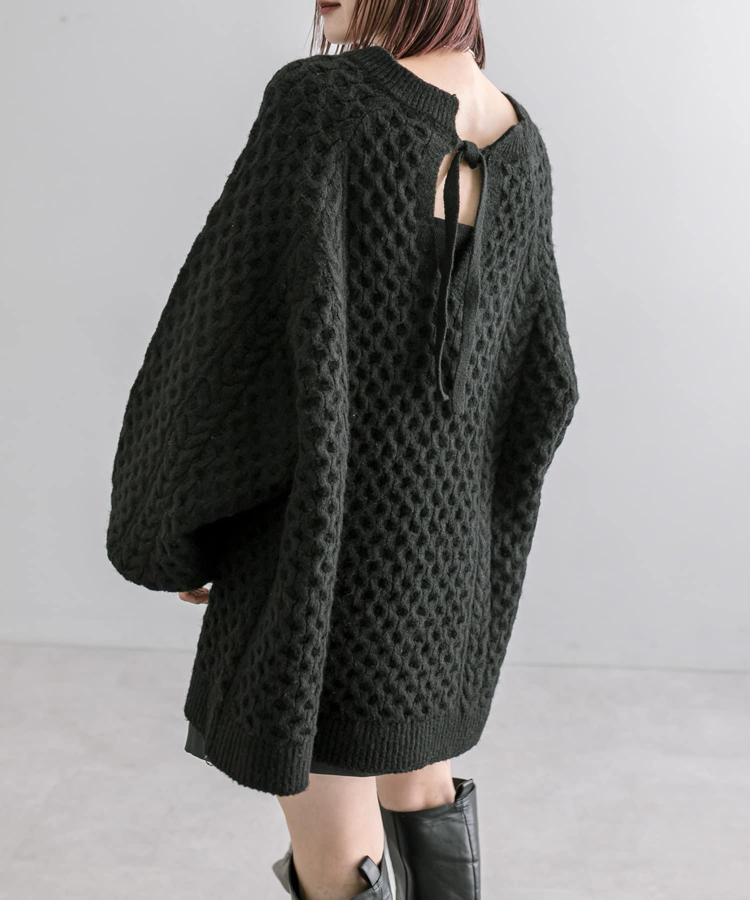 ゆったりとしたルーズなサイズ感がかわいい前後両前の2WAYスキッパーニット