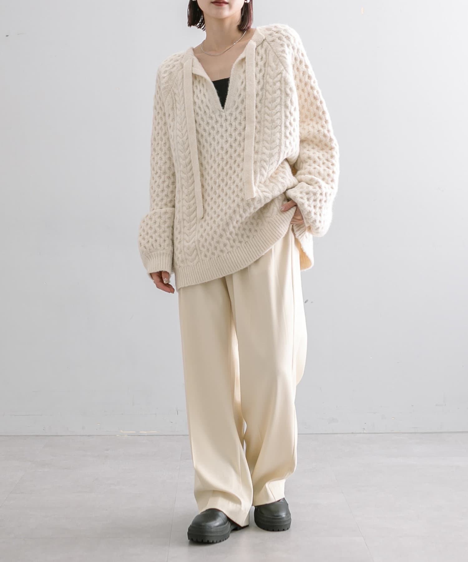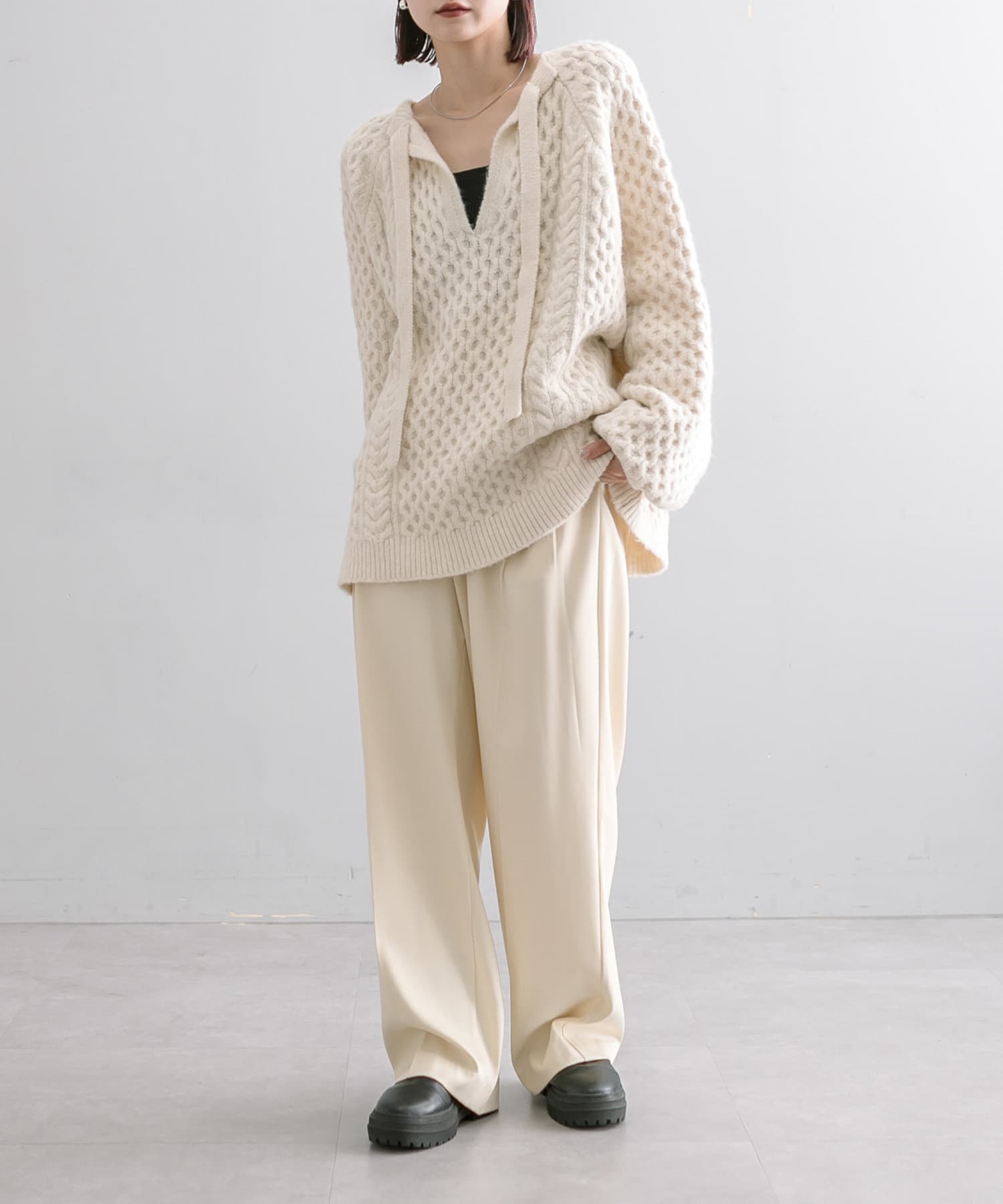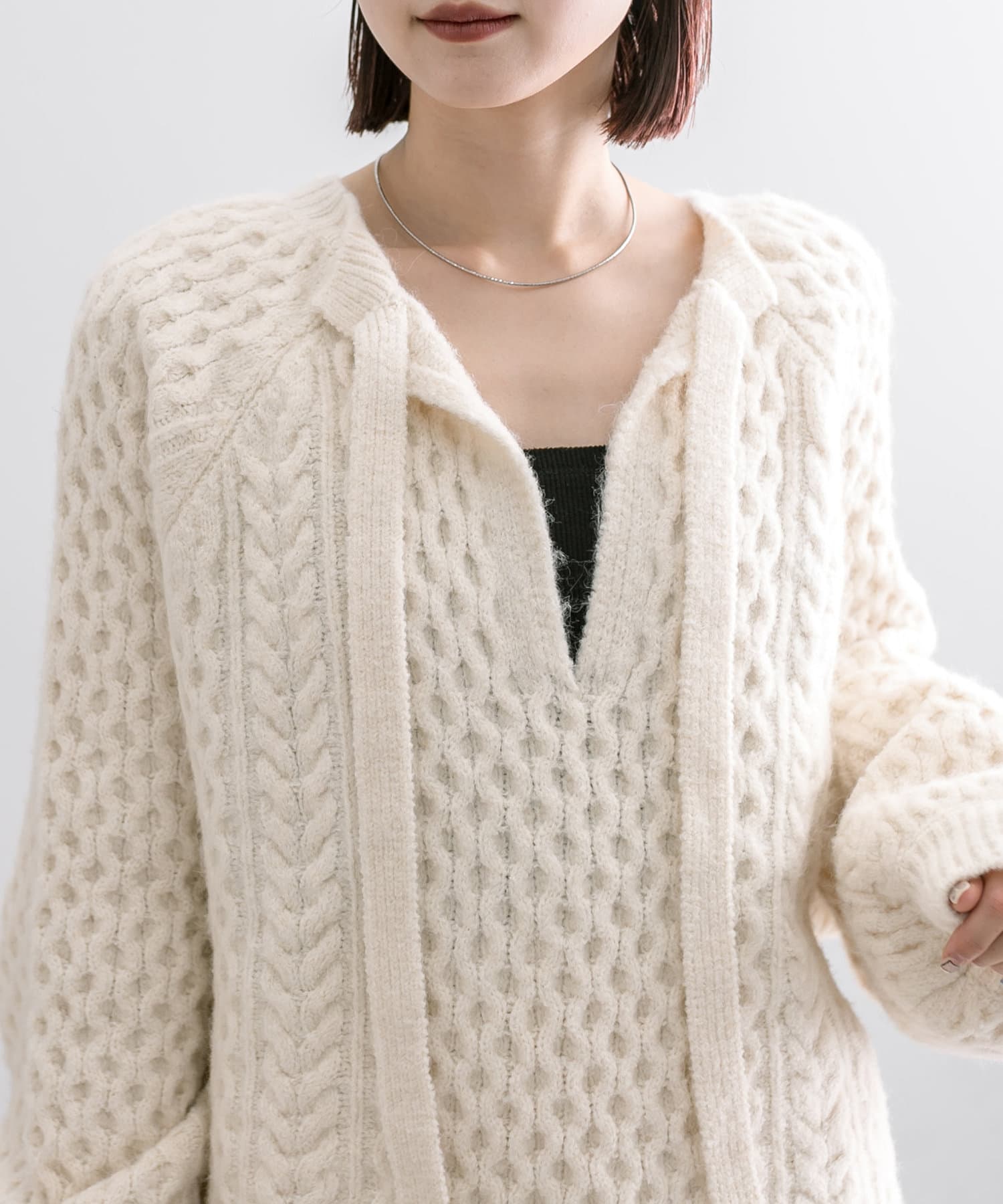 ゆったりとしたルーズなサイズ感がかわいい前後両前の2WAYスキッパーニット