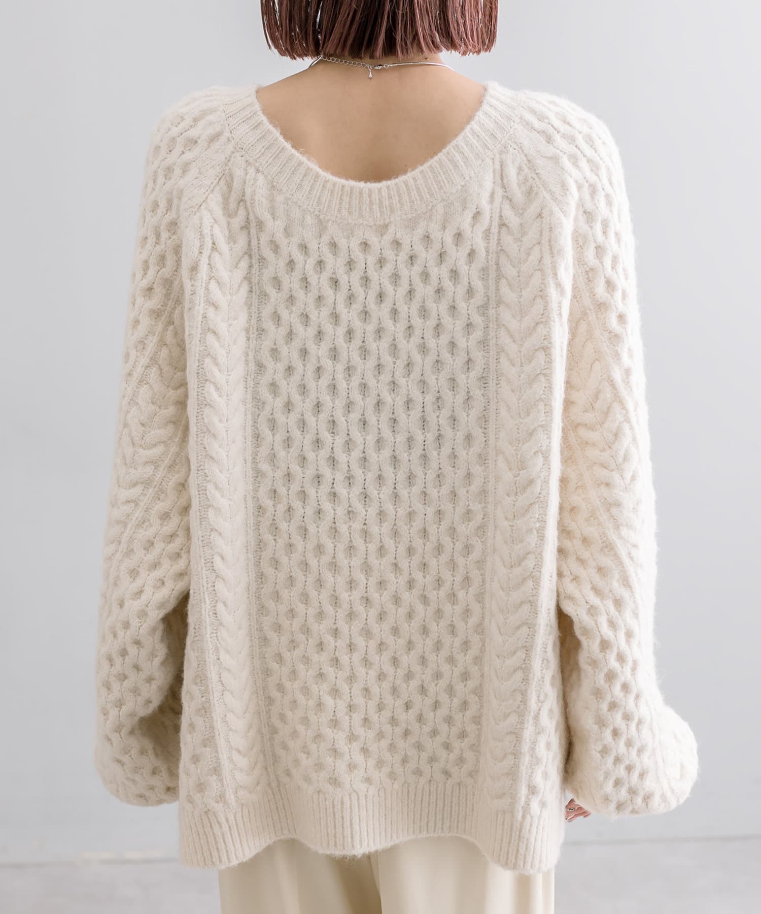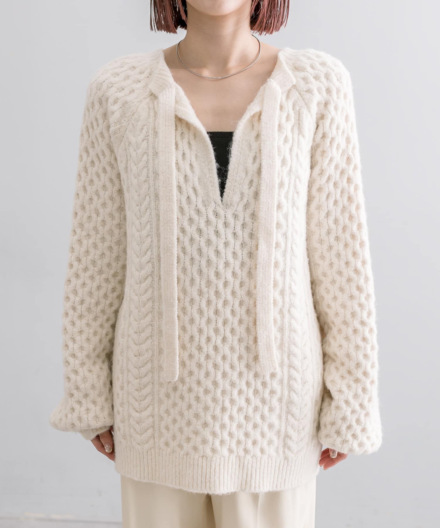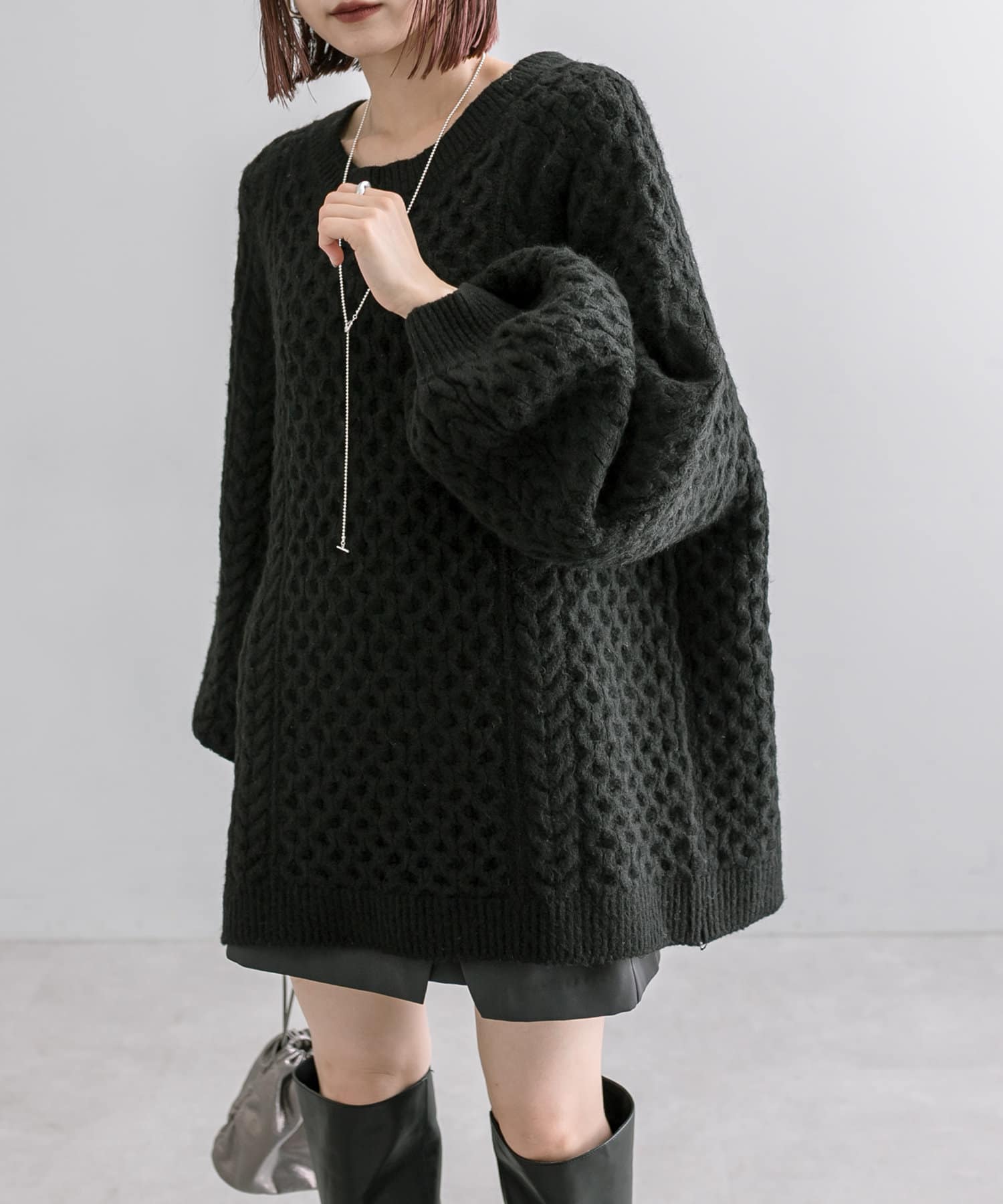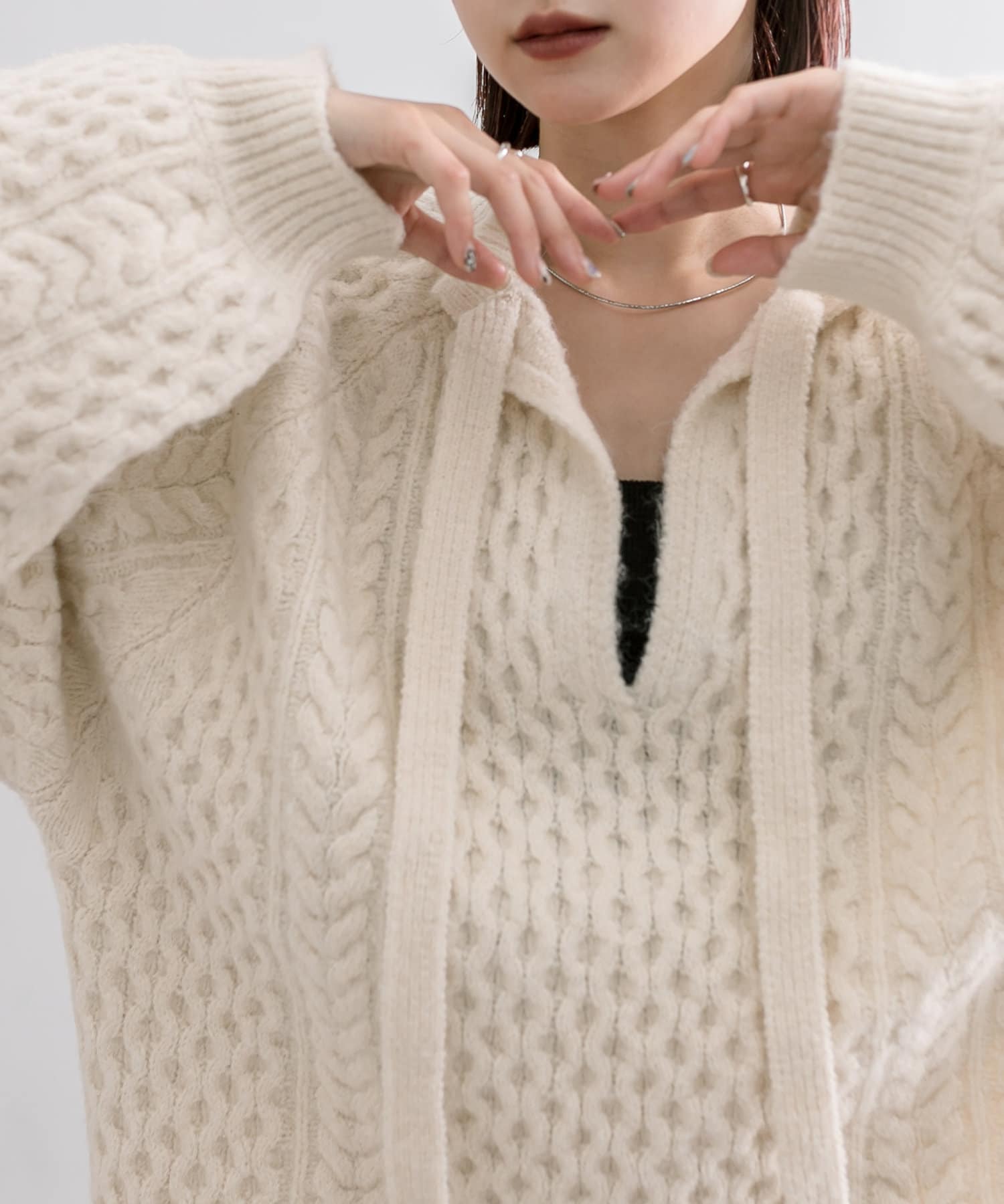 ゆったりとしたルーズなサイズ感がかわいい前後両前の2WAYスキッパーニット