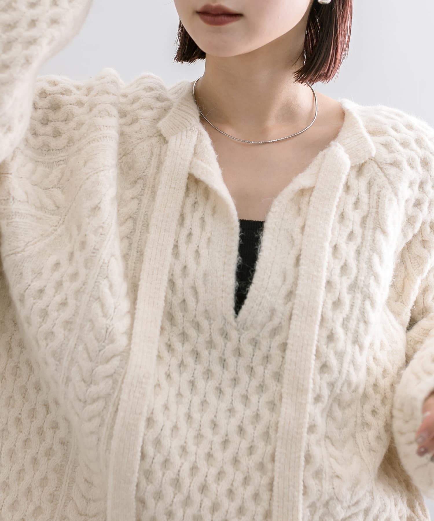 ・ざっくりと開いたスキッパーデザインなので顔周りや首元をすっきり見せてくれます。