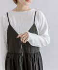 ・シルエットはシンプルなのでキャミワンピースやビスチェをレイヤードさせるスタイルもおすすめ。
