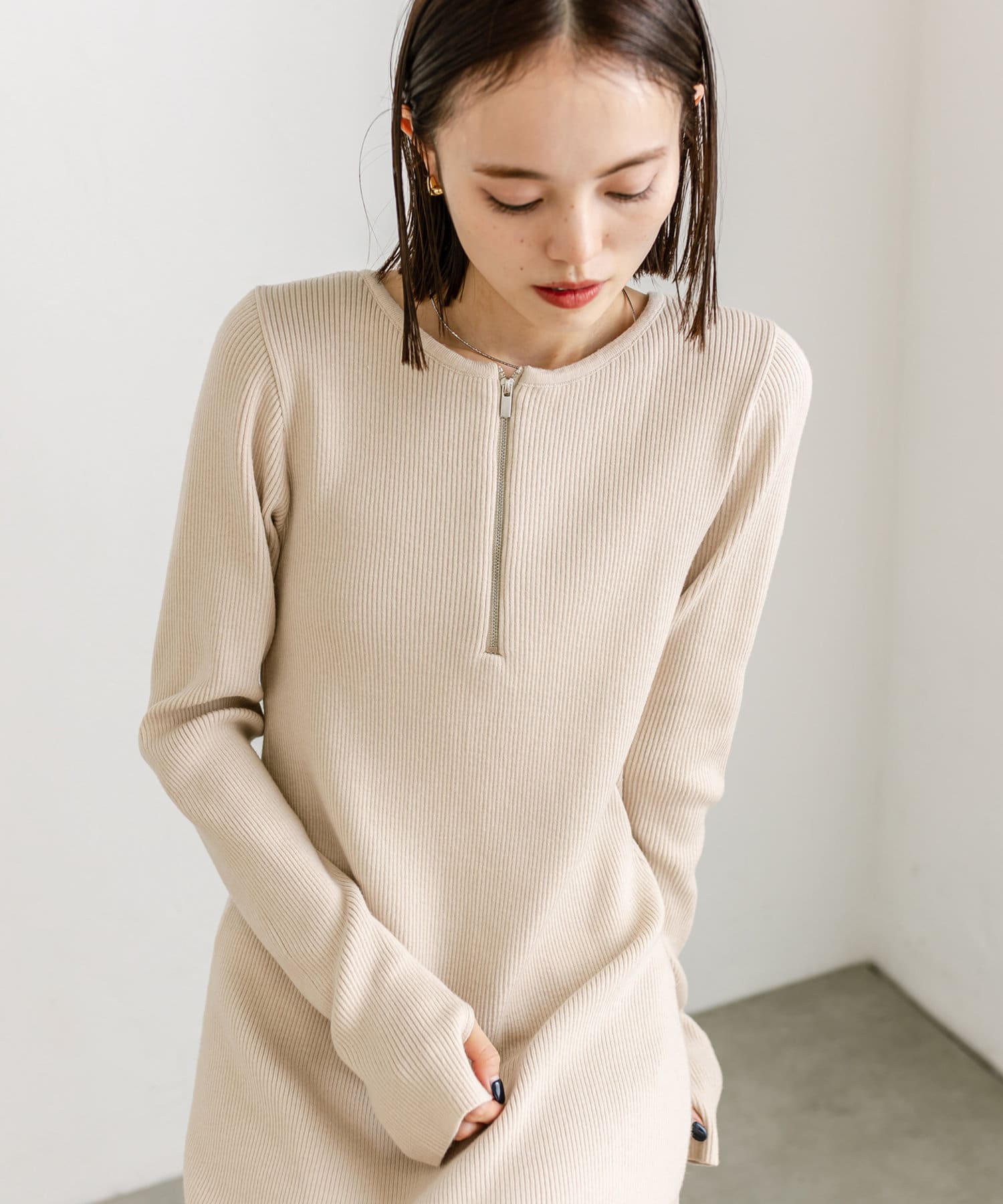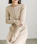 ・細リブが身体のラインを華奢に見せてくれる華奢見えワンピース。