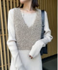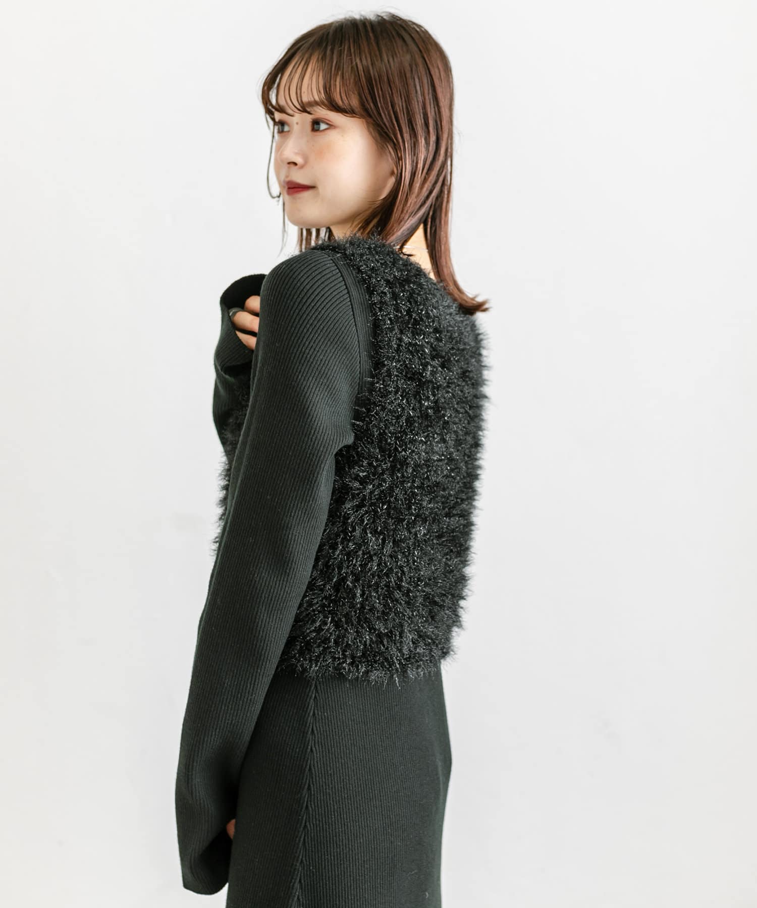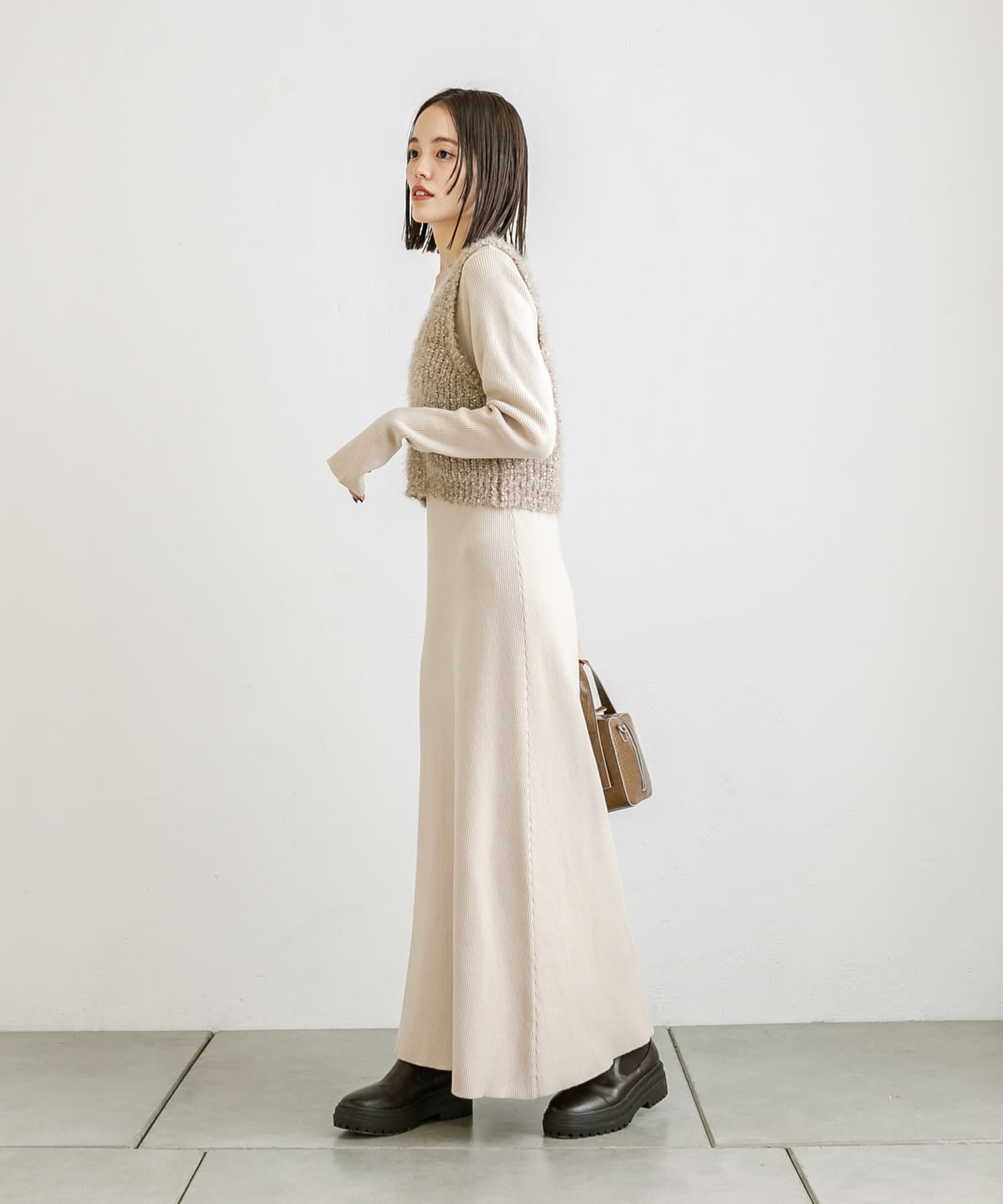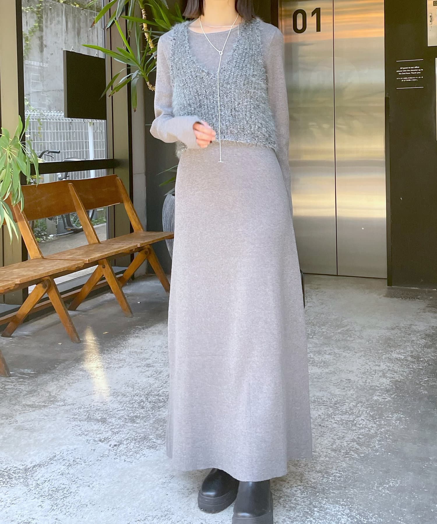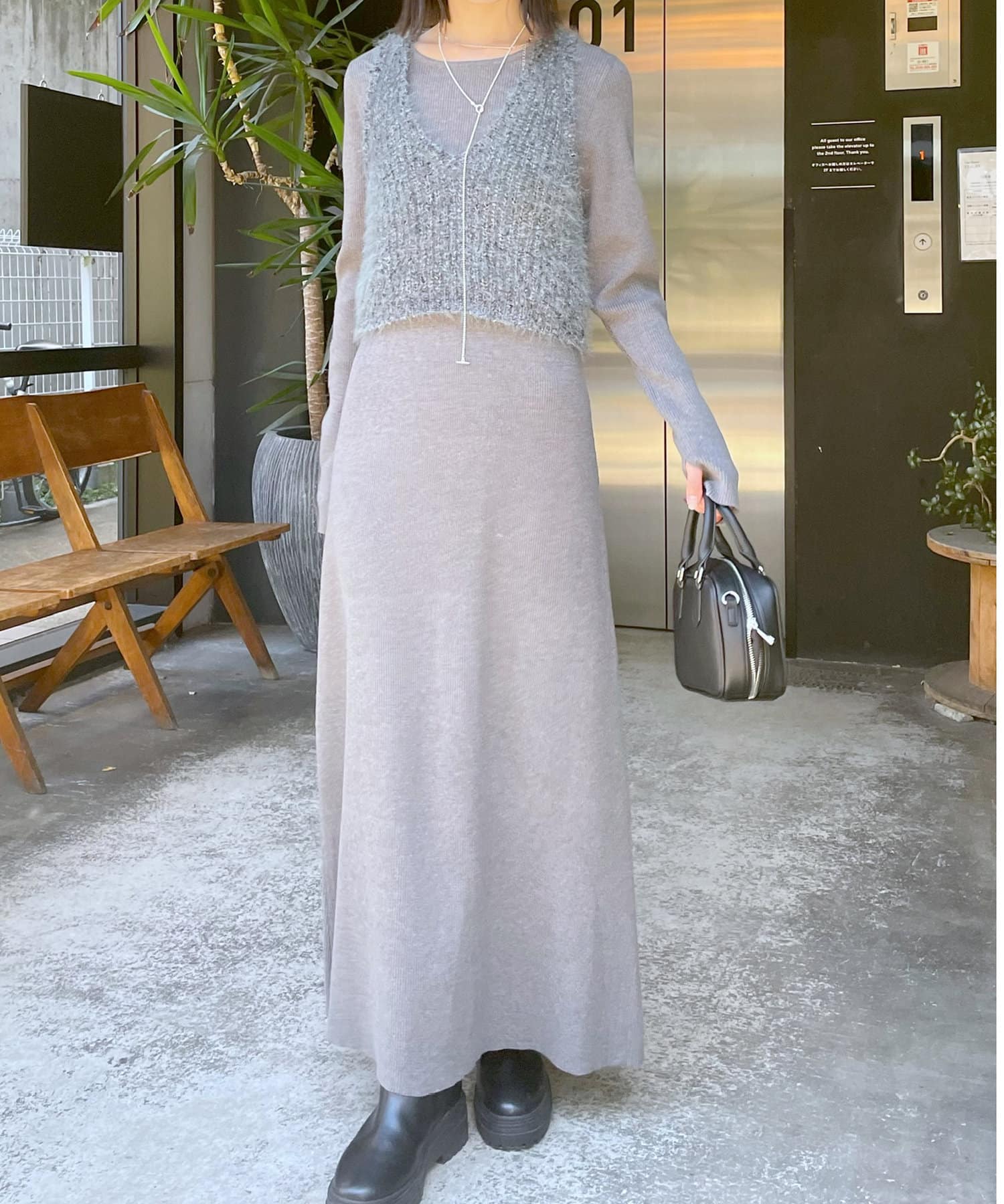 ・スタイルアップのリブワンピースとラメのニットベストがセットになったアイテム。