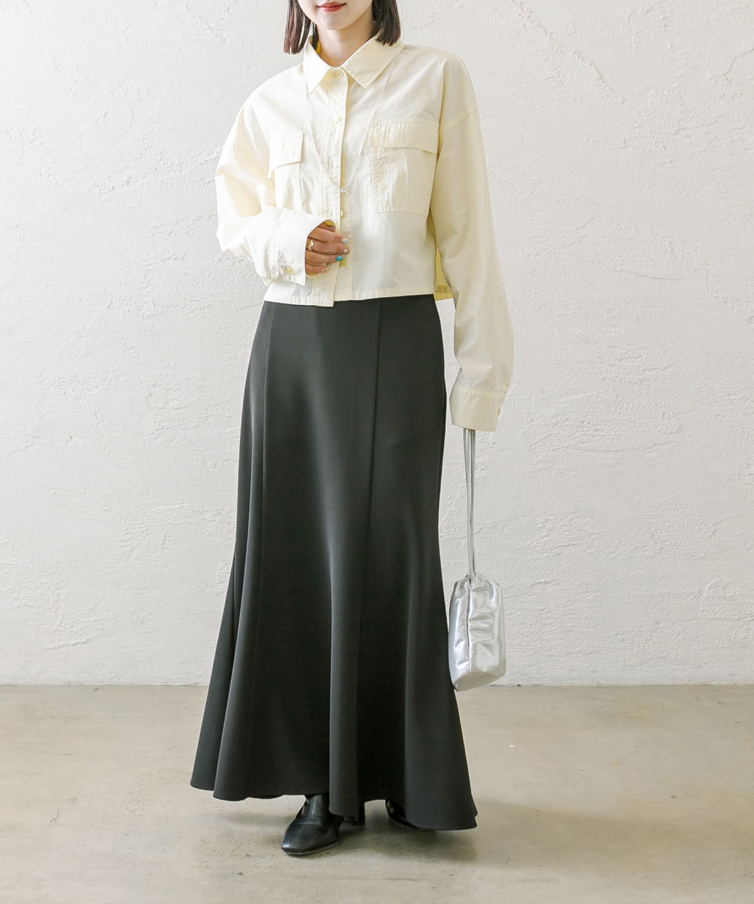 購入場所:店舗骨盤が張っているため、マーメイドスカートやタイトスカートは綺麗に着こなせず敬遠していましたが、サイズ展開をお聞きしオススメしていただきました。丈感長すぎず腰部分も気にならないサイズ感、生地感で感動しています。